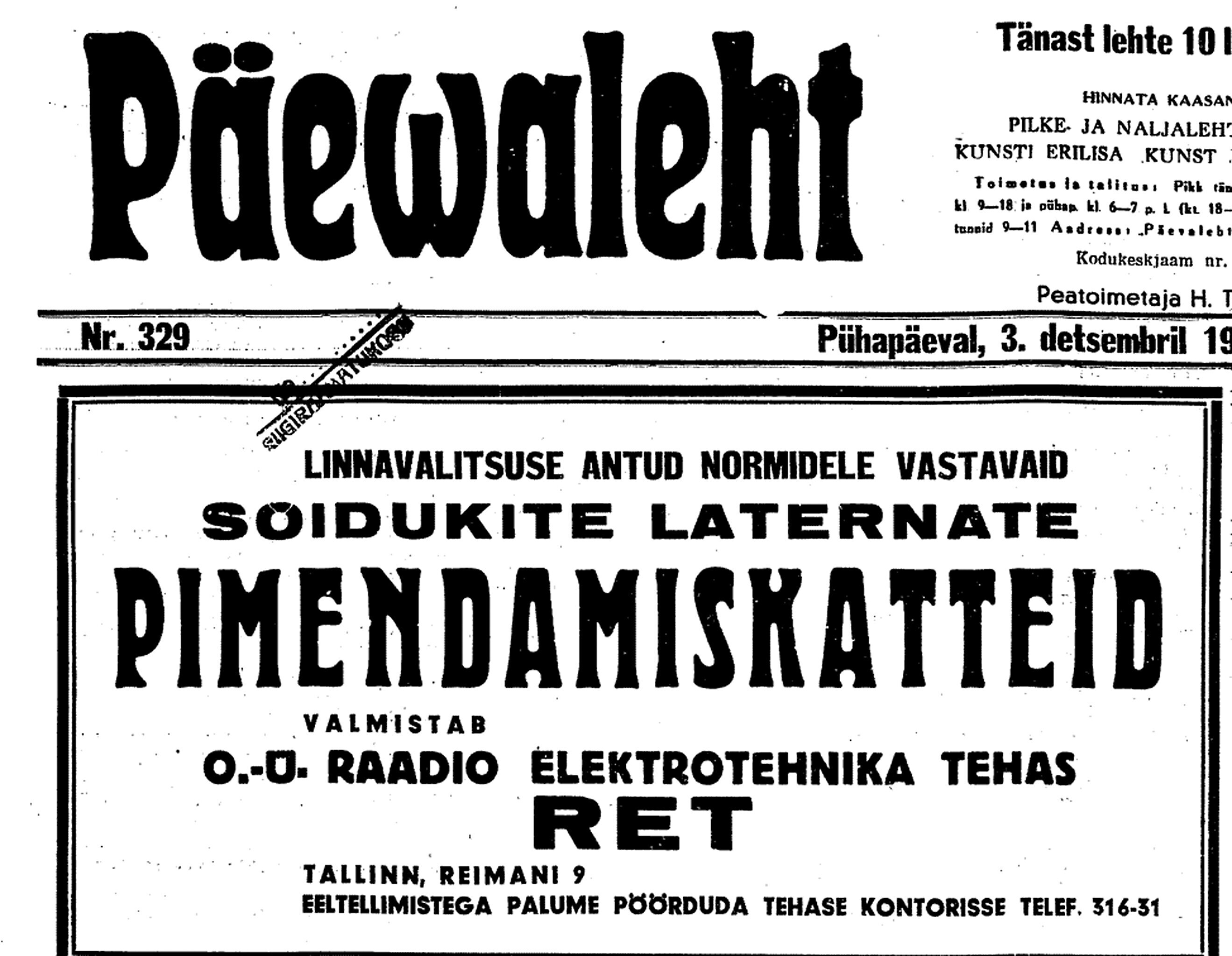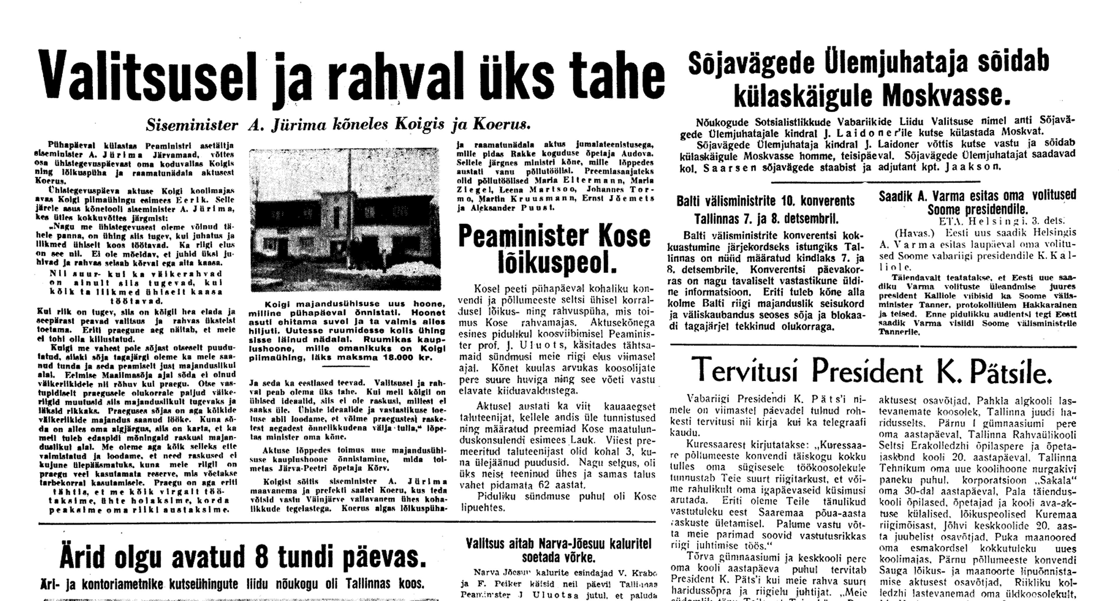 Val. koosolekul küsimus sotsminile maja ostmisest Pensionikapitali arvel Tõnismäele. Maja aktsiate enamus kuuluvat Boris Lindele . President olevat ministrile soovitanud osta. Vastu oleme [siseminister August] Jürima ja mina. Palutakse mind küsimust kaaluda, et seisukoht võtta järgmiseks koosolekuks.
