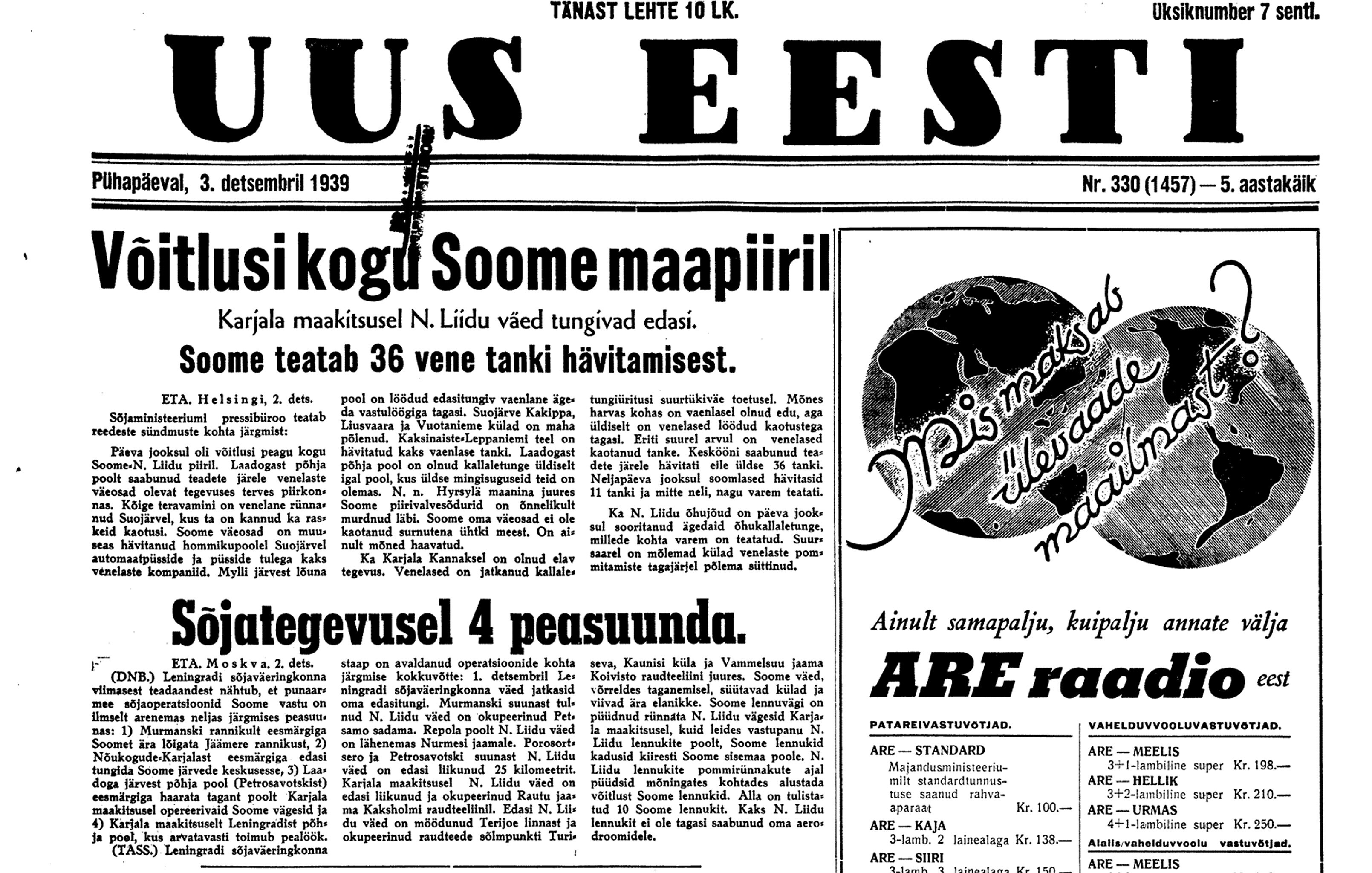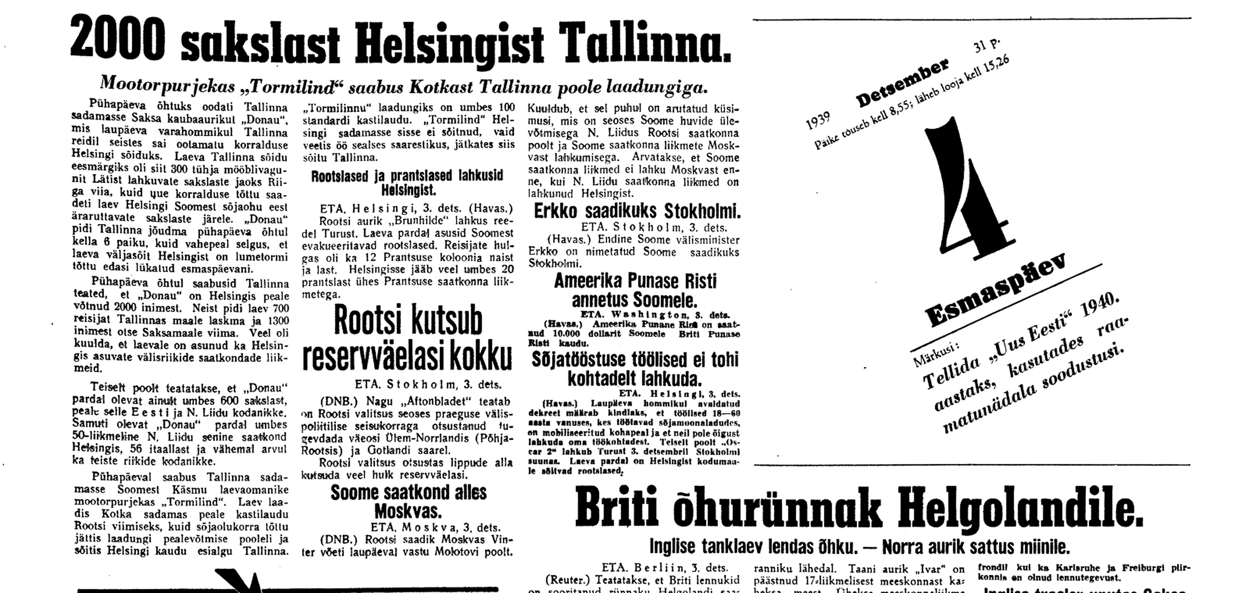 Karl Soonpää päevik 3. ja 4. detsembril 1939. aastal