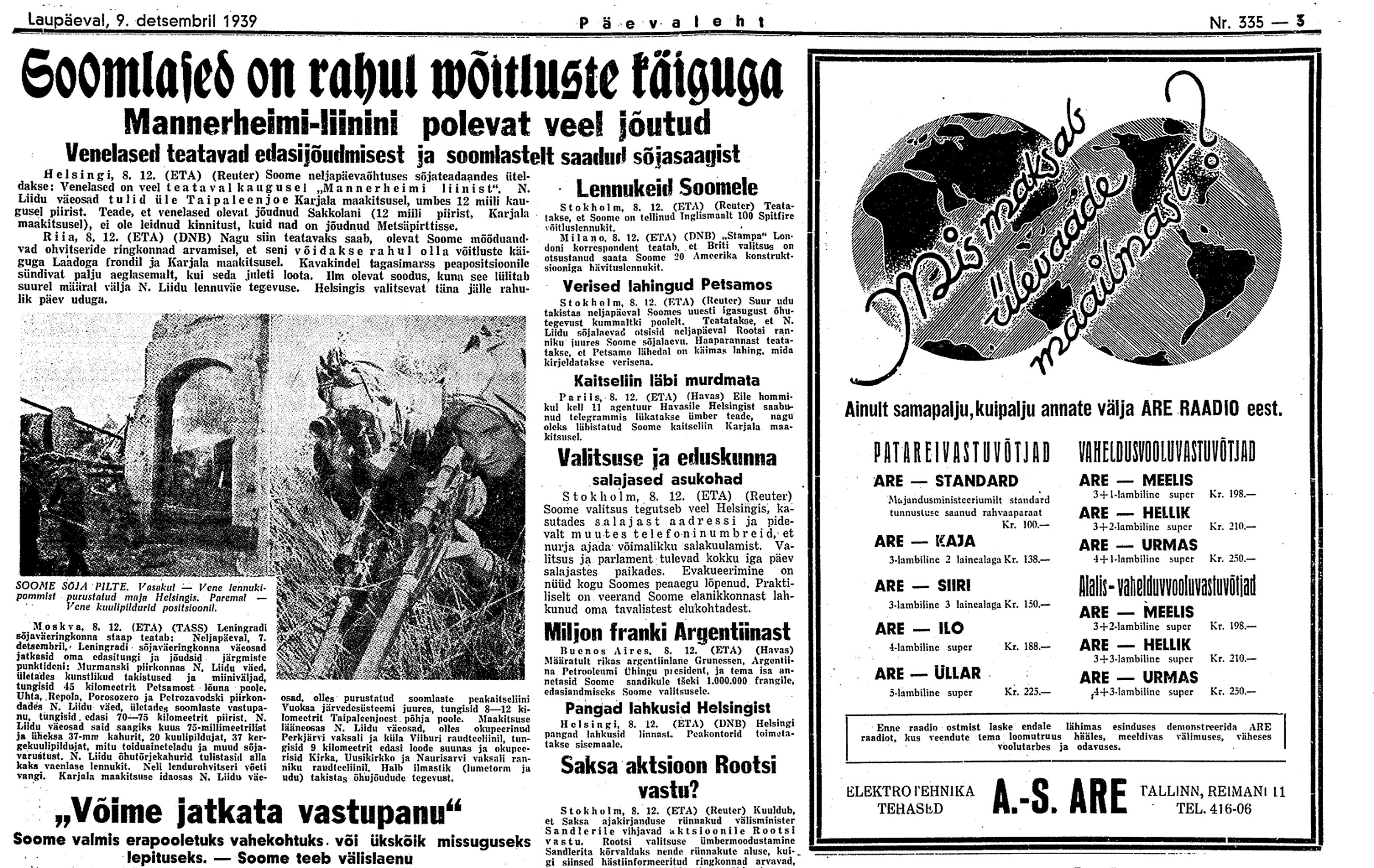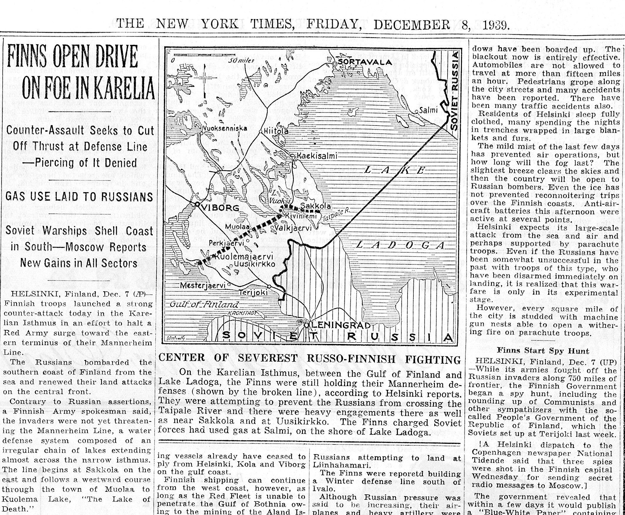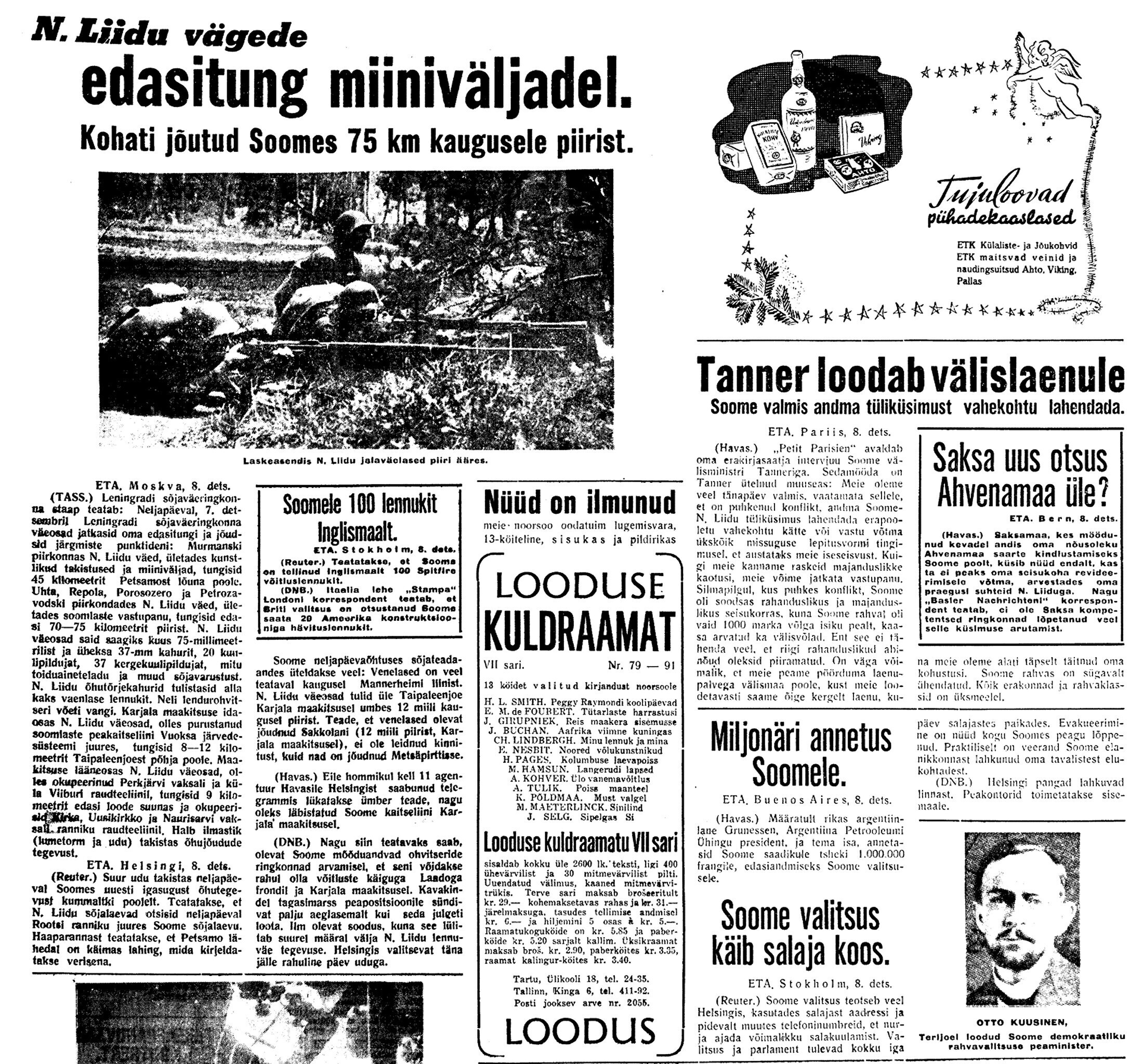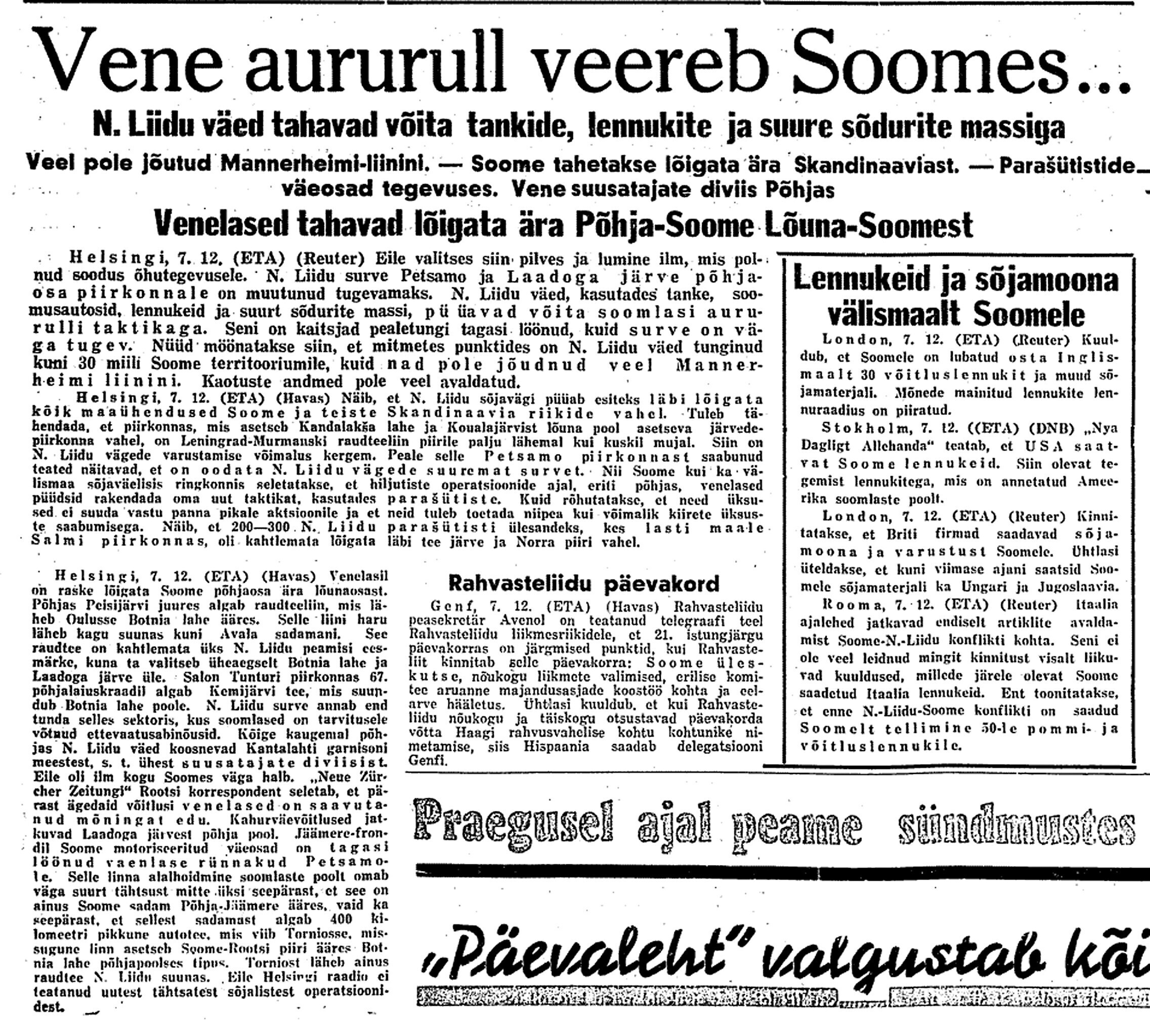 Ülekaal Vene pool määratu. Ometi on kuuldusi, et Mannerheimi liini Karjala kannaksel otse ei rünnata, vaid katsutakse põhja pool Laadogat sellest mööda minna.