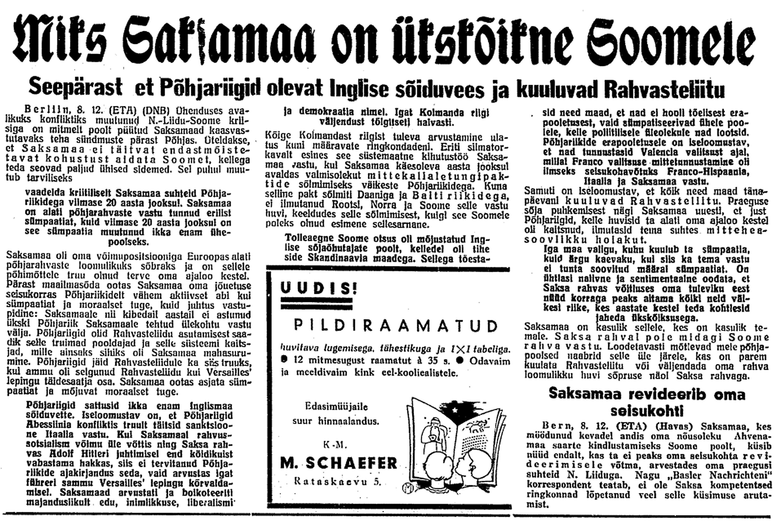 Nagu sellest nähtub, konflikt kippub laienema ja sirutuma üle Euroopa piiride. Mis siit ükskord välja tuleb, et tea keegi ennustada. Suured rahvad jäävad muidugi püsima, kuigi kurnatuna ja vaesustununa, võib-olla ka sotsiaalse struktuuri purunenuna; kes aga väikerahvastest tervena välja tuleb, see on õnne küsimus. Loodan, et Eesti väikerahval seekordki oleks õnne!