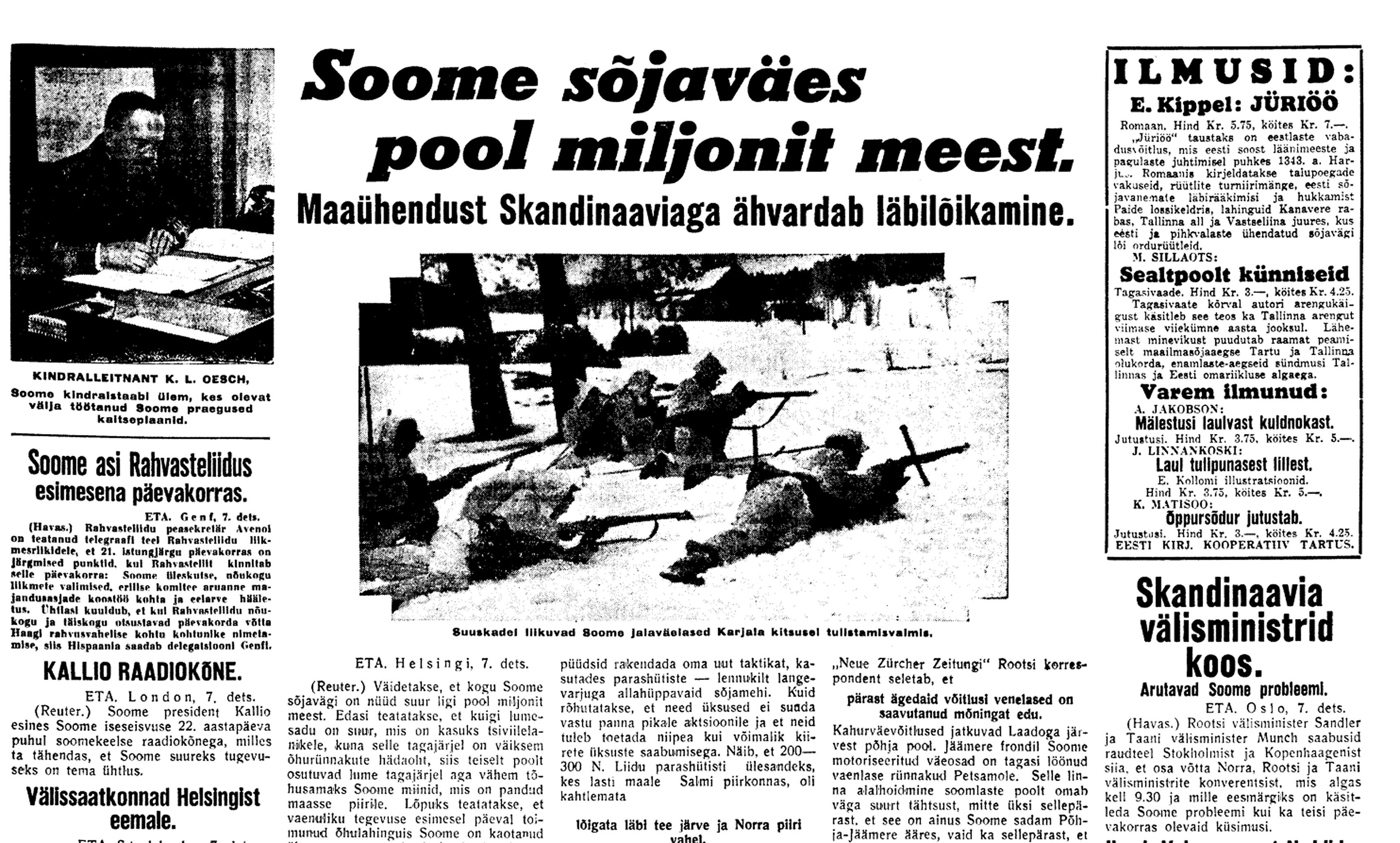 Skandinaavia kõhkleb. Rootsil on väge koos ainult 150.000. Ka Genfi ei minevat Skandinaavia riikide välisministrid. Nad kardavad vist piinlikkust oma kahe otsaga mängu tõttu. Ameerikast ja Inglismaalt saavat Soome sõjariistu, eestkätt lennukeid. Siiski paistab Soome seisukord olevat raske.