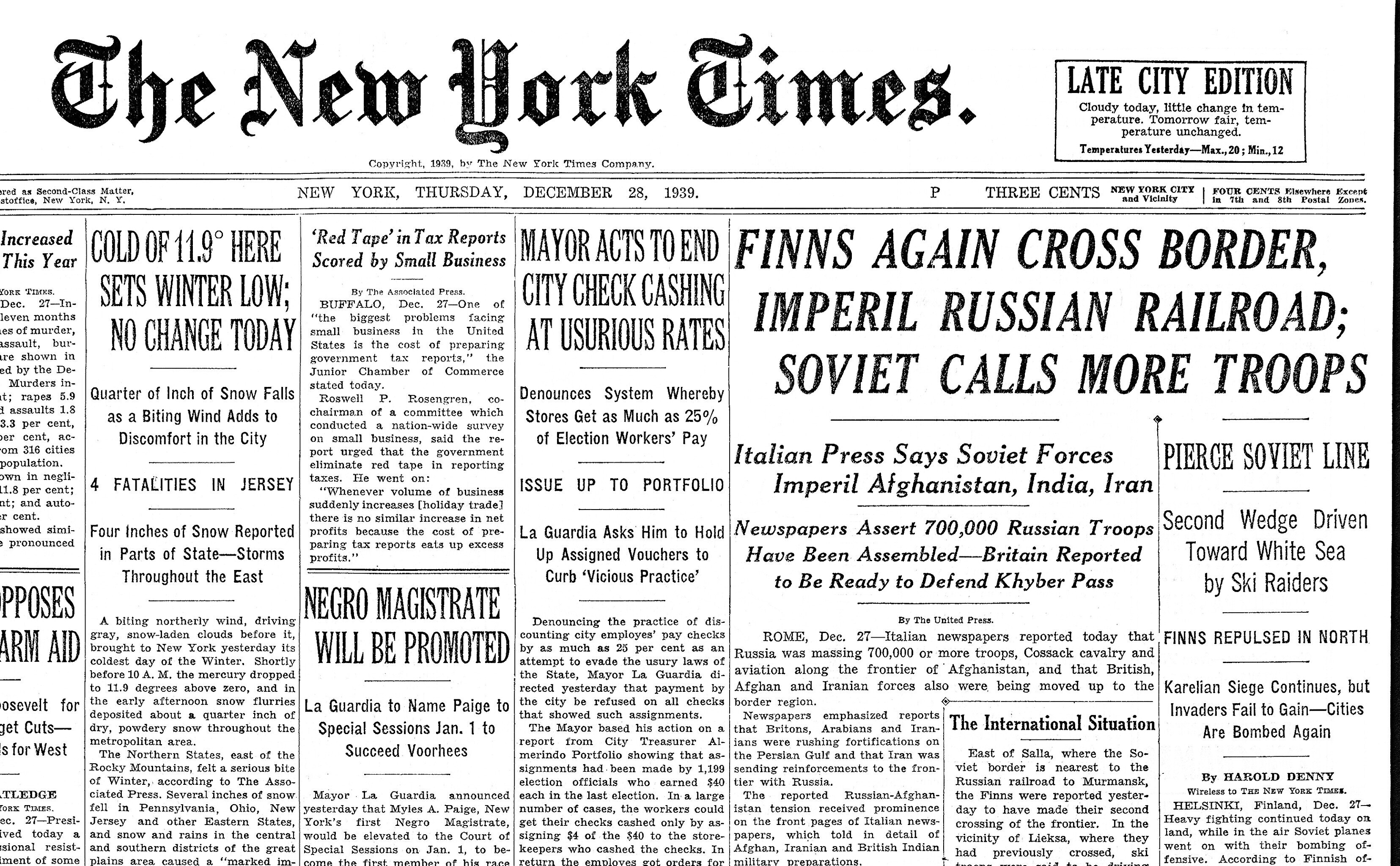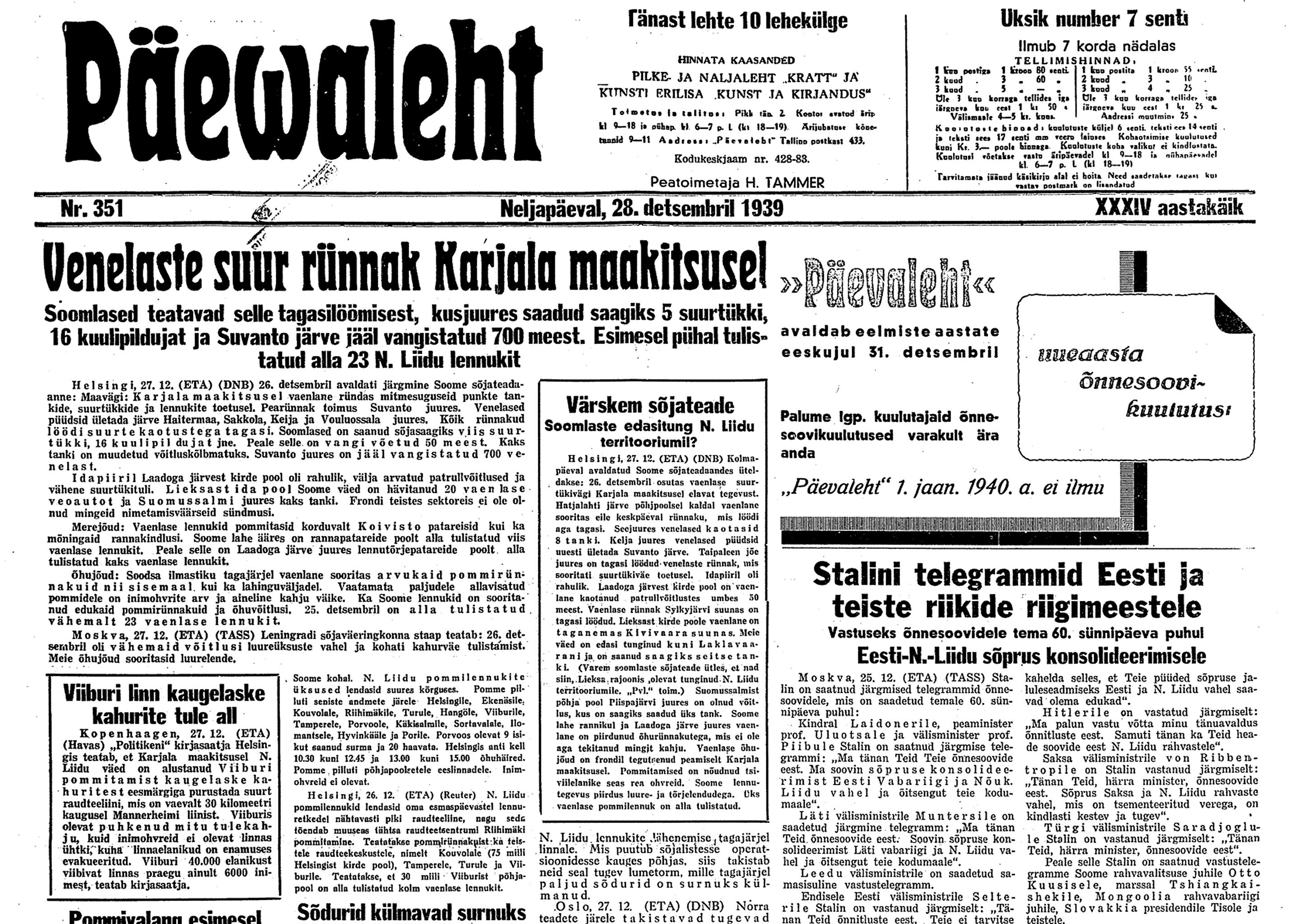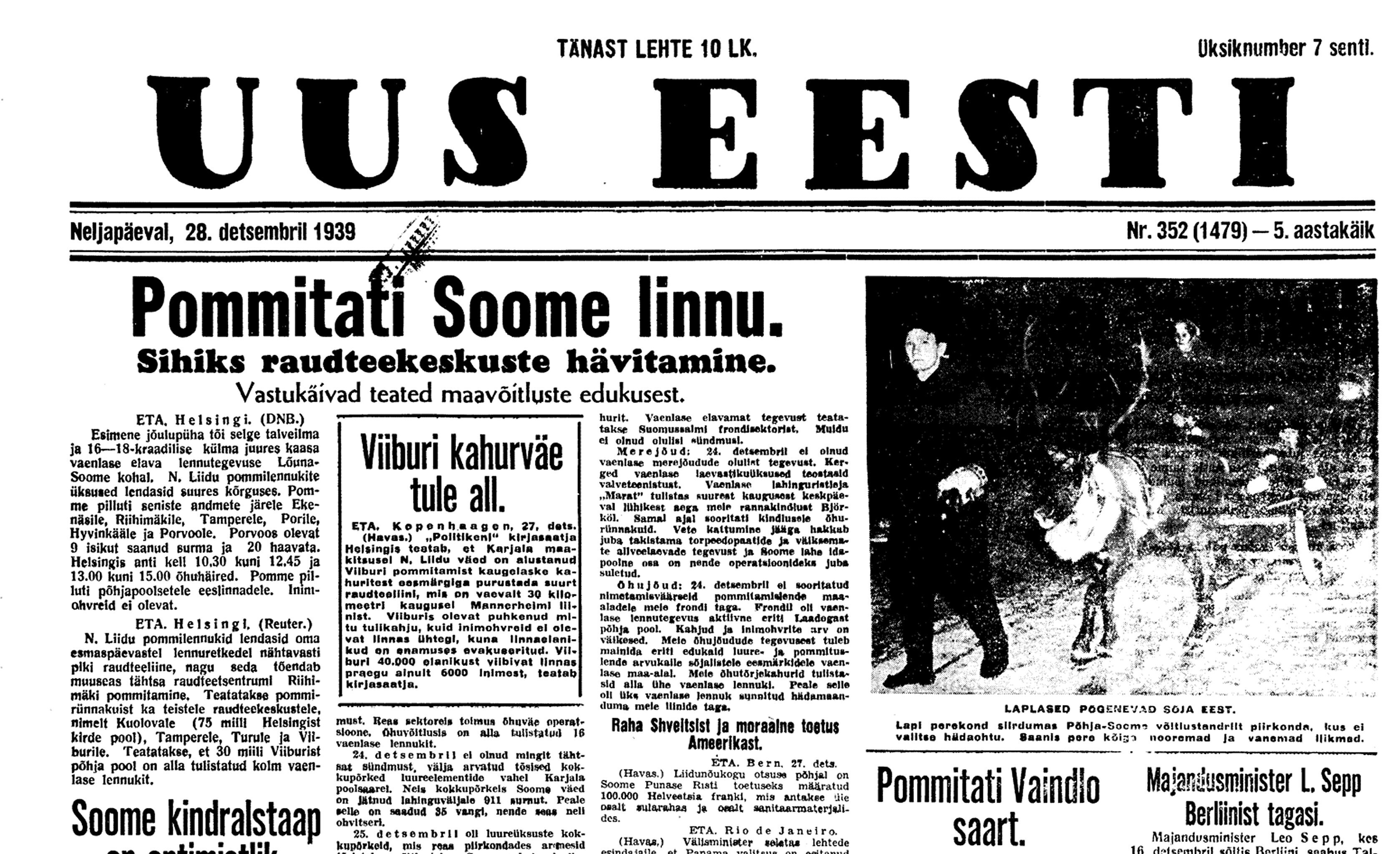 Ajaloolane Küllo Arjakas: 25. detsembril esitas Soome Eestile diplomaatilise noodi, milles protestis NSV Liidu sõjalaevade peatumise vastu Tallinna sadamas, s.t et venelased kasutavad Eesti territoriaalvett sõjategevuseks Soome vastu. Soome teatas, et jätab endale õiguse vastuabinõude rakendamiseks Eesti territoriaalvetes.