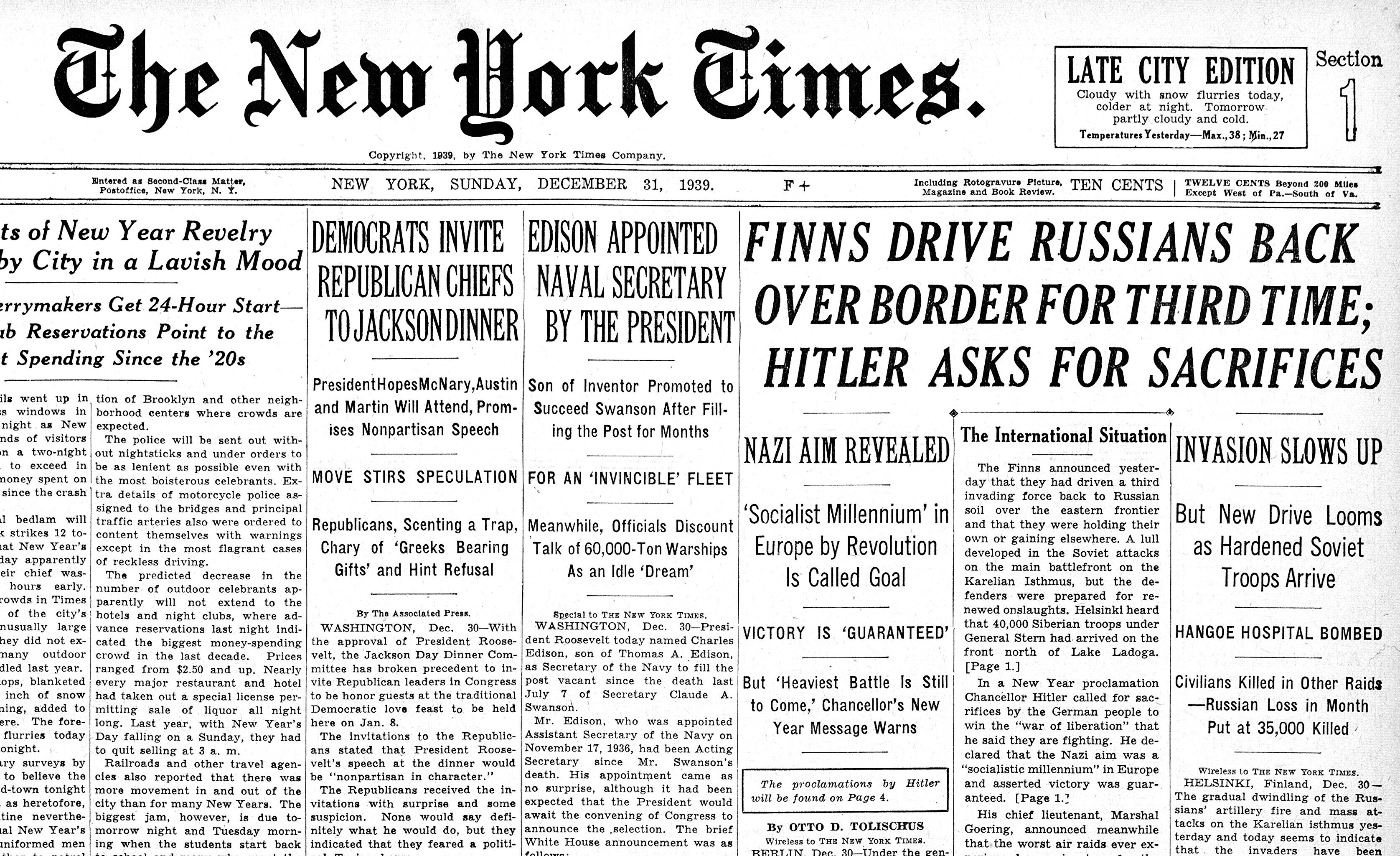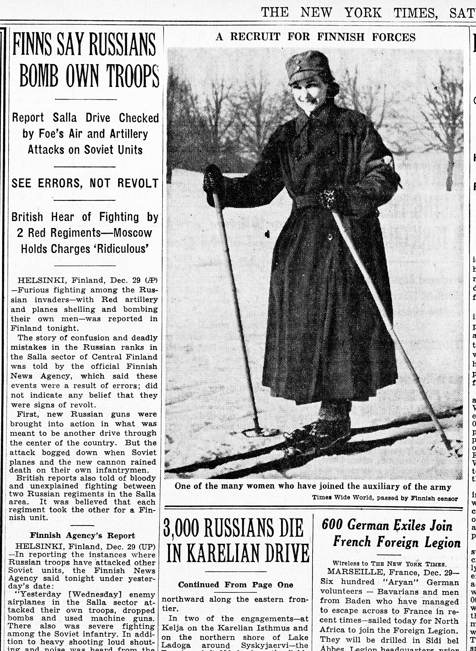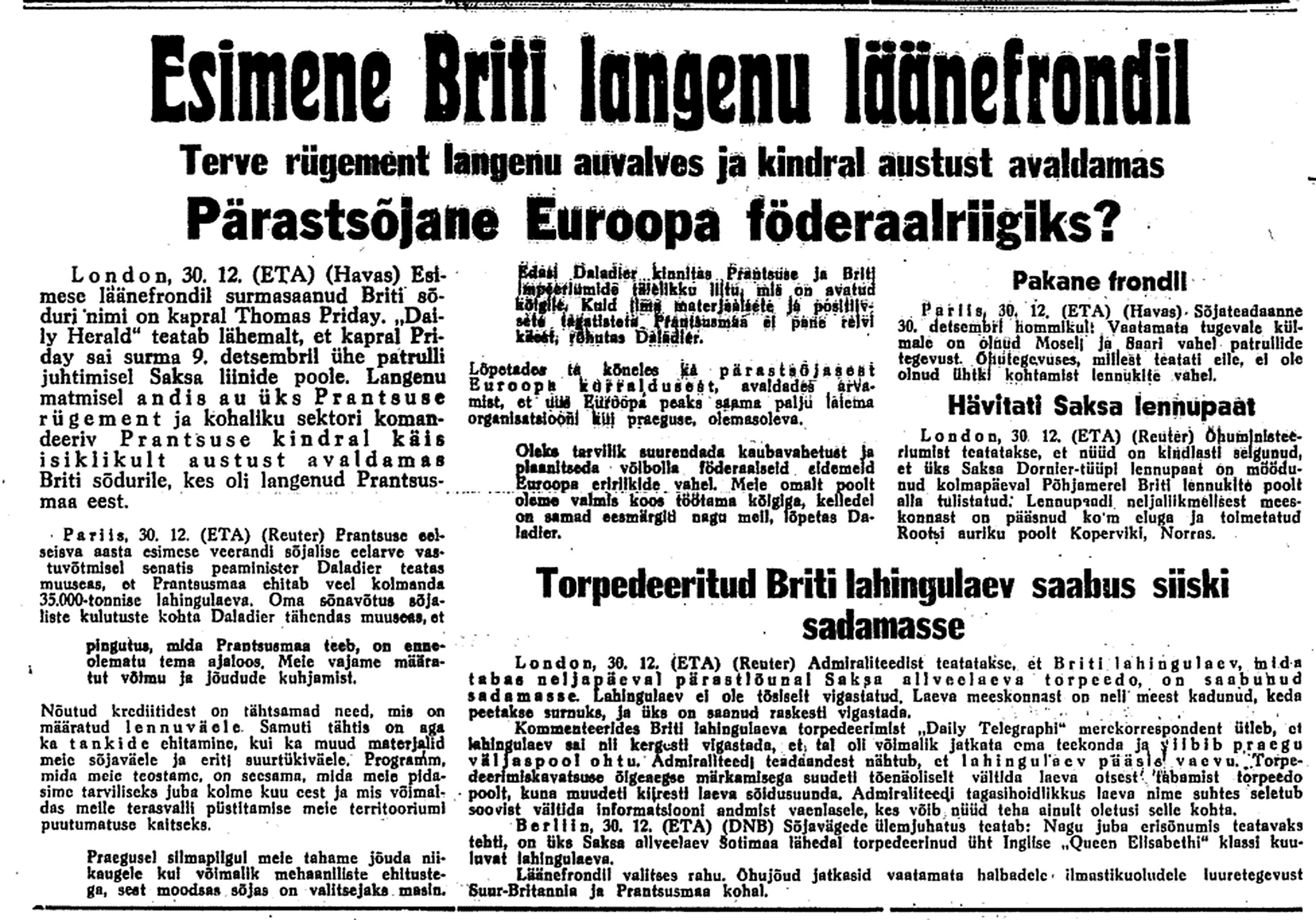31. dets. [Otto] Sternbecki pool kell 20 ½–3. Kindral on Soome sõber. Ütleb, et venelane kaotanud Soome sõjas 1 kuu jooksul 100.000 meest. Soomlaste suusaosad olevat 3 kohas Muurmani raudteeni jõudnud ja seda põhjalikult lõhkunud.