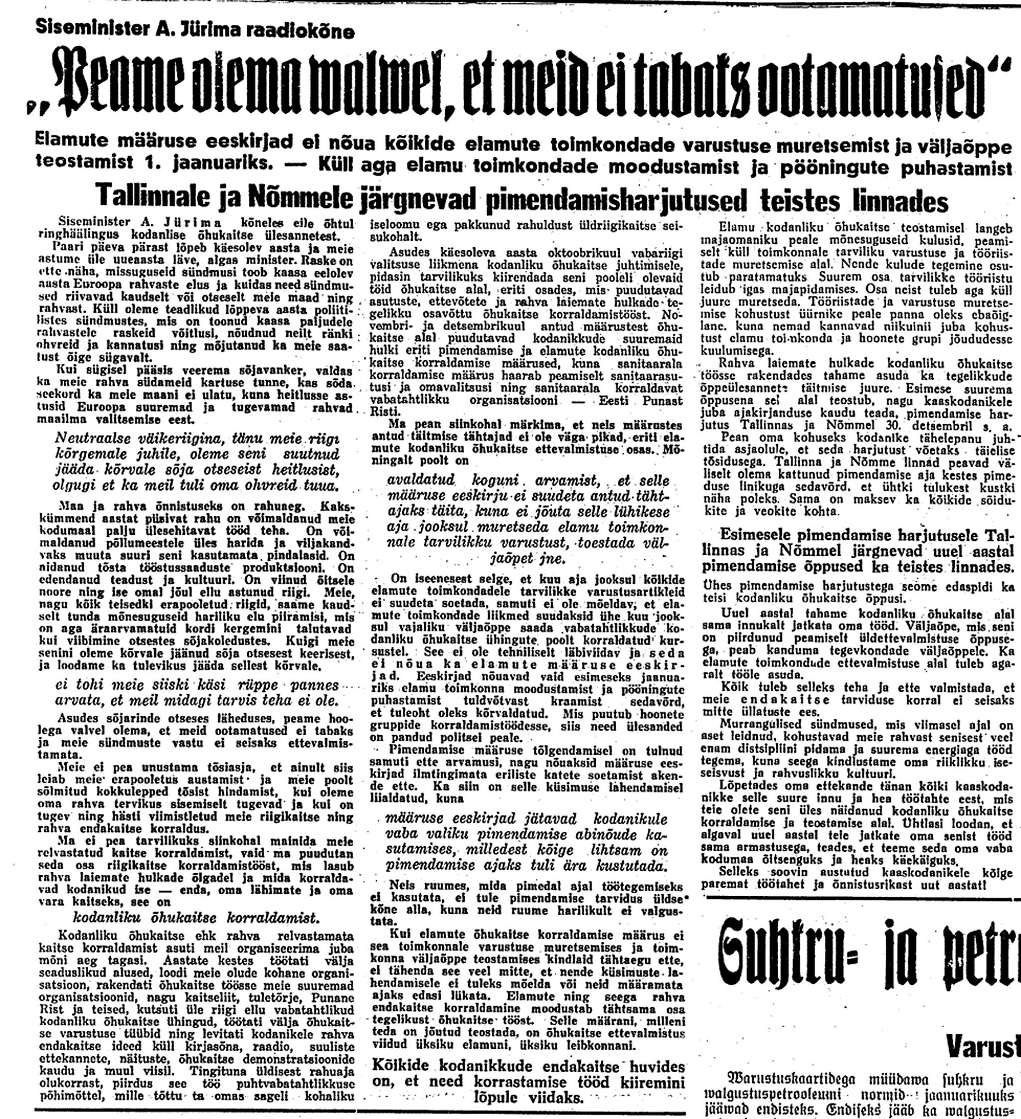 Nüüd saatvat Venemaa 150.000 GPU väeosadest, et katsetada Soome vastupanu murda. Kehra vabriku sisseseade muretsemise asjus väidab, et seal polevat korruptsiooni olnud ja [Karl] Selter polevat midagi saanud.