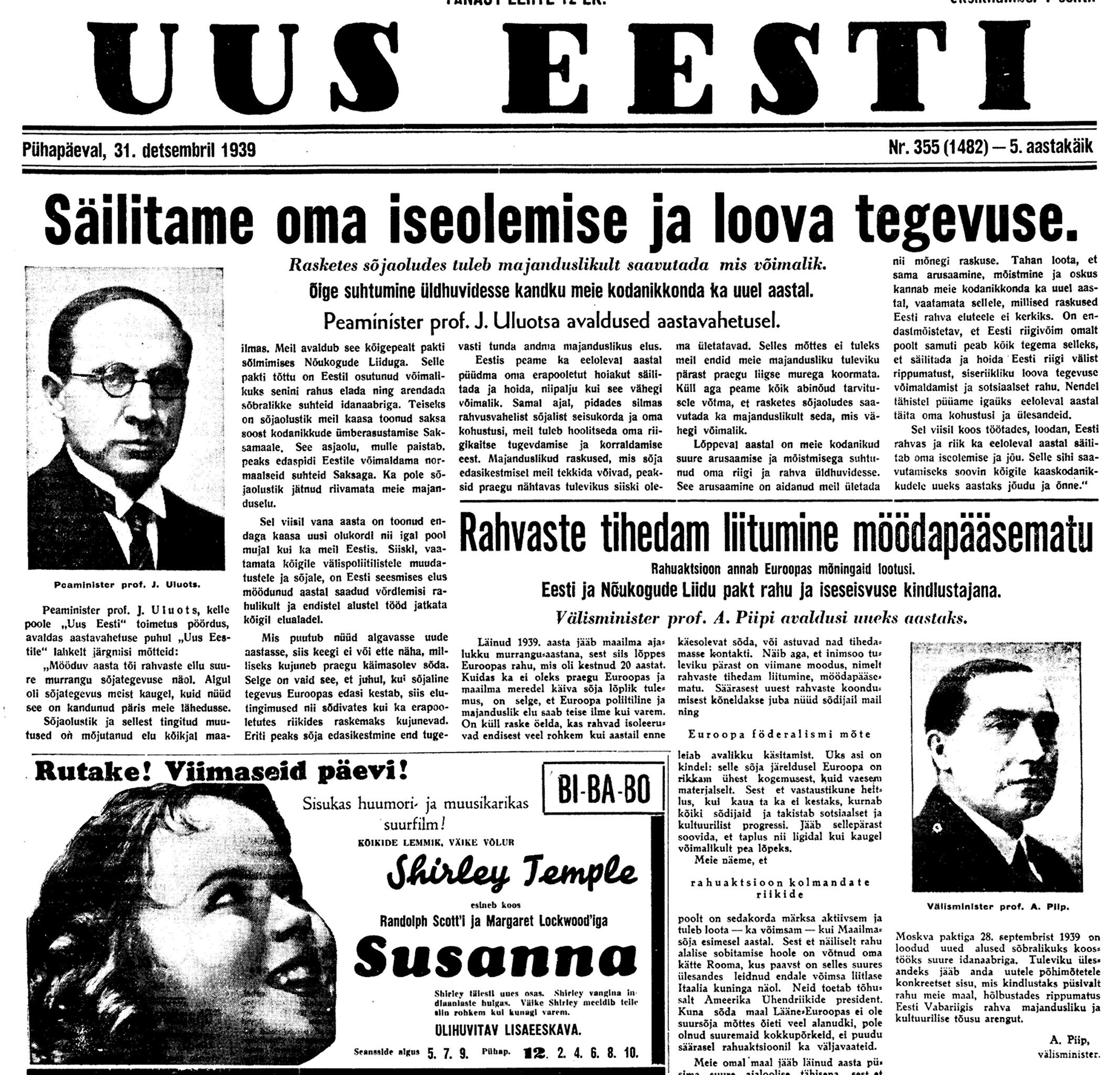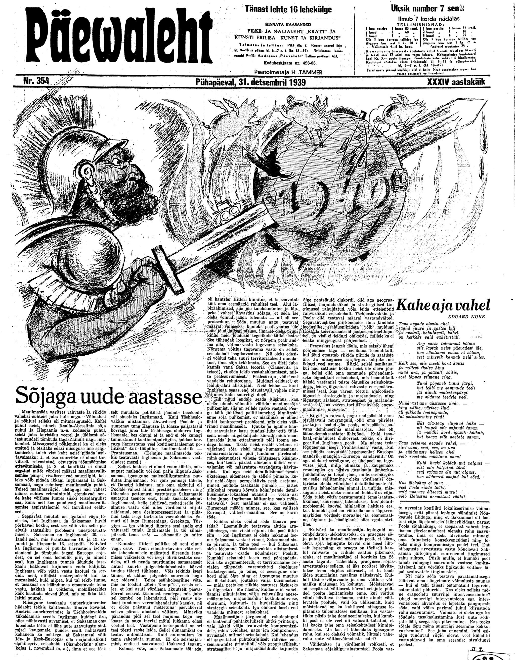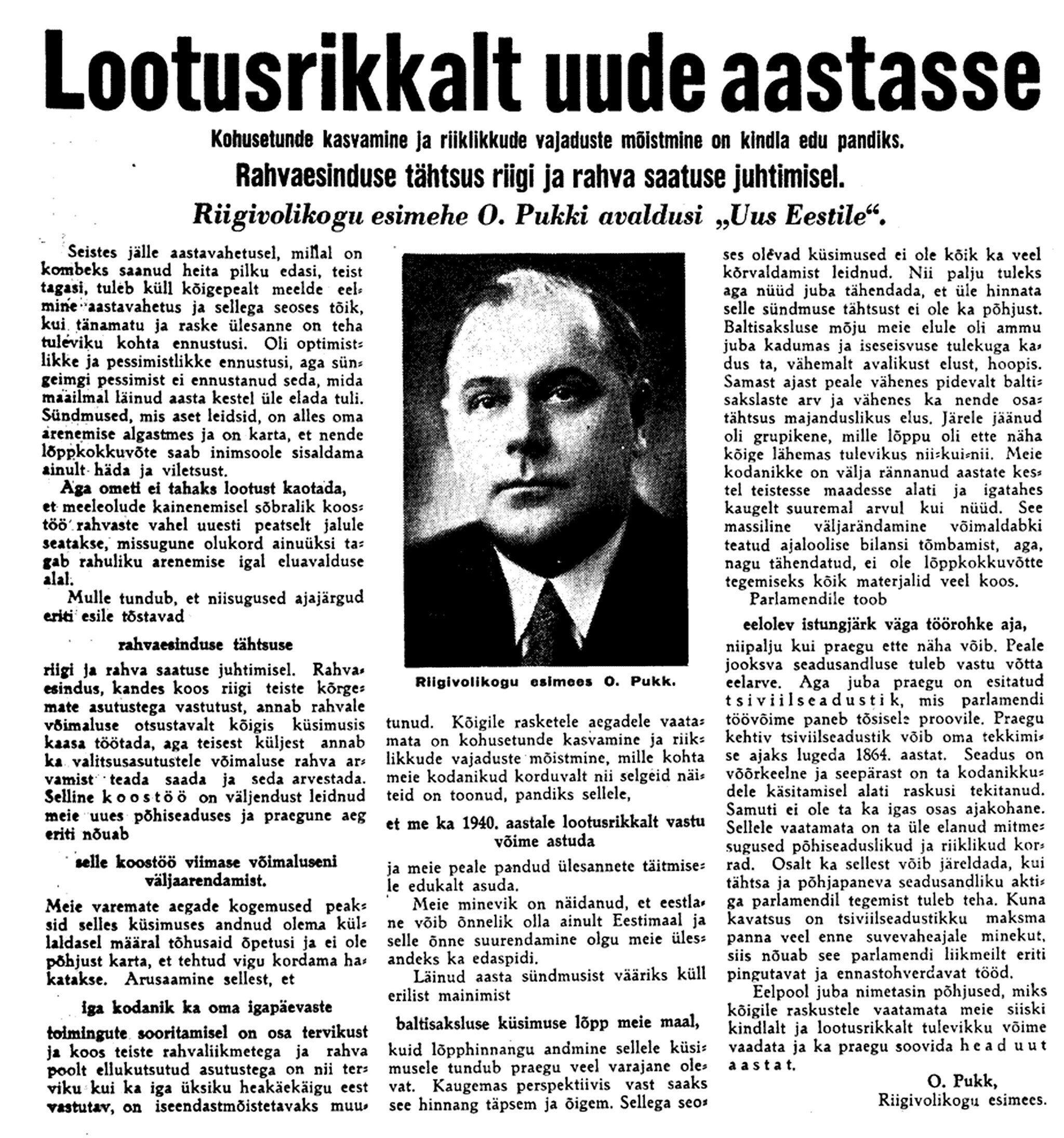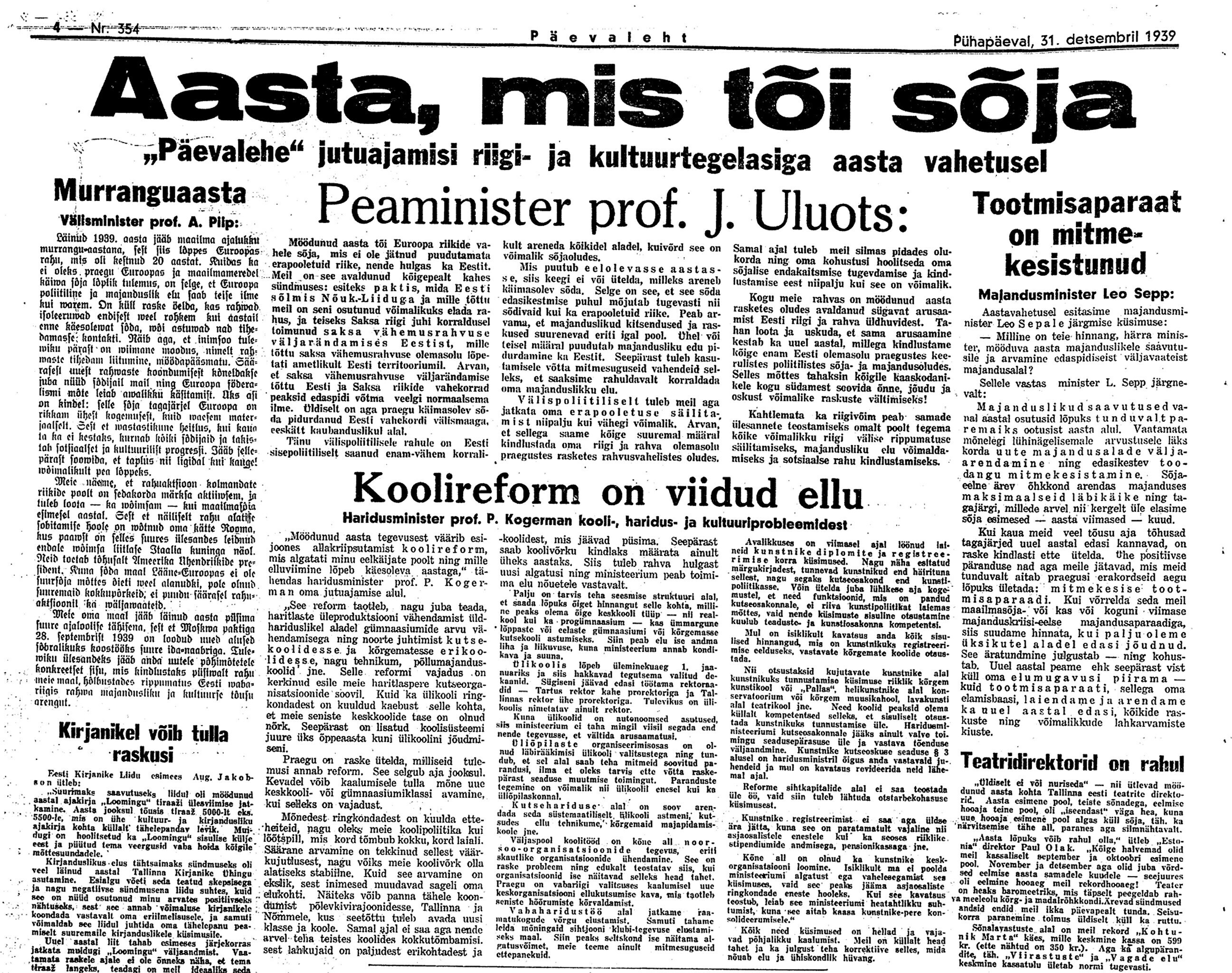 Riigikontrolör Karl Soonpää kirjutas 80 aastat tagasi, 31. detsembril 1939 oma päevikusse: