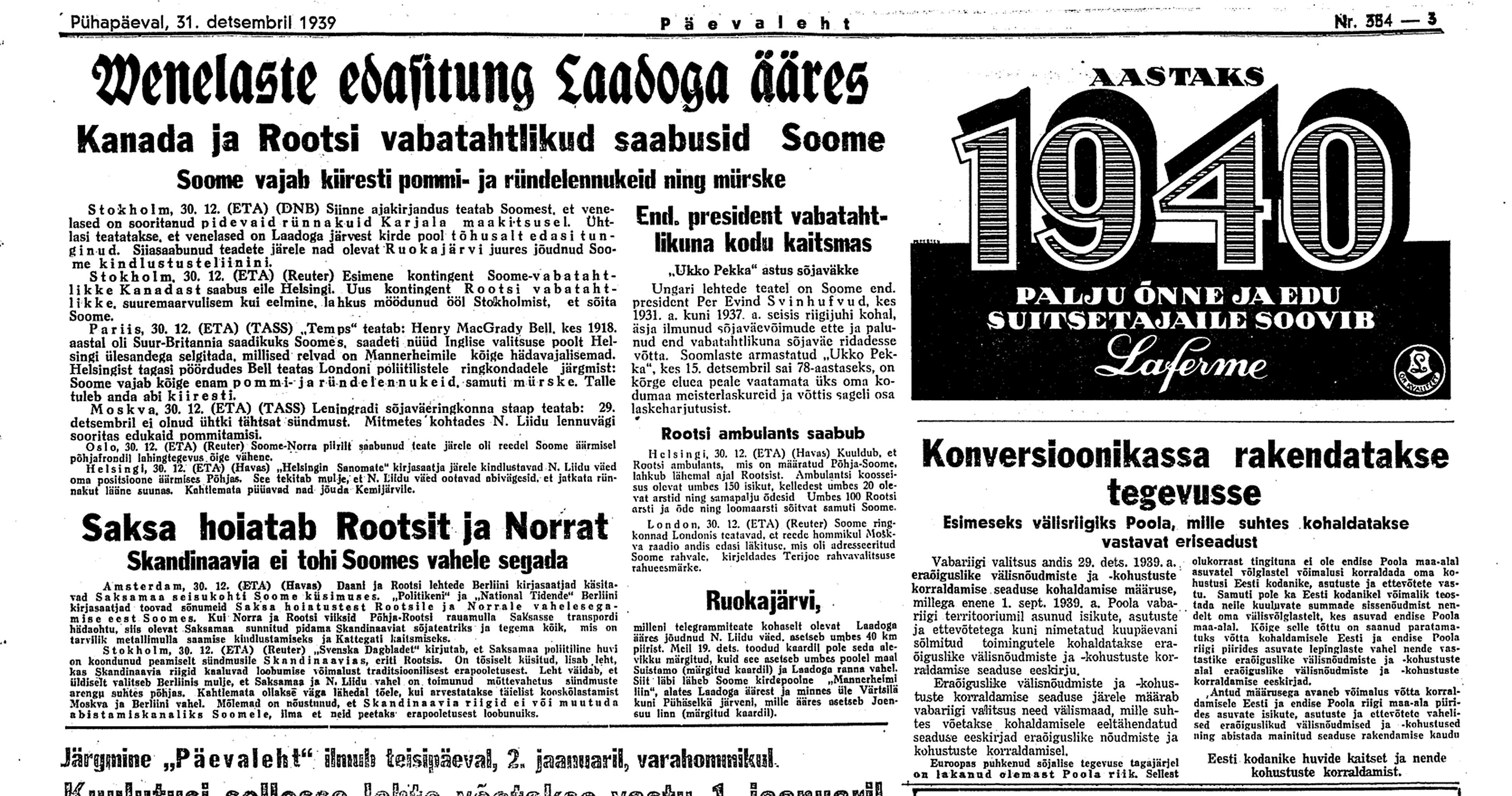 Karl Soonpää päevik 31. detsembril 1939. aastal