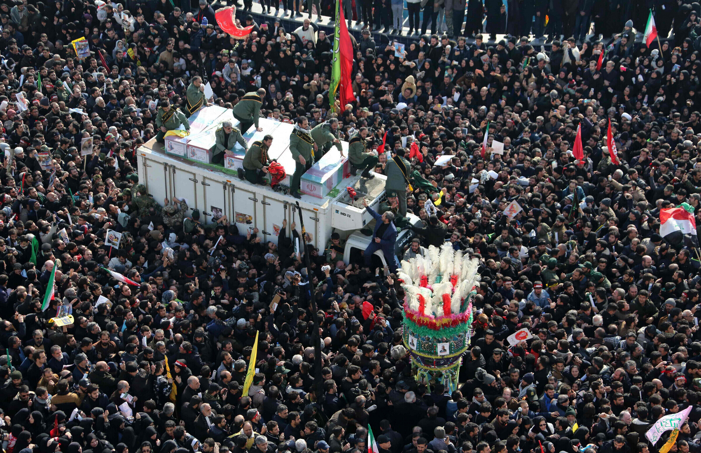 Soleimaini säilmed jõudsid Iraani pühapäeval, enne pealinna viimist kanti kirstu Ahvazi ja Mashhadi tänavatel. Revolutsioonikaardi teatel oli Mashhadis leinajaid nii palju, et see sundis ära jätma pühapäeva õhtuks Teherani plaanitud tseremoonia.