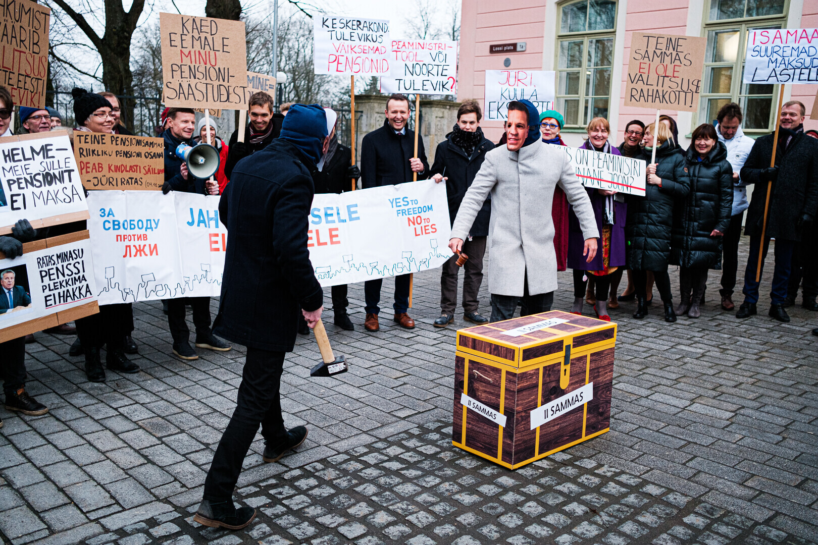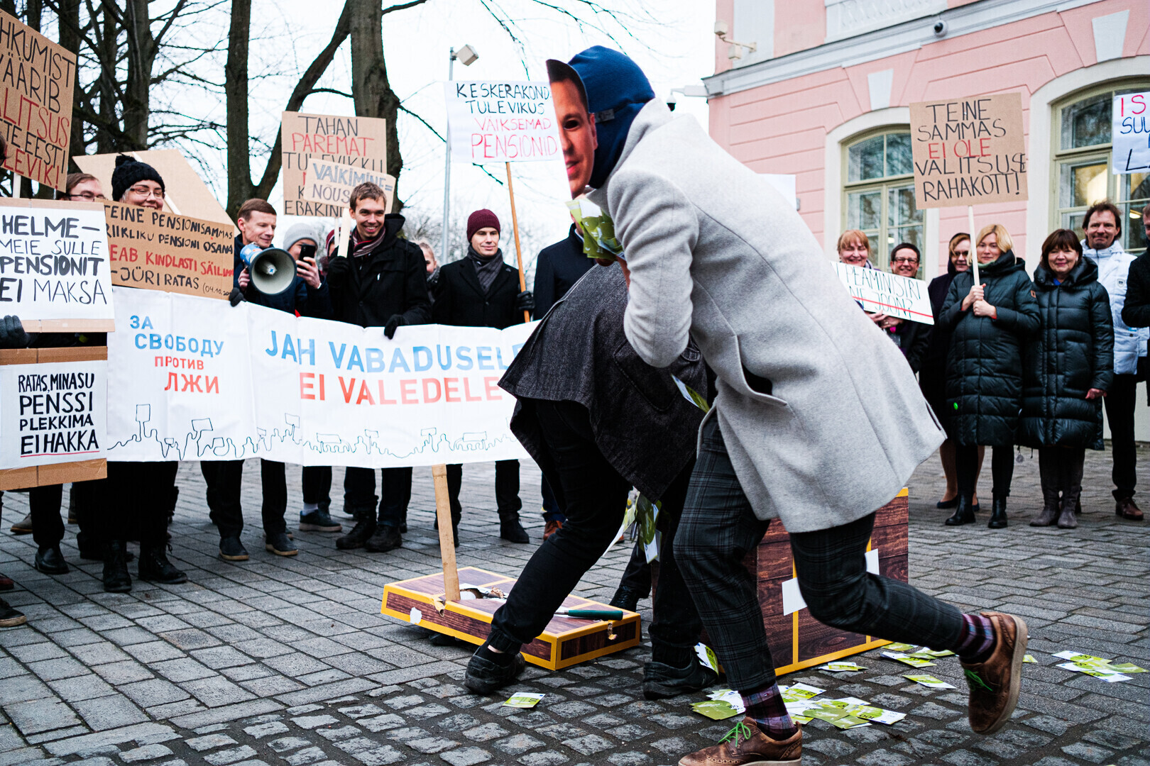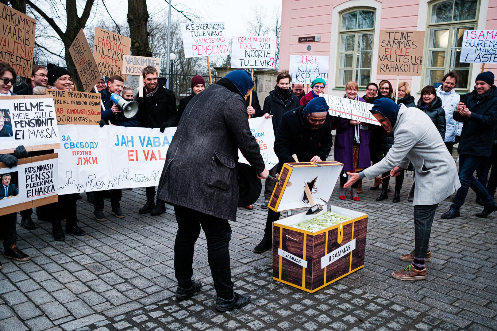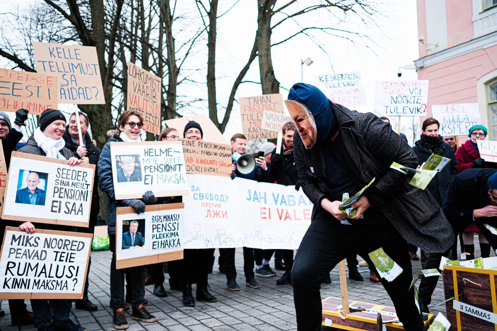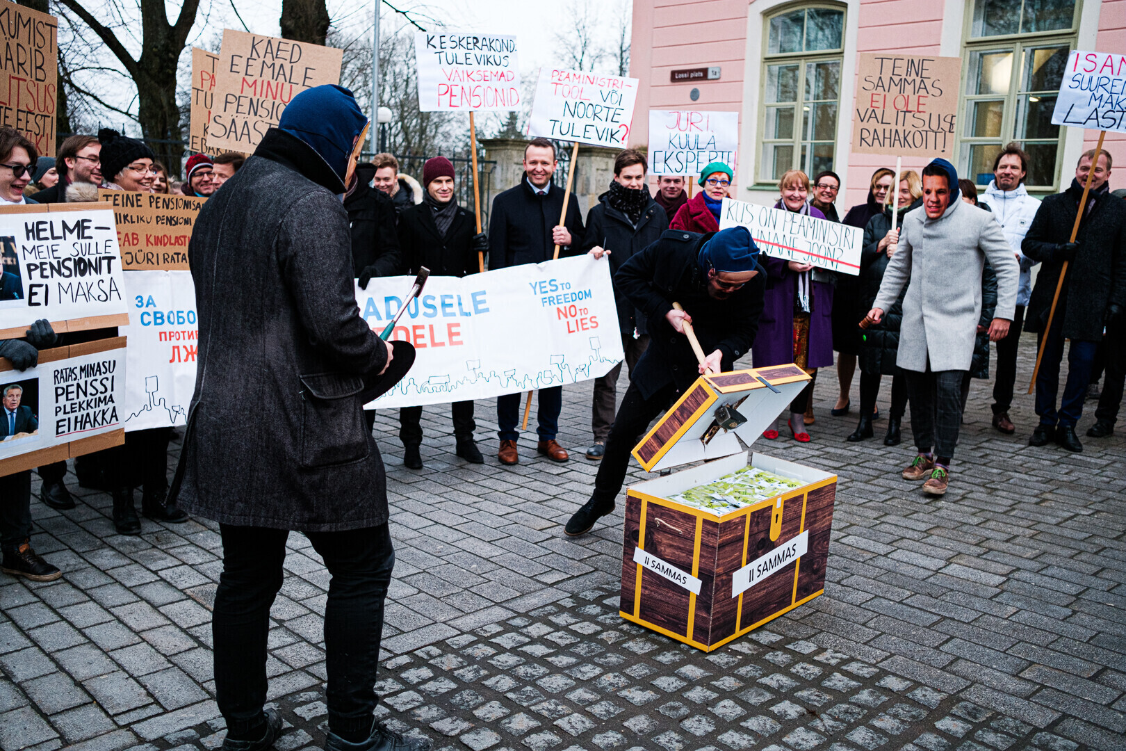 Kodanikuliikumised "Jah vabadusele, ei valedele" ja Pensionikogujate Ühendus protestisid riigikogu ees valitsuse pensionireformi vastu. Meeleavaldusega liitusid ka opositsioonierakondade esindajad.