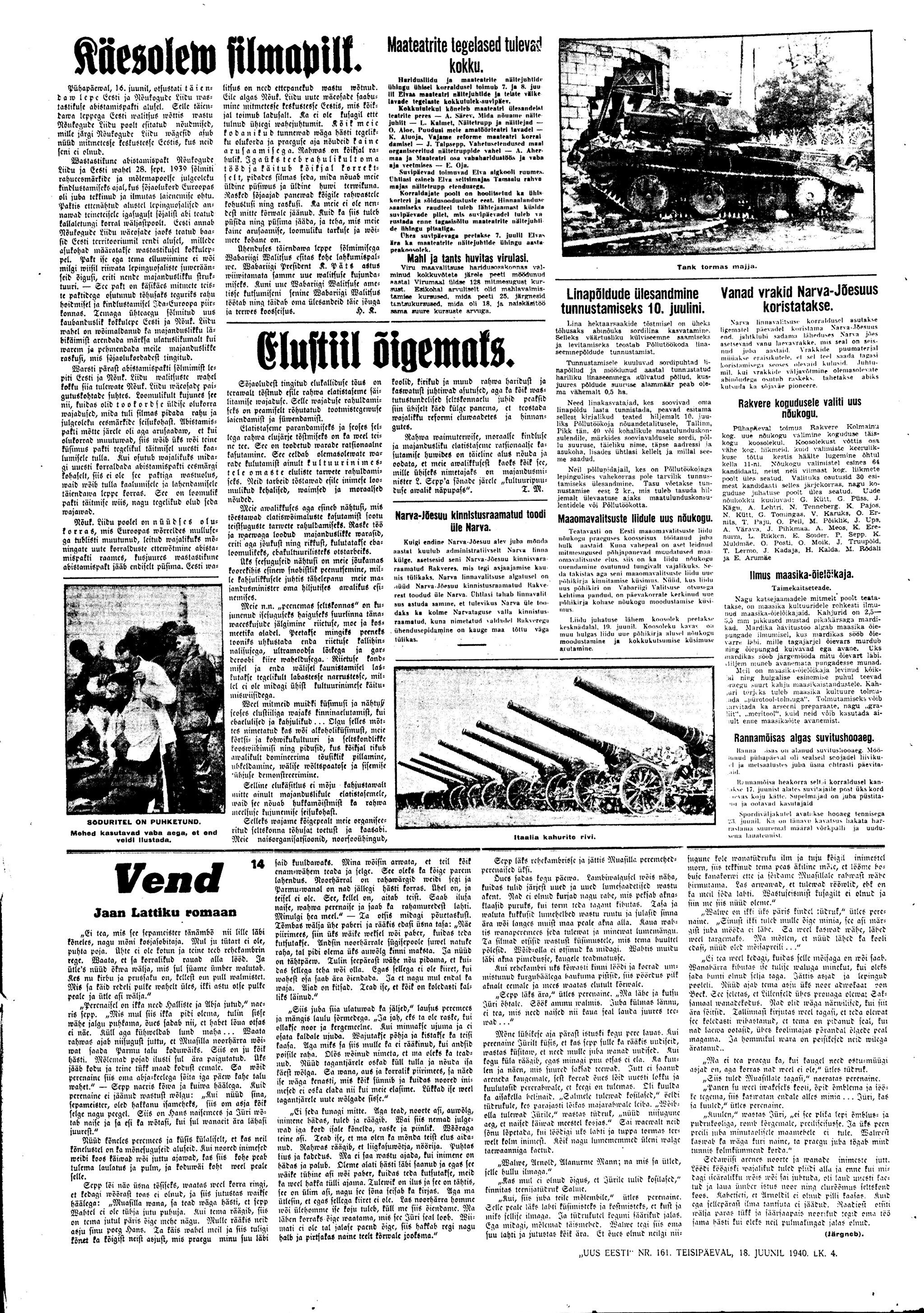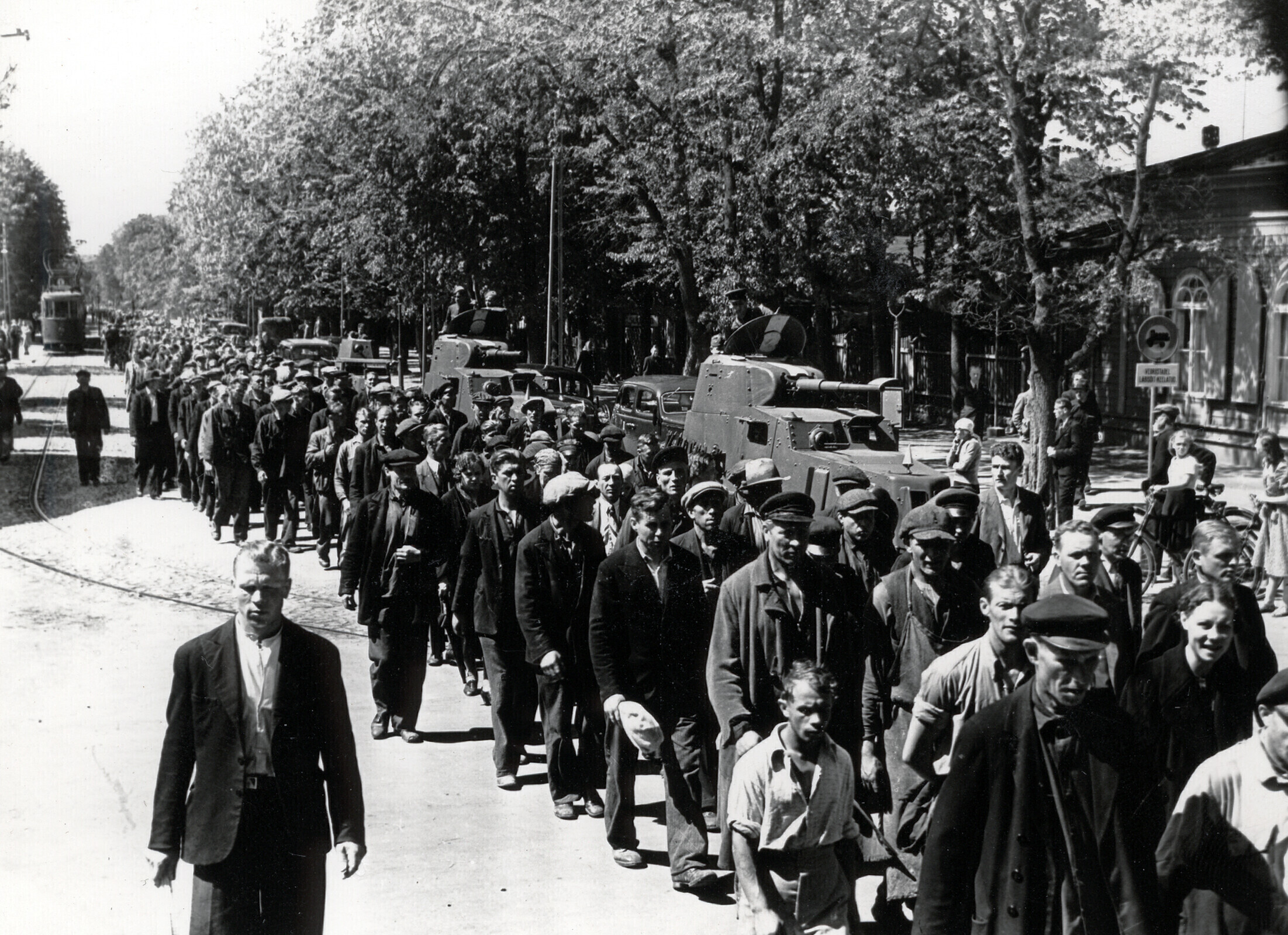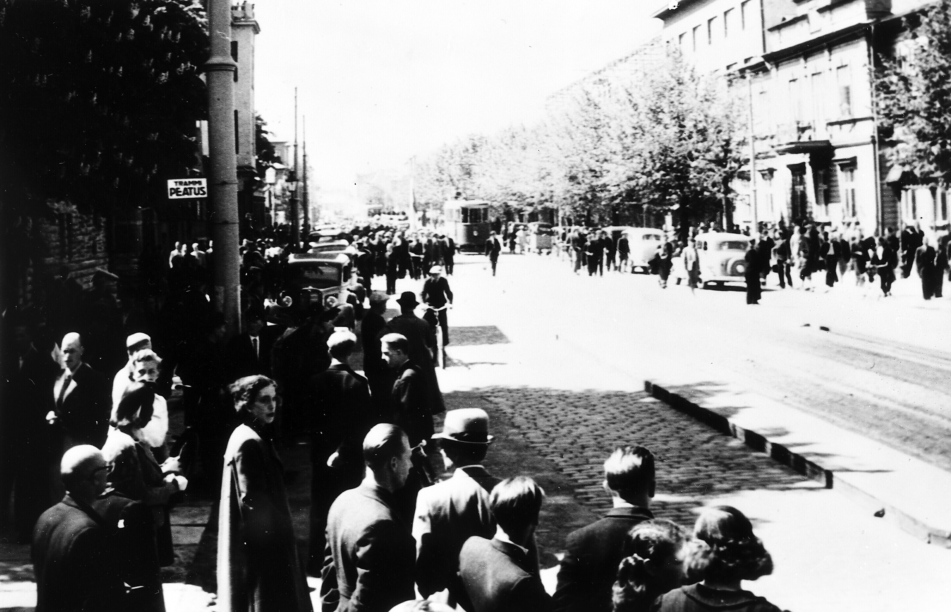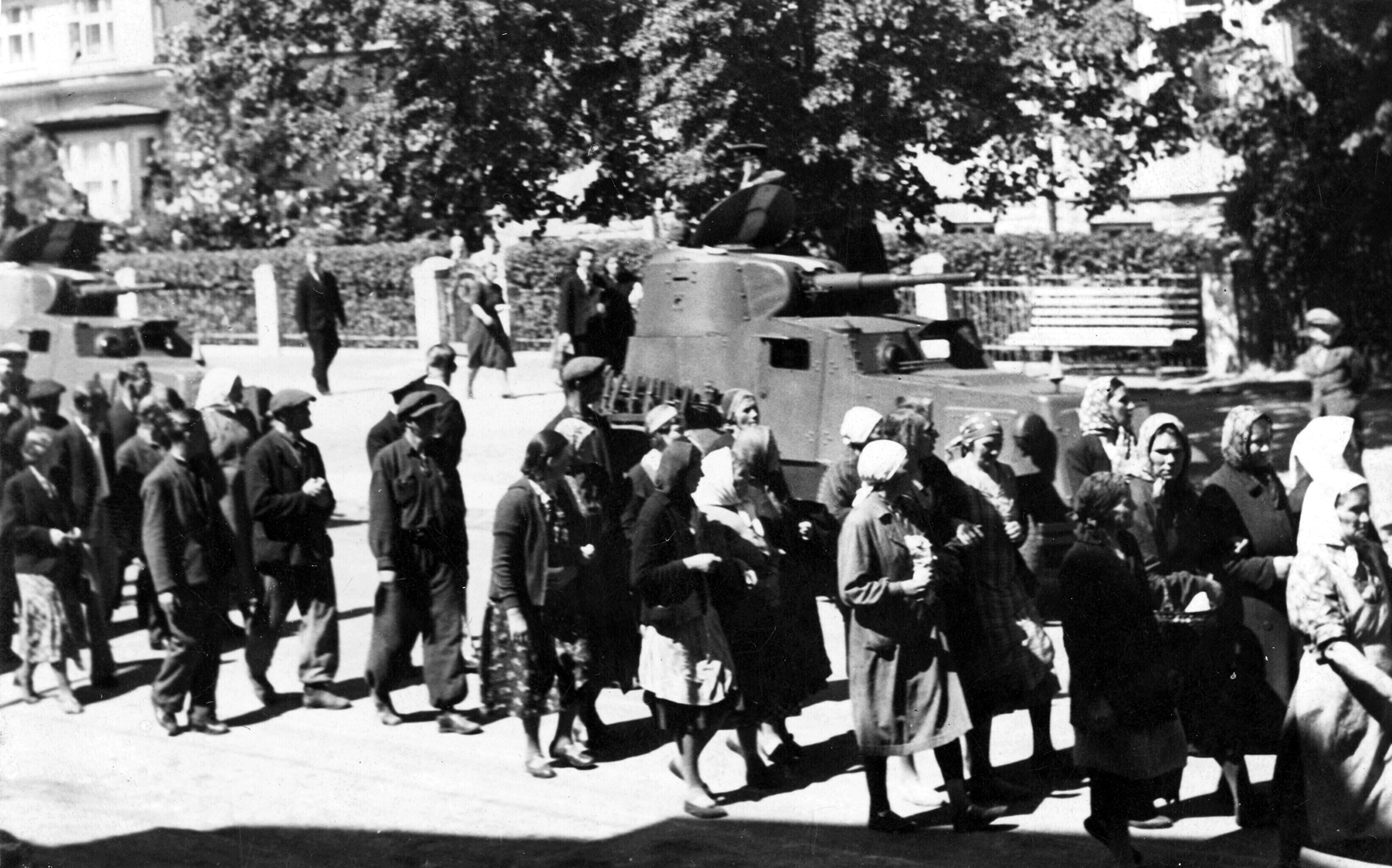 Meie nähes aga lütseumi sisse ei pääseda. Pärnu maanteed kodu liikudes sõidab sealt läbi Vene veoautosid, täis relvastatud Vene sõdureid, kes laulu löövad. Osal autodest on ka püssidega tsiviilelanikke. Rahvas, kes seisatama jäävad, on kurb, naised enamasti nutavad, ka lihtrõivaisse riietatud naised.
