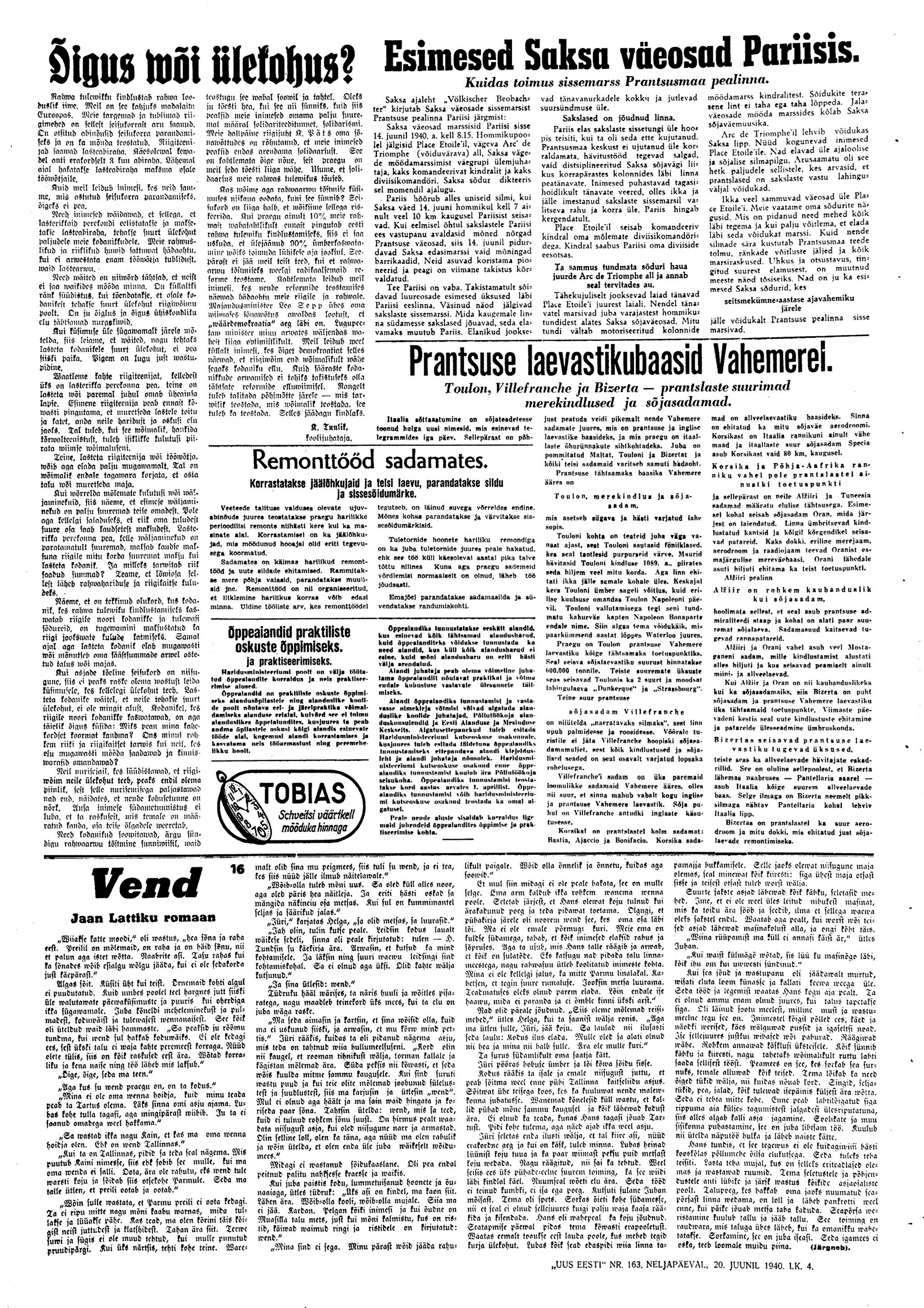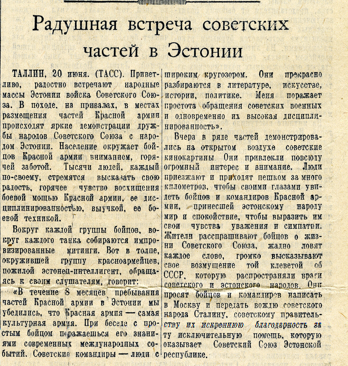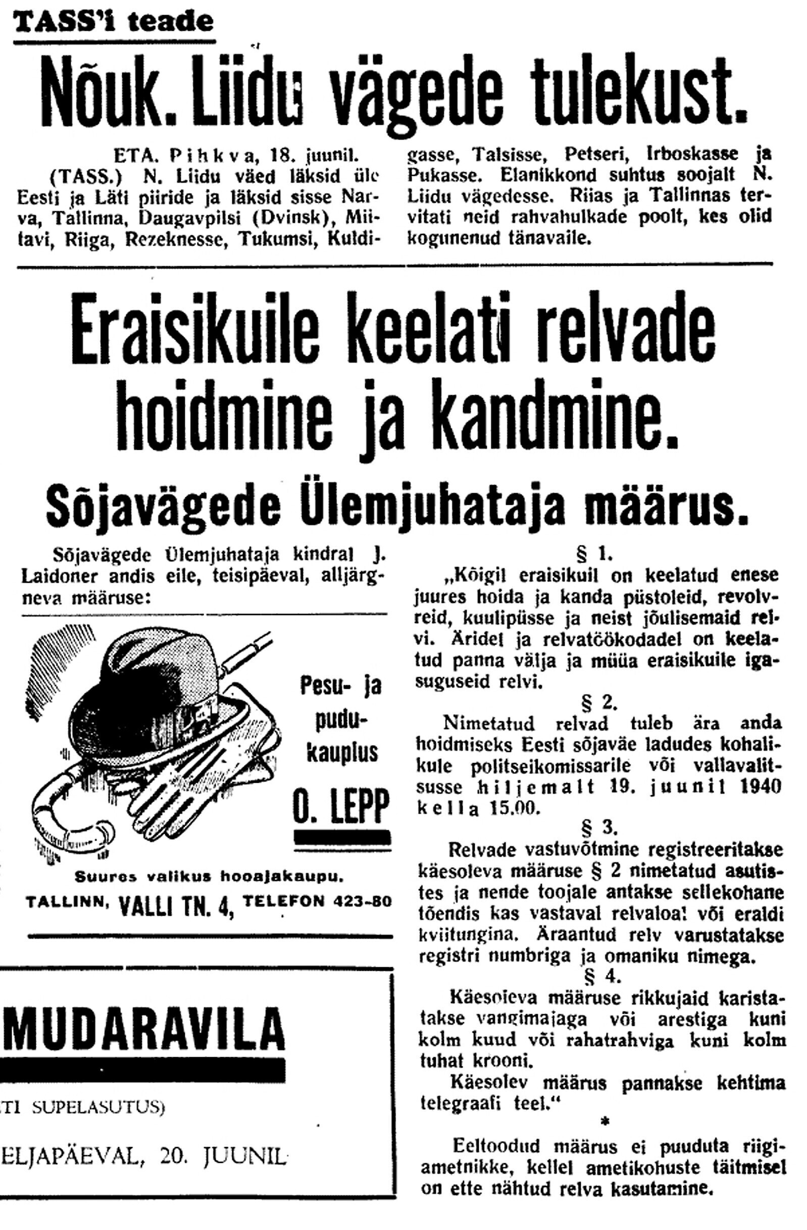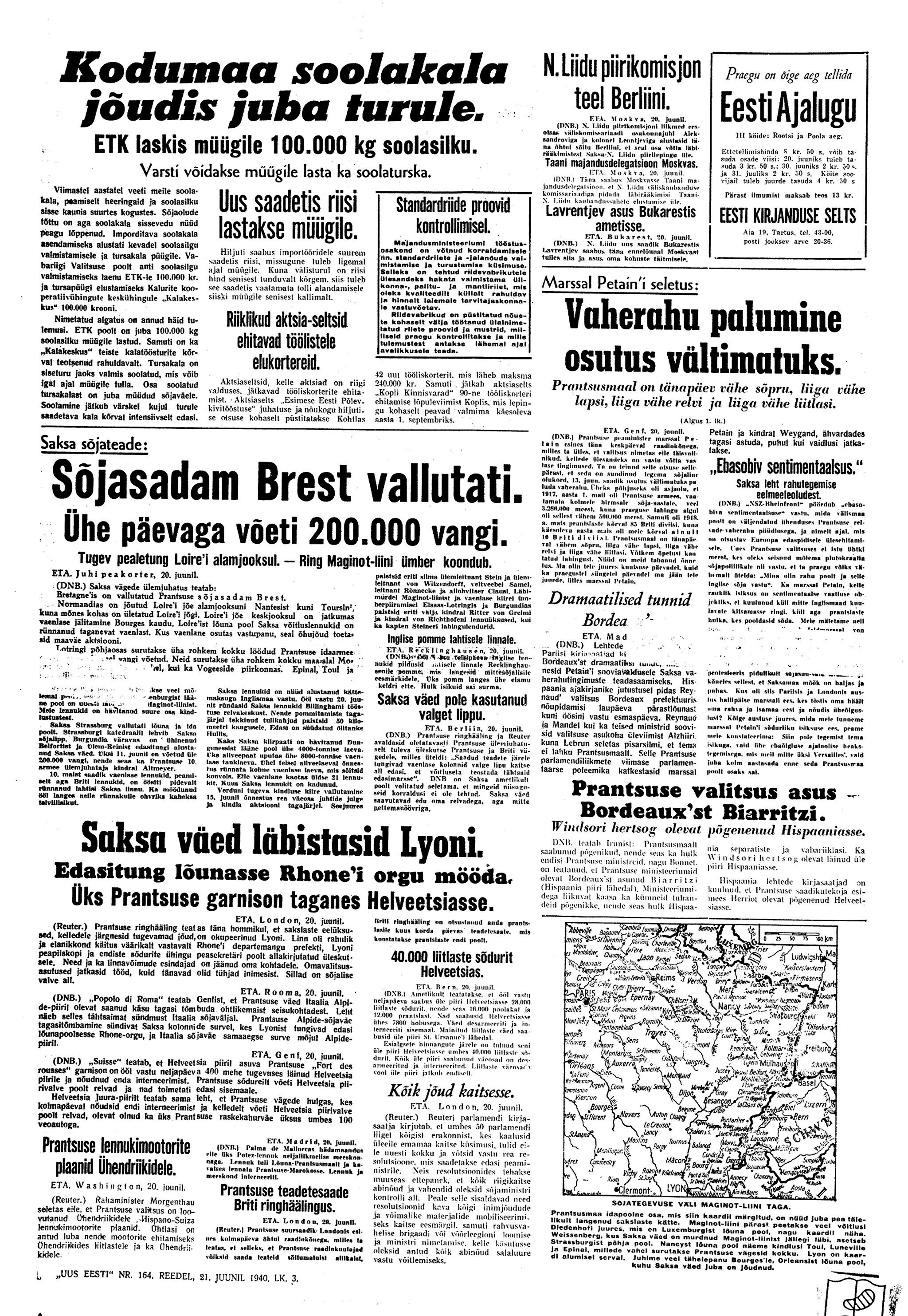 Meie nähes aga lütseumi sisse ei pääseda. Pärnu maanteed kodu liikudes sõidab sealt läbi Vene veoautosid, täis relvastatud Vene sõdureid, kes laulu löövad. Osal autodest on ka püssidega tsiviilelanikke. Rahvas, kes seisatama jäävad, on kurb, naised enamasti nutavad, ka lihtrõivaisse riietatud naised.