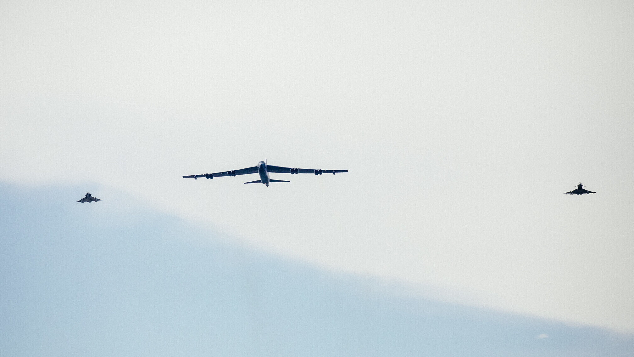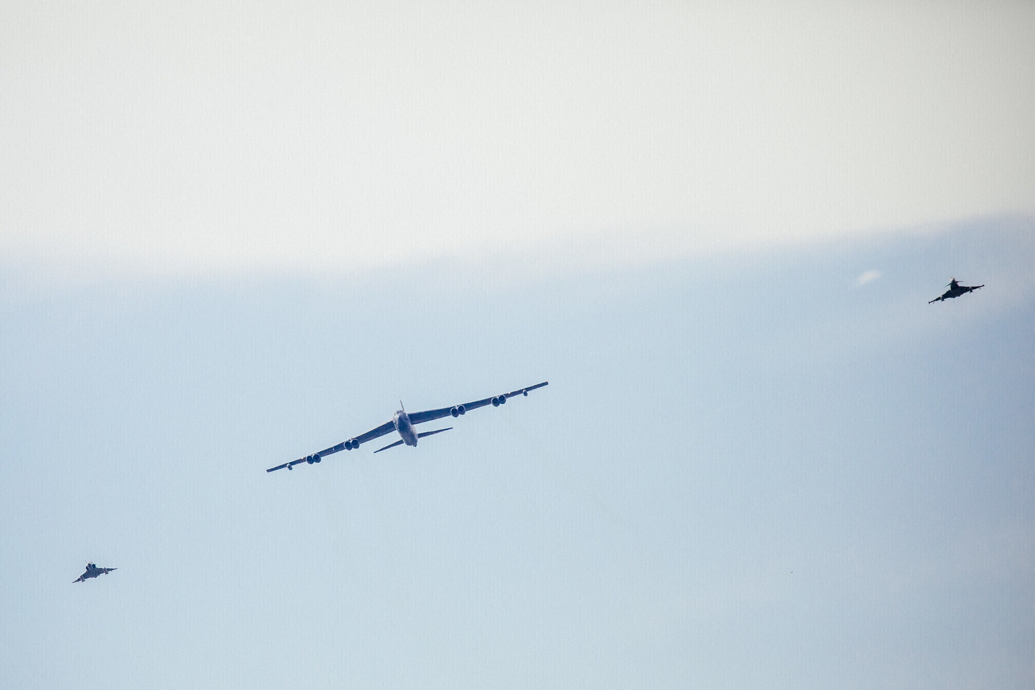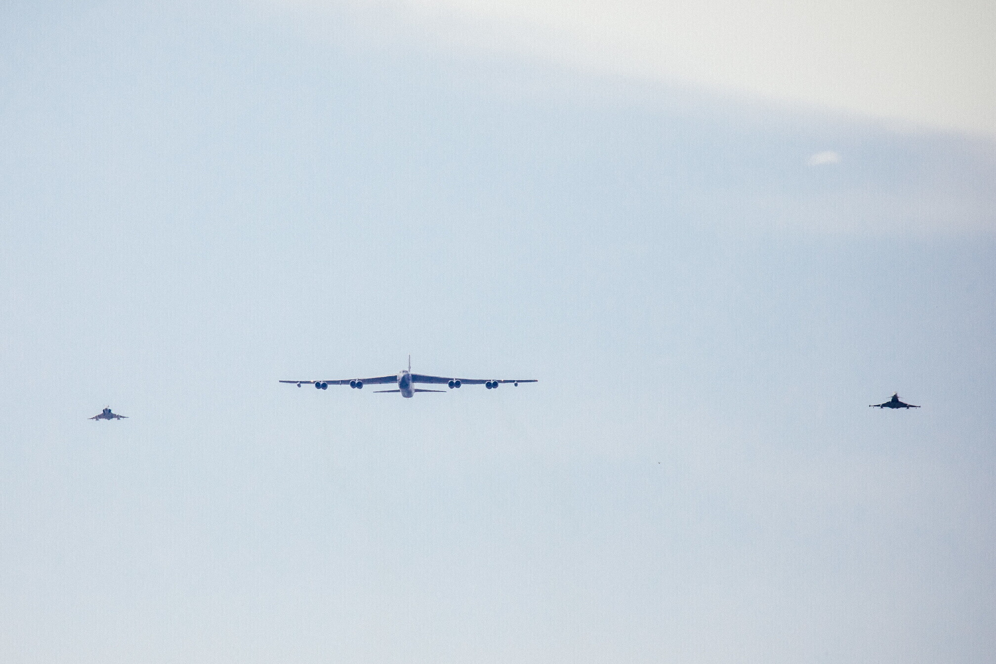 Strateegiline pommitaja B-52 saabus Eestisse Ameerika Ühendriikidest Põhja-Dakotast Minot õhuväebaasist, lennu ajal sooritati ka õhus tankimine.