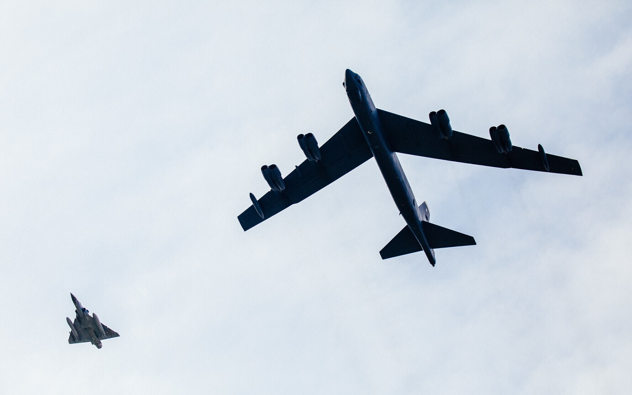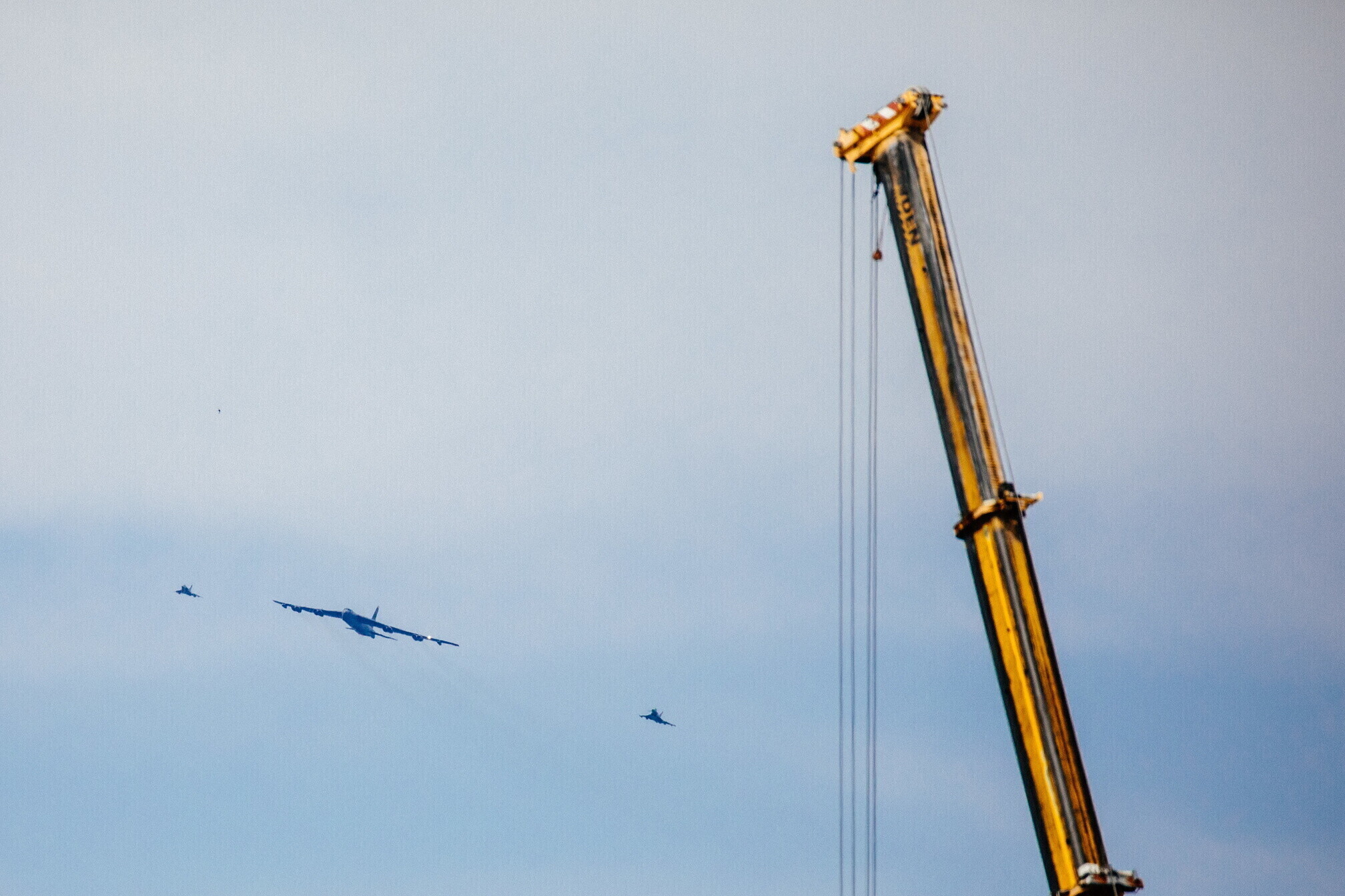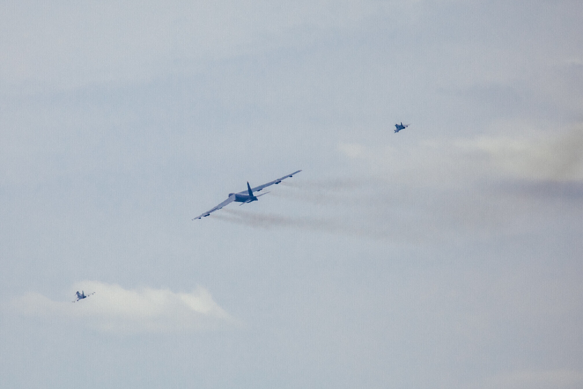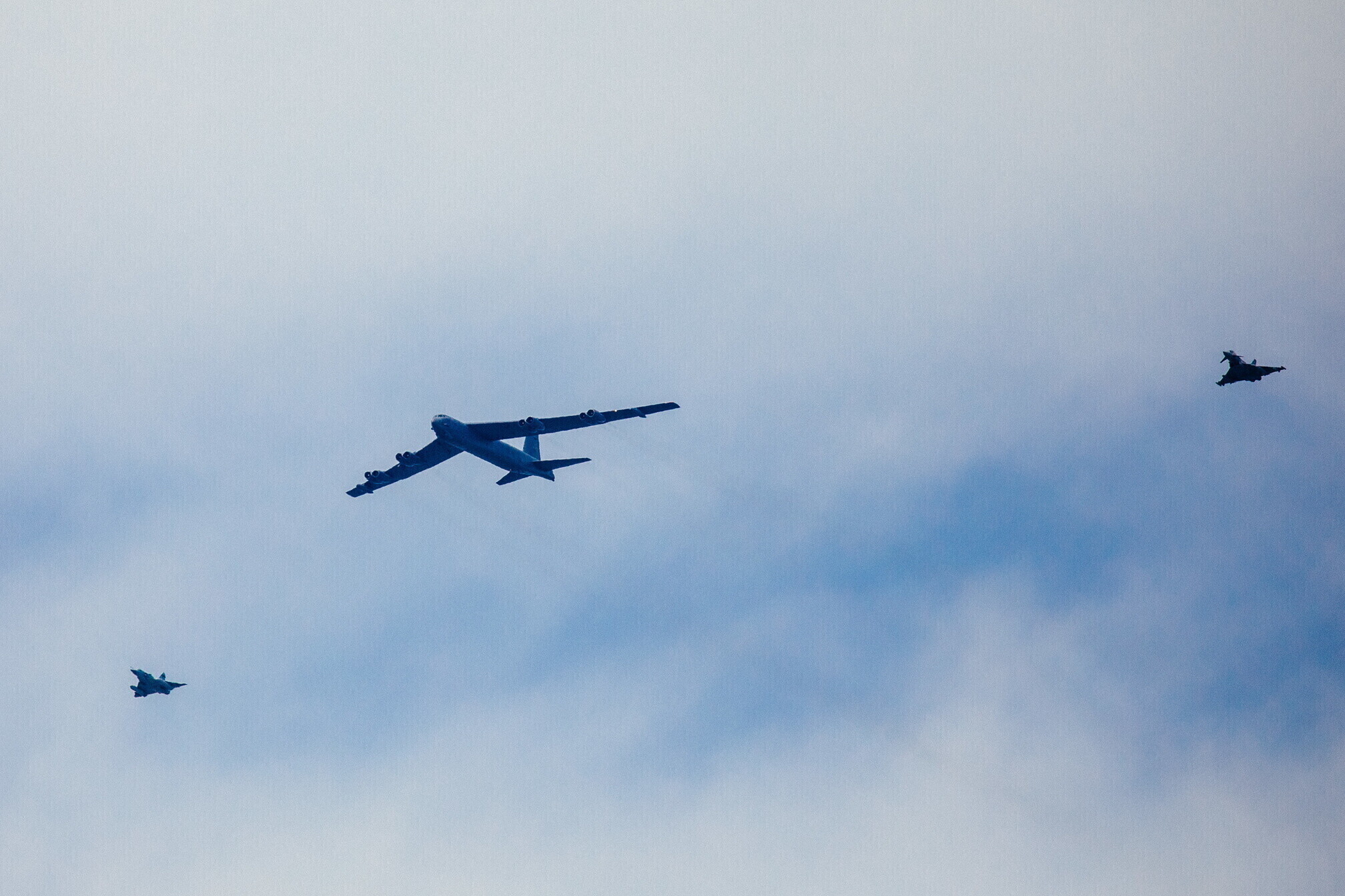 Strateegiline pommitaja B-52 saabus Eestisse Ameerika Ühendriikidest Põhja-Dakotast Minot õhuväebaasist, lennu ajal sooritati ka õhus tankimine.