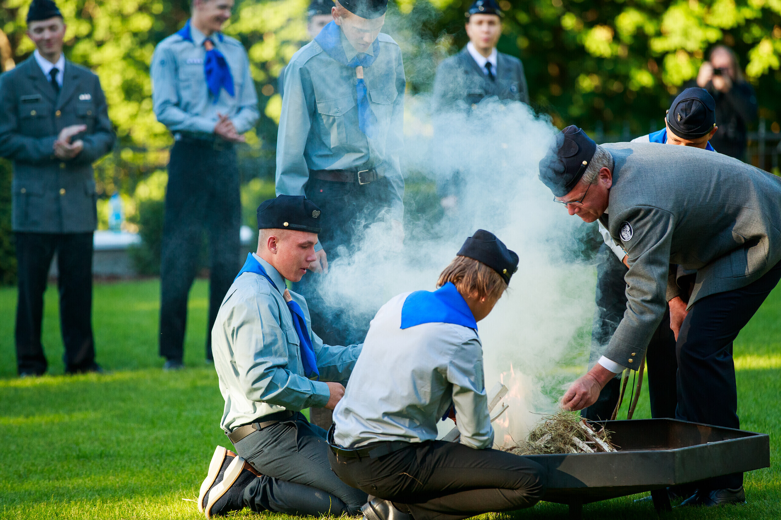 Kaitseliidu korraldatud tseremoonial süütasid noorkotkad Toompeal Kuberneri aias tule muistsel viisil koos vastava tseremooniaga.