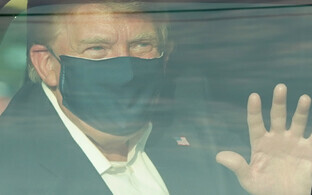 Pärast sõnumit avalikkuse eest kadunud president lahkus reede õhtul Valgest Majast ilma kõrvalise abita helikopterisse ja lendas Walter Reedi sõjaväehaiglasse. Mustas ülikonnas ja näomaskiga Trump möödus ajakirjanikest küsimustele vastamata.