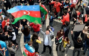 Sajad aserbaidžaanlased tulid tänavaile piirkonna üleandmist tähistama.