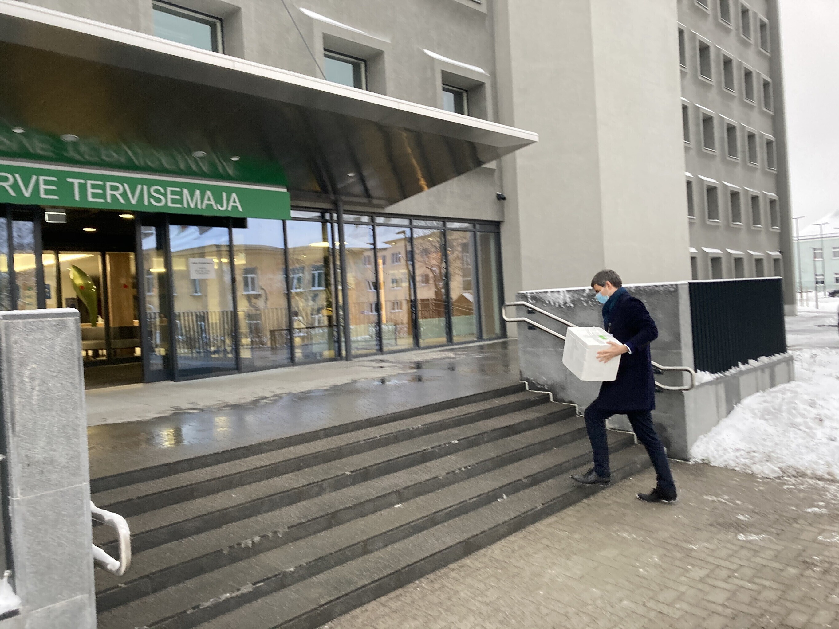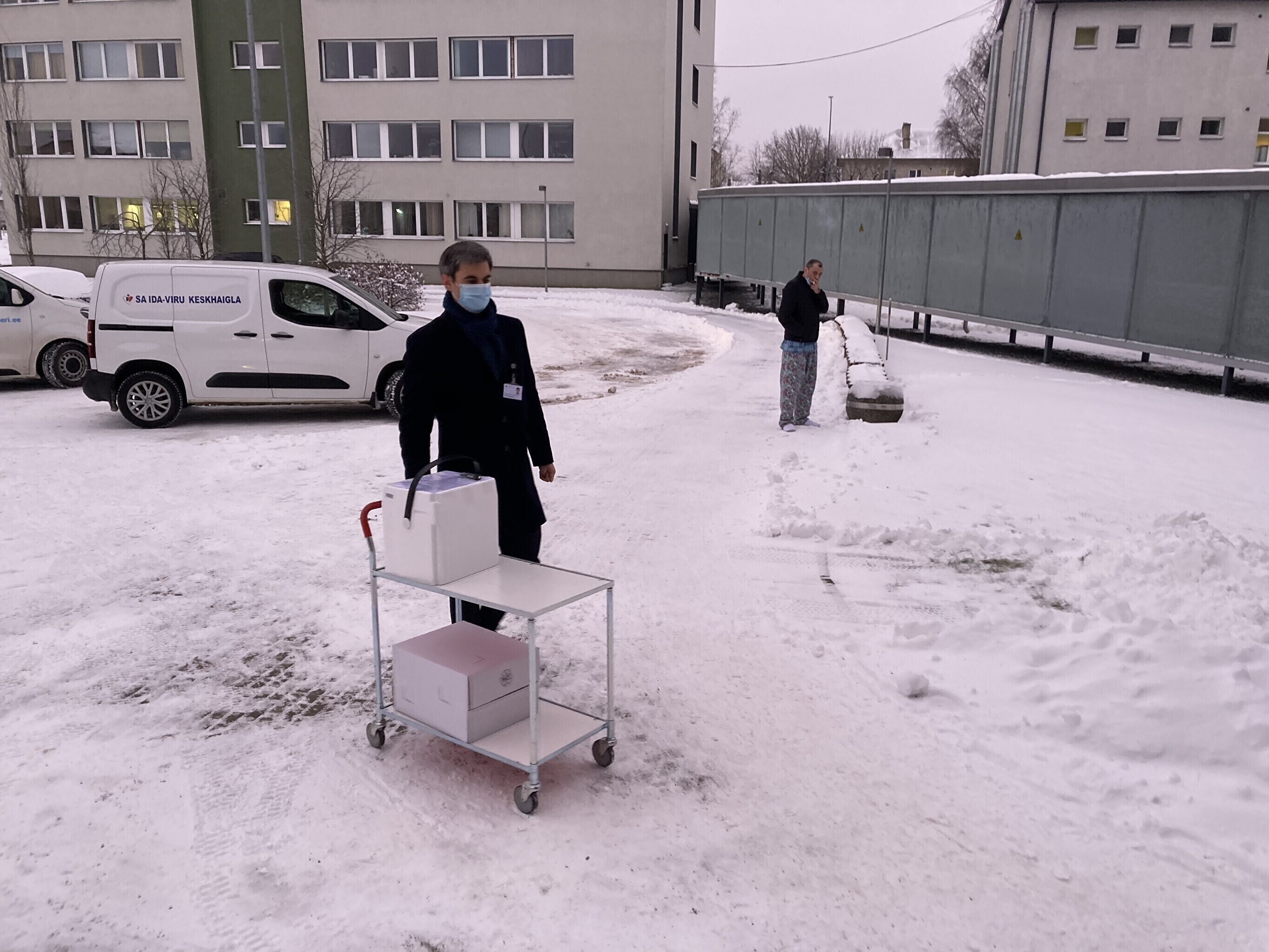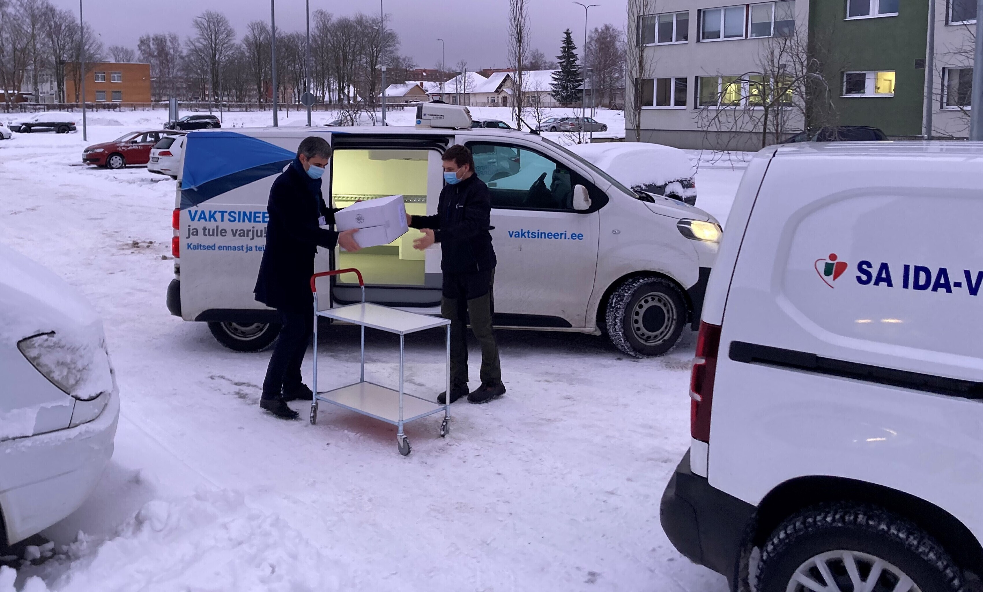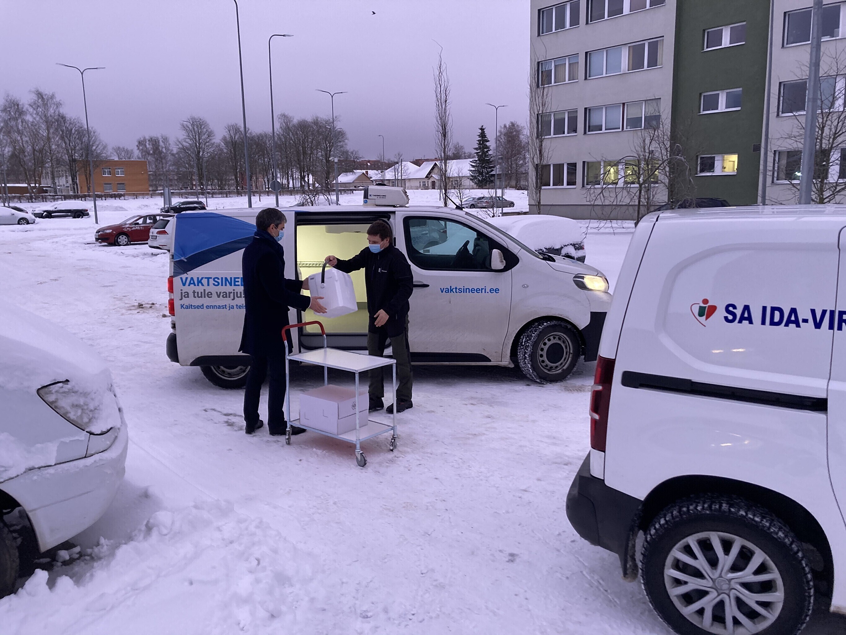 Kaubik vaktsiiniga saabus Kohtla-Järve Ahtme linnaosas asuva haigla juurde kell 9. Seal võttis kauba vastu Ida-Viru Keskhaigla apteegiteenistuse direktor Dmitri Ignatjev.