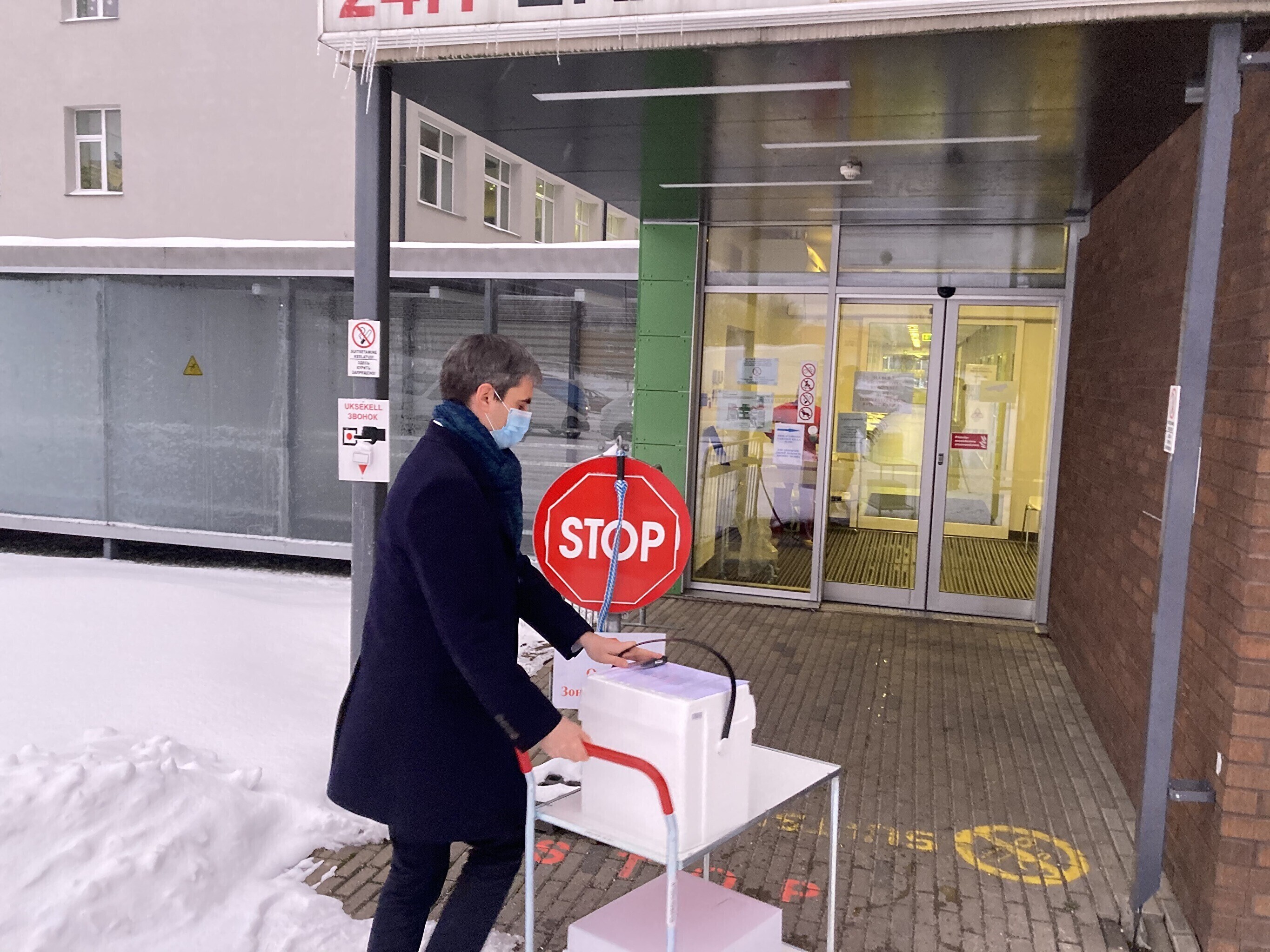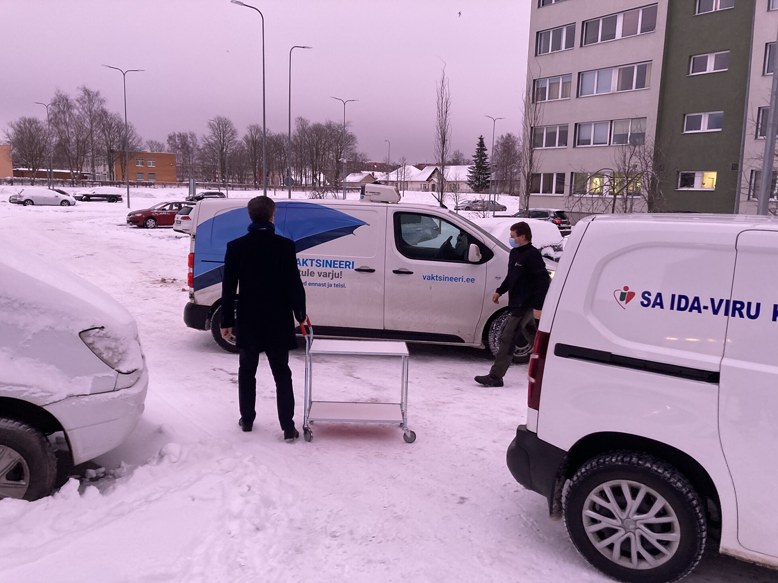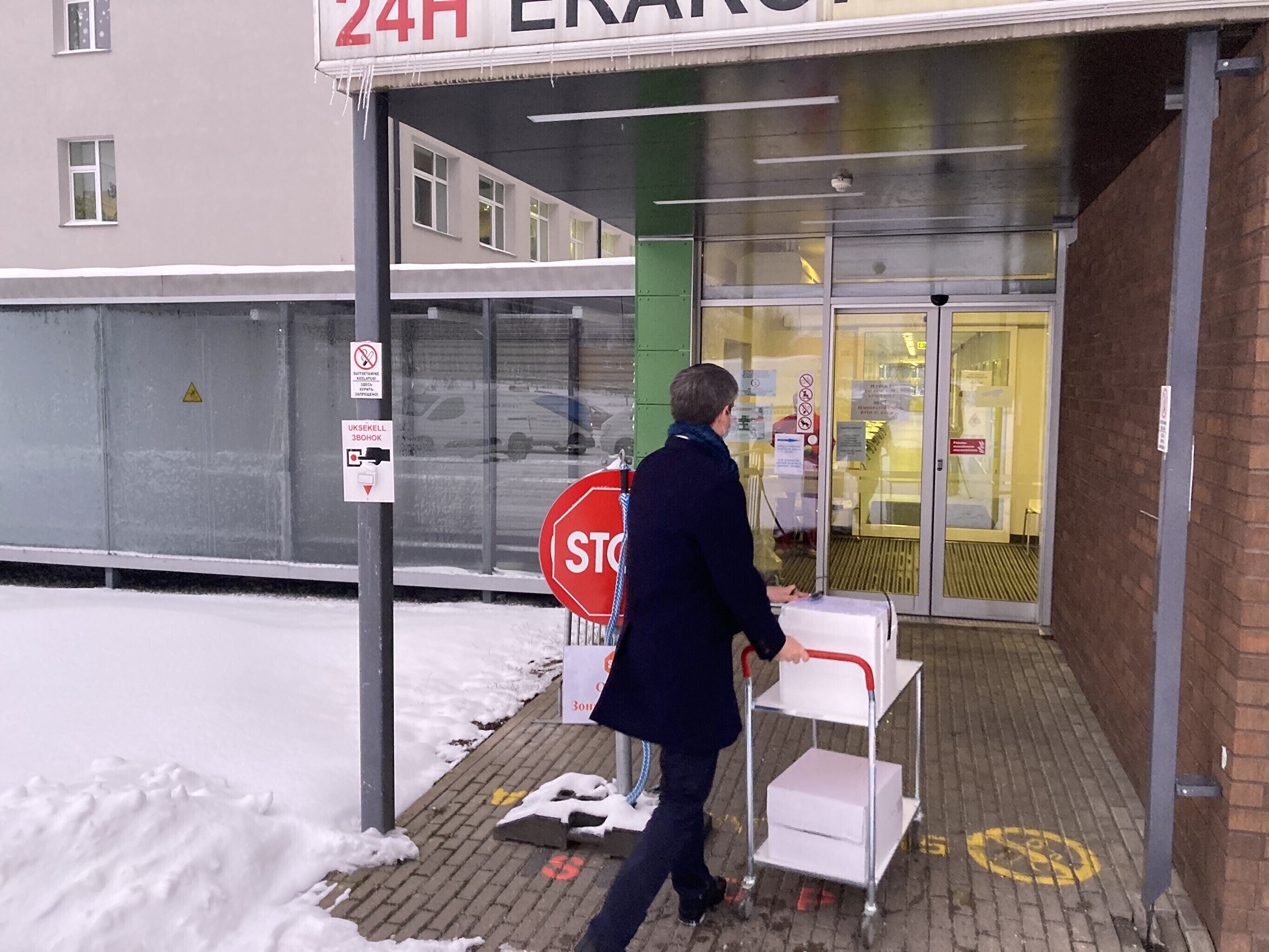 Kaubik vaktsiiniga saabus Kohtla-Järve Ahtme linnaosas asuva haigla juurde kell 9. Seal võttis kauba vastu Ida-Viru Keskhaigla apteegiteenistuse direktor Dmitri Ignatjev.