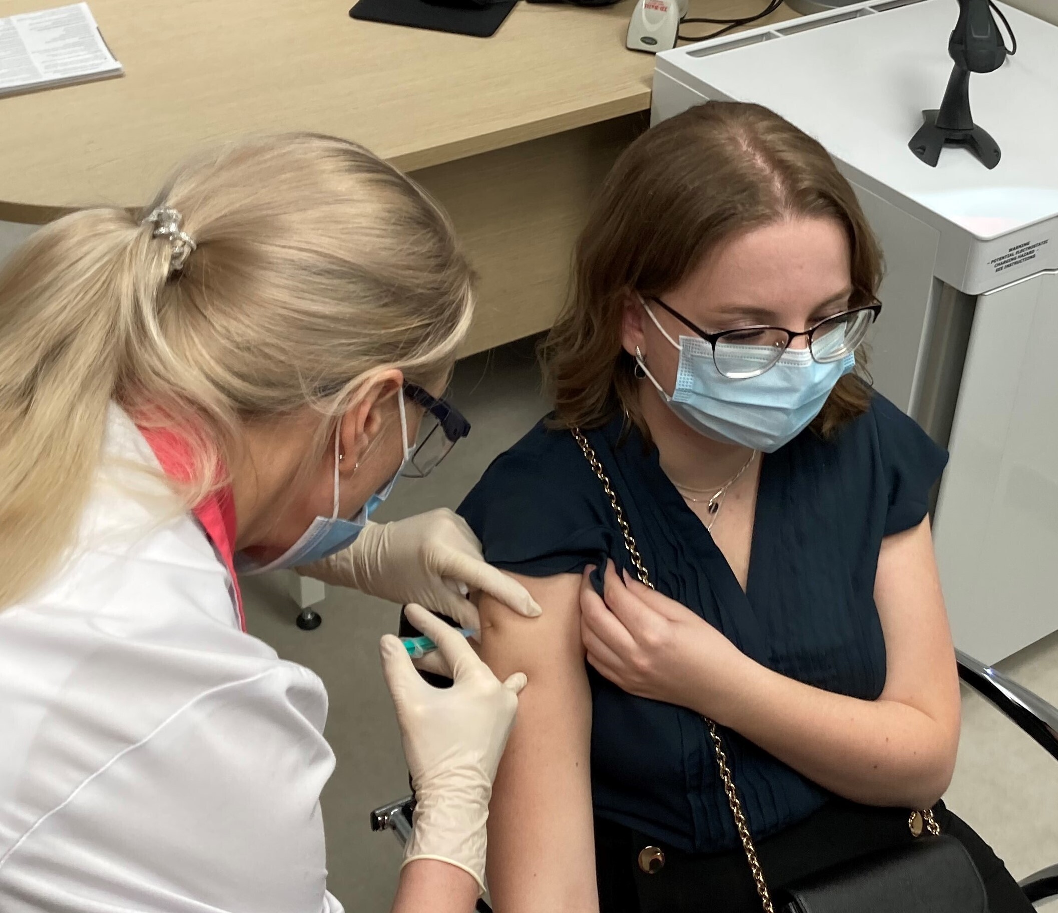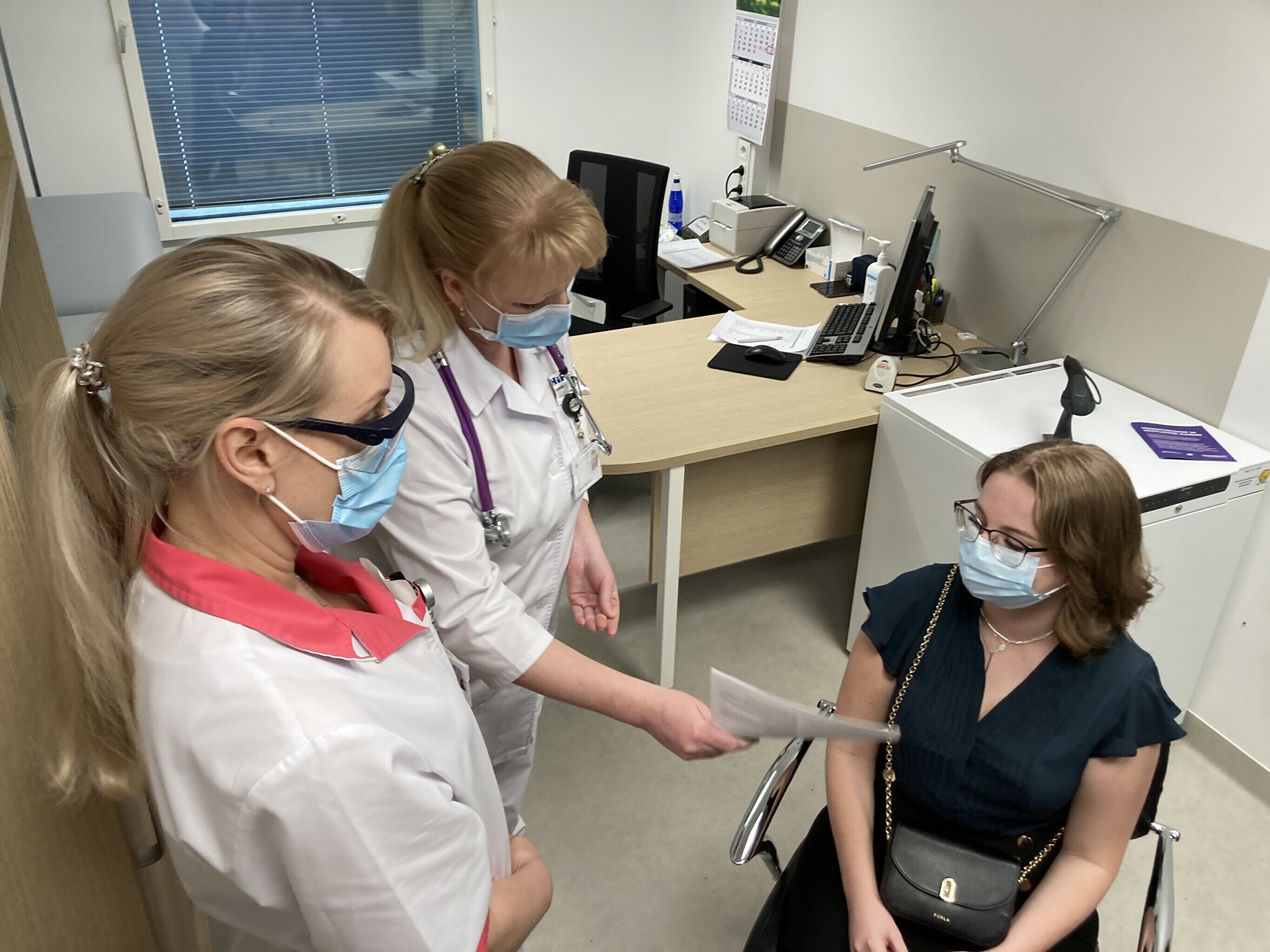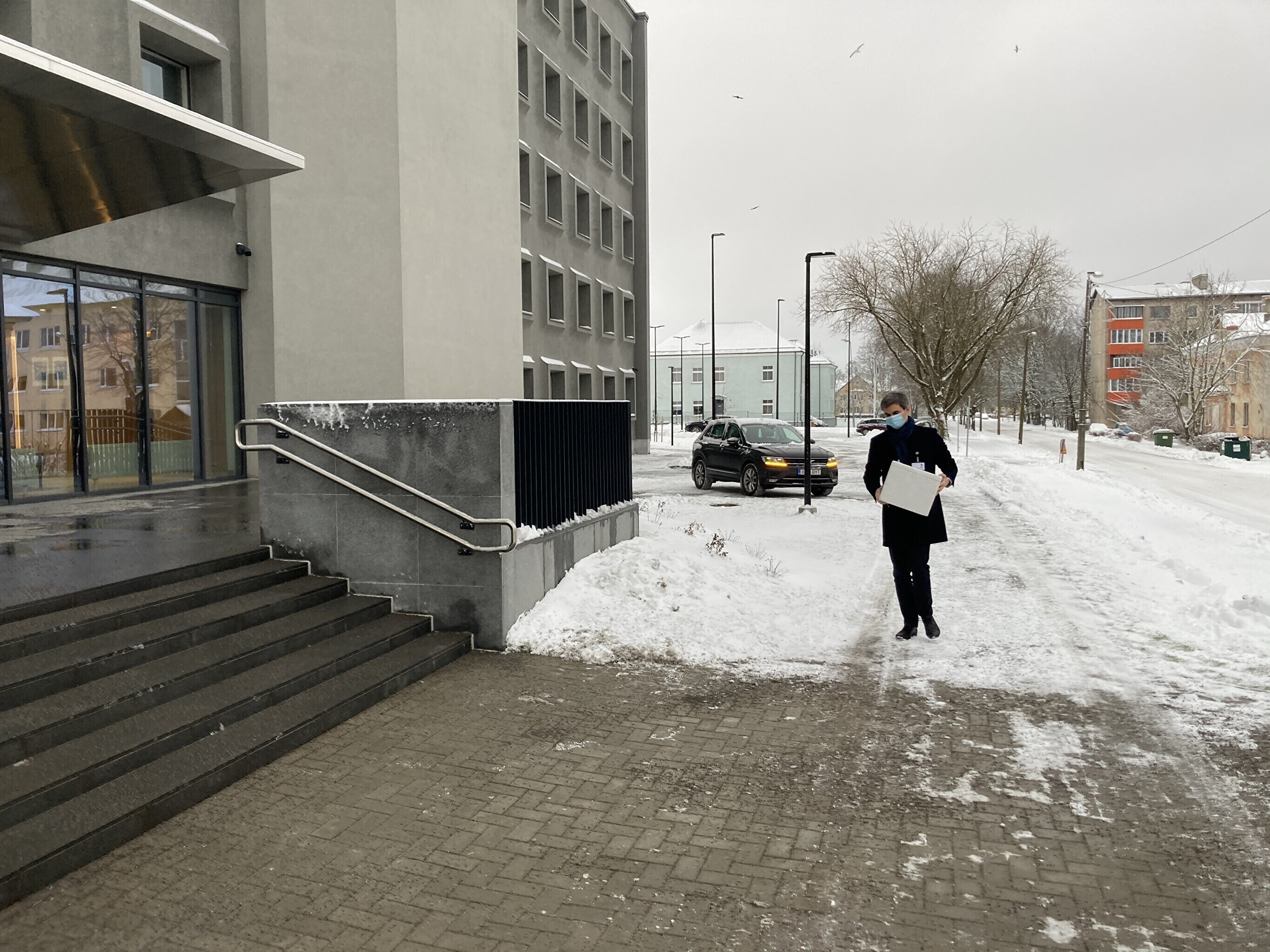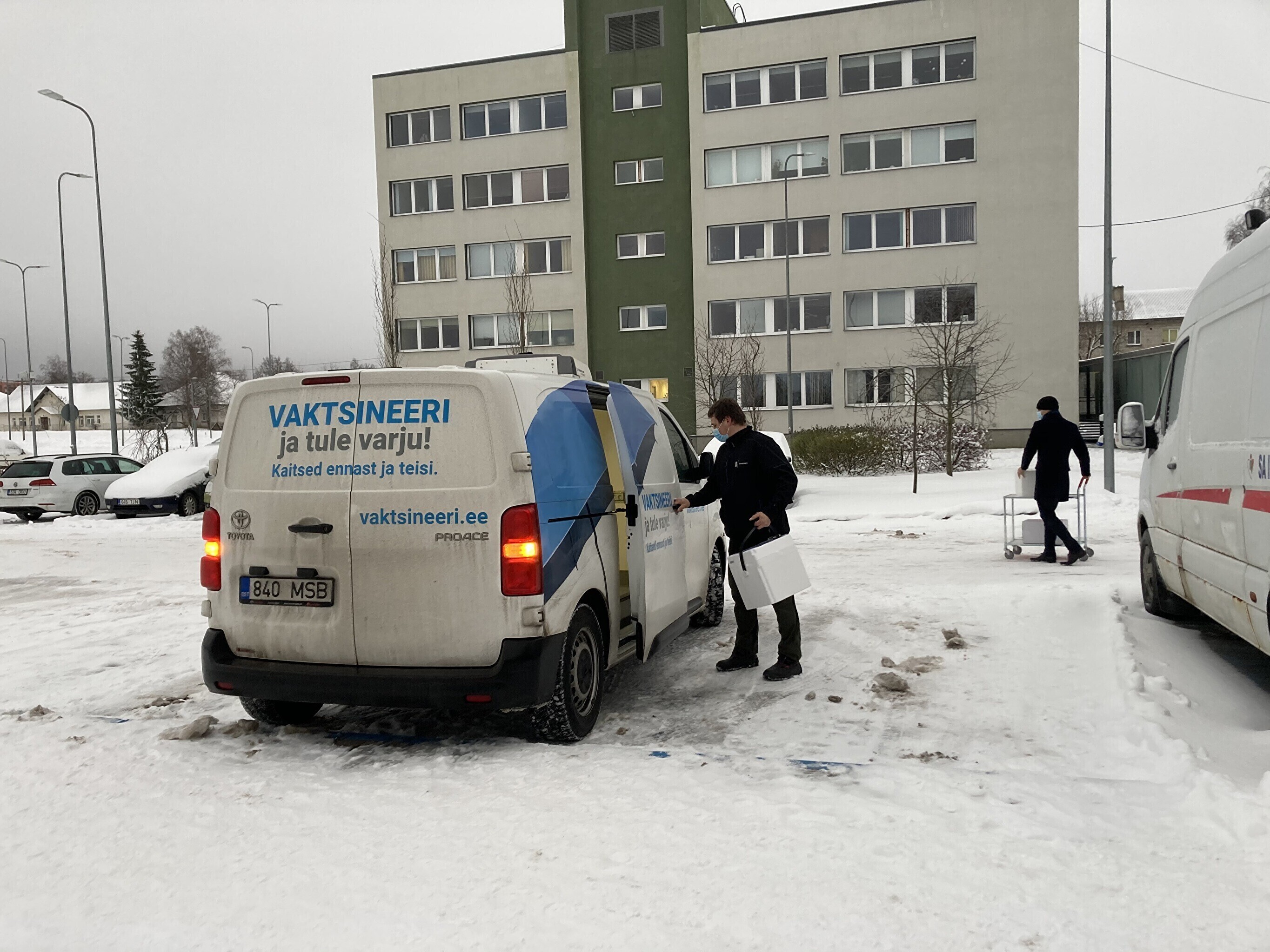 Kaubik vaktsiiniga saabus Kohtla-Järve Ahtme linnaosas asuva haigla juurde kell 9. Seal võttis kauba vastu Ida-Viru Keskhaigla apteegiteenistuse direktor Dmitri Ignatjev.