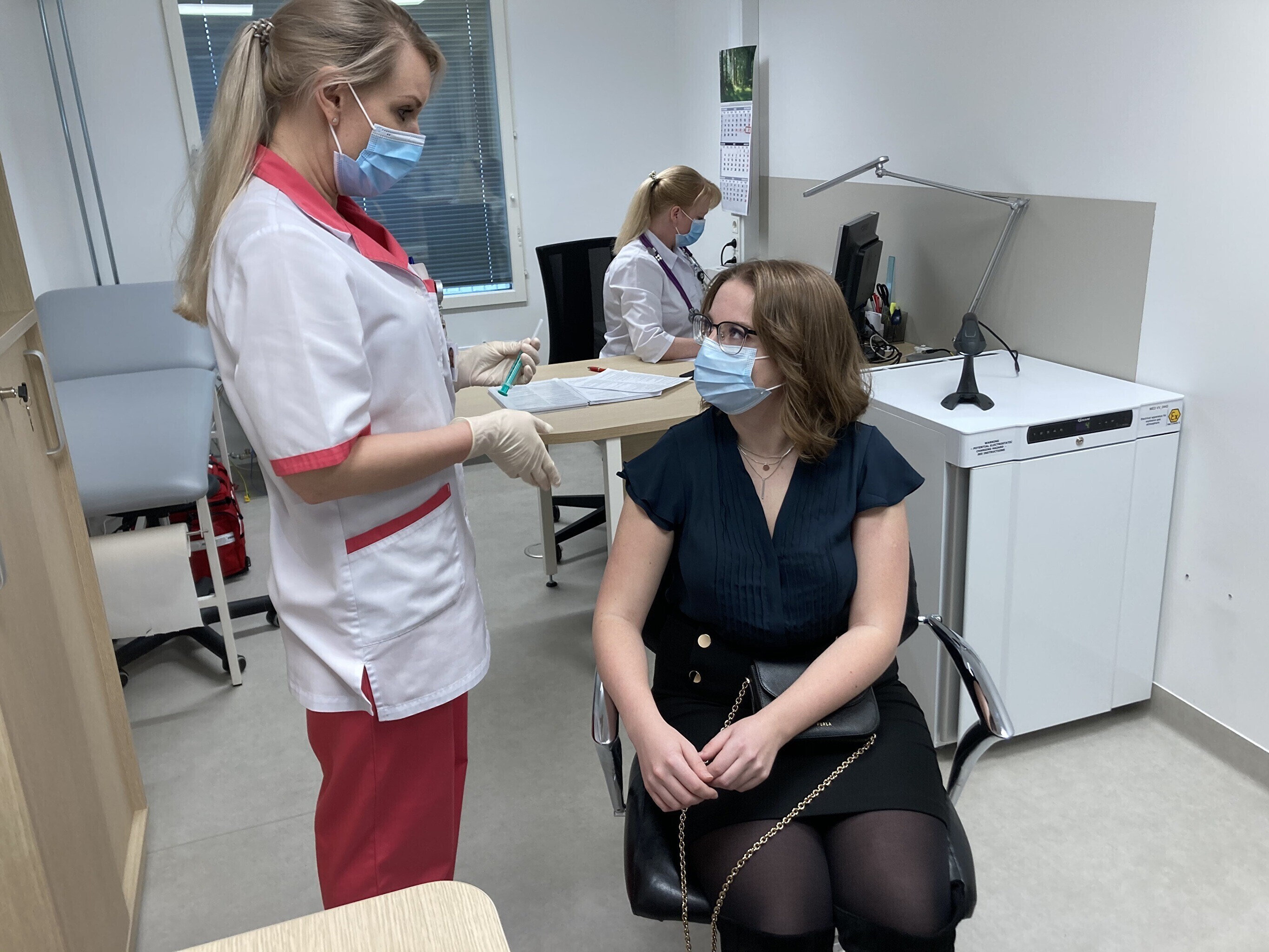 Kell 10.30 tehti esimese vaktsiinisaajaga Jelena Rozinkoga ajakirjanike ees testvaktsineerimine, kus reaalselt süstimist ei toimunud. Kuna ka proovi pildistati ja riietus proovis ning õigel süstimisel erines, on tekkinud erinevates kommentaariumides palju vandenõuteooriaid.