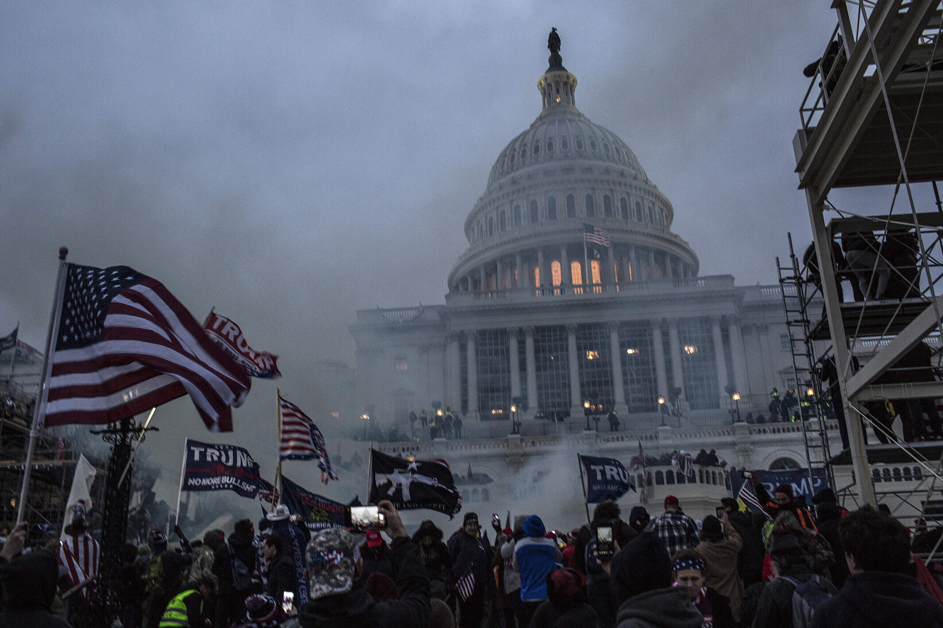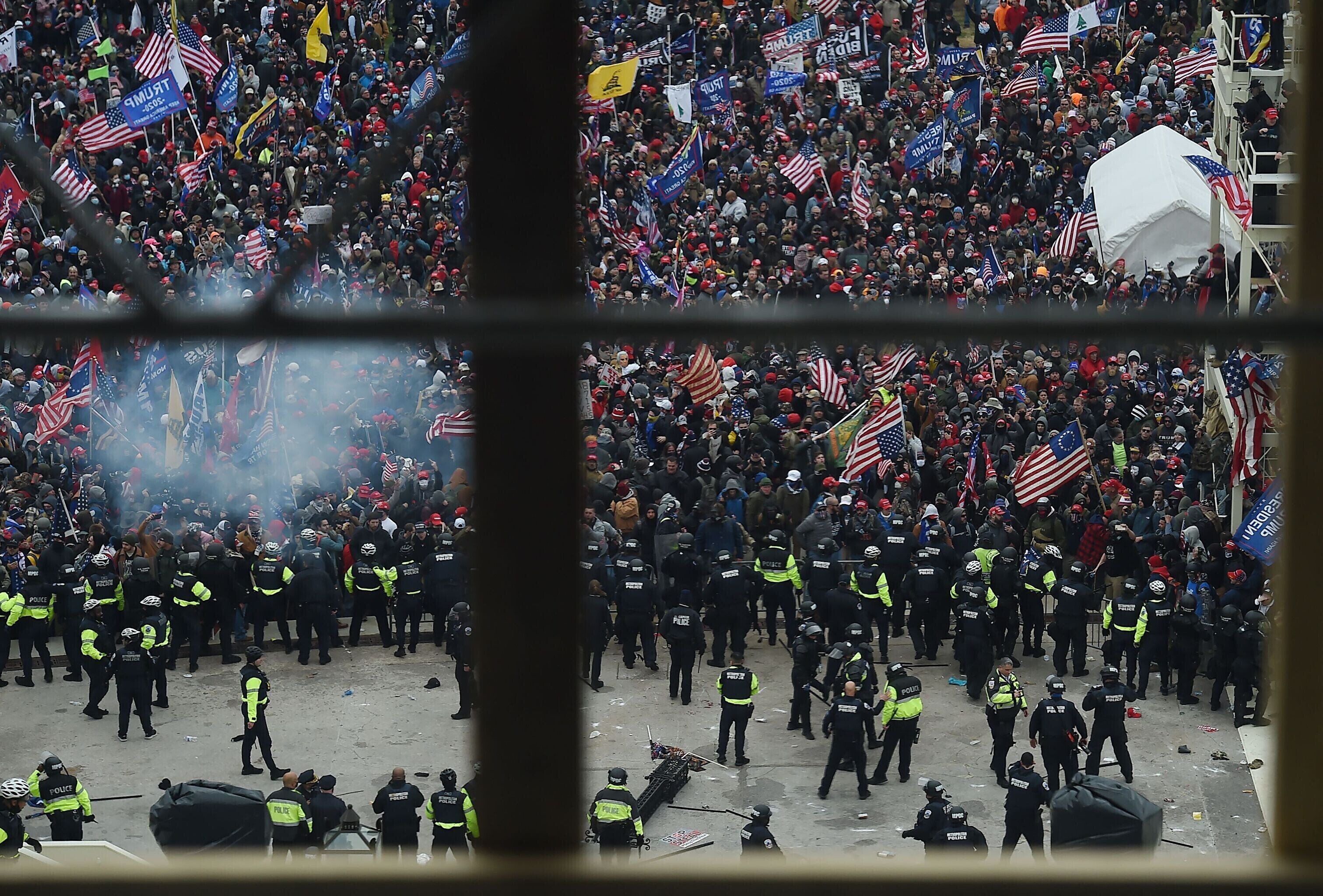 USA presidendi Donald Trumpi toetajad tungisid kohaliku aja järgi kolmapäeva päeval läbi politsei turvatõkete Kapitooliumisse.