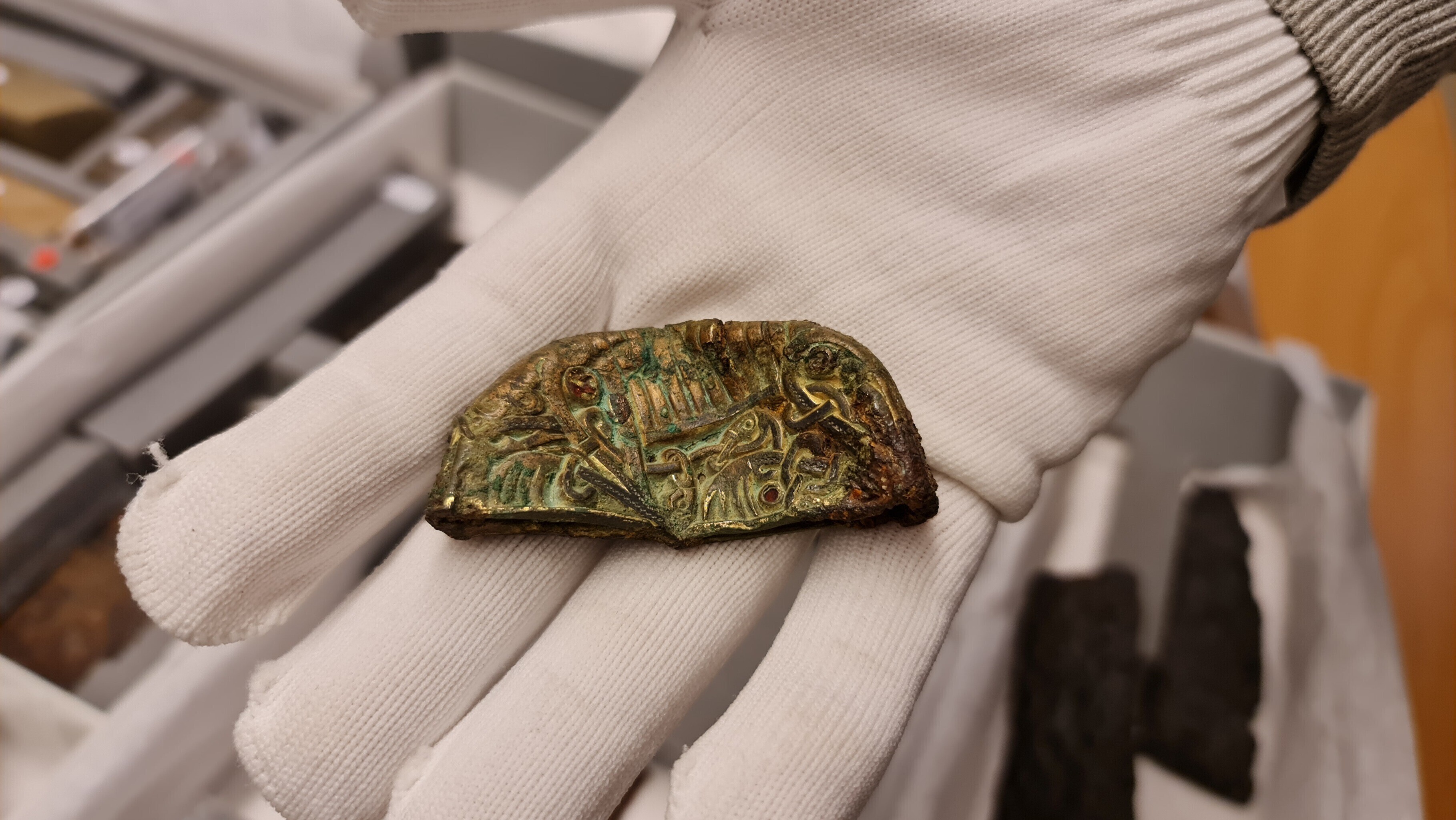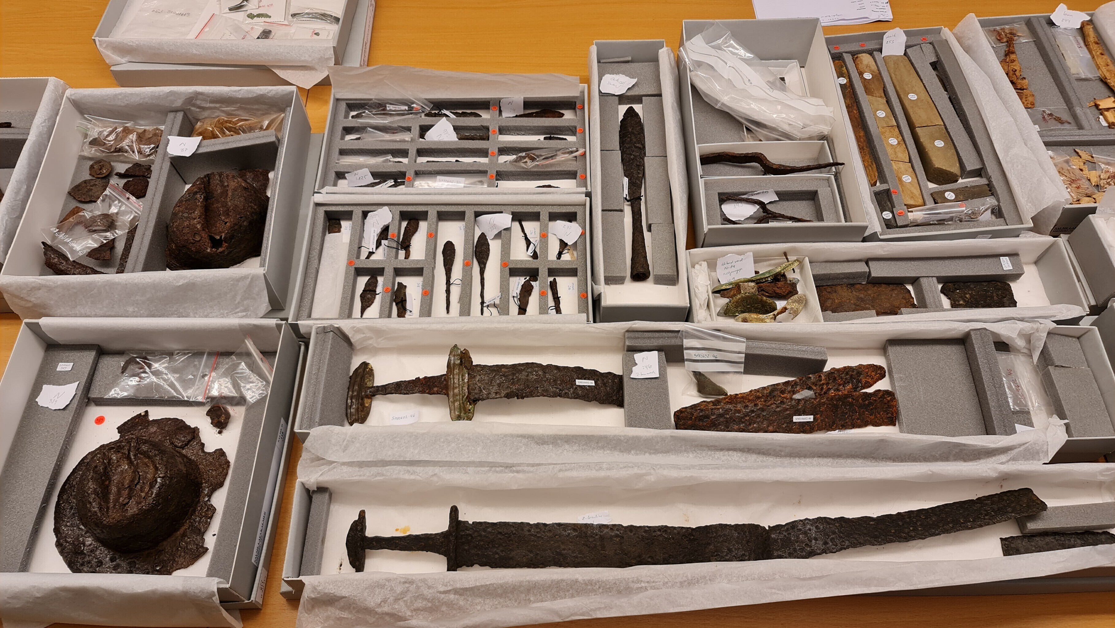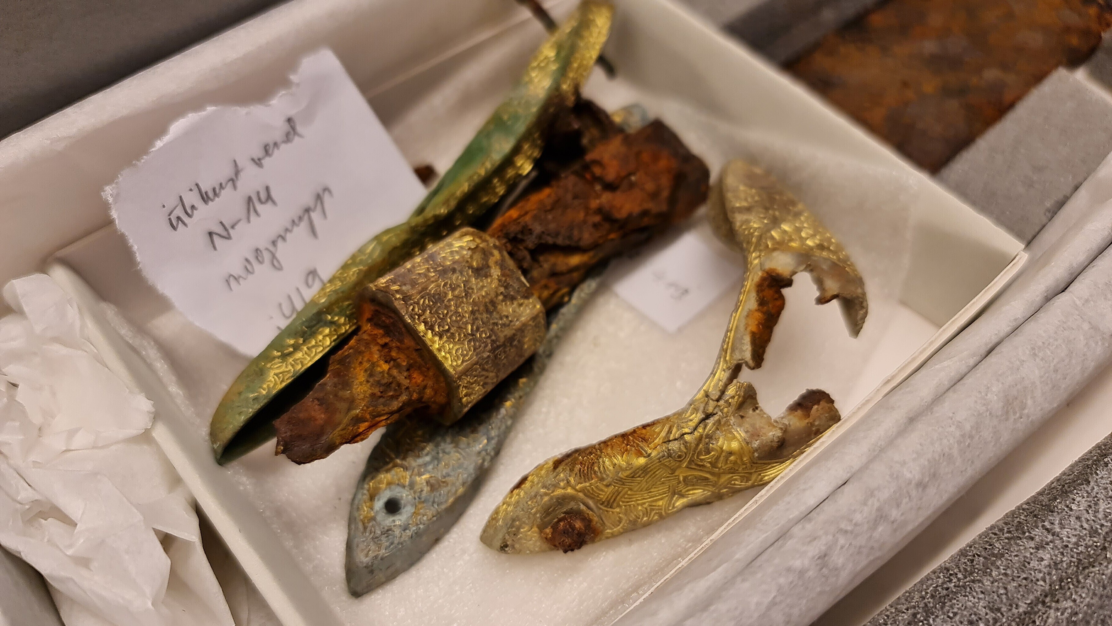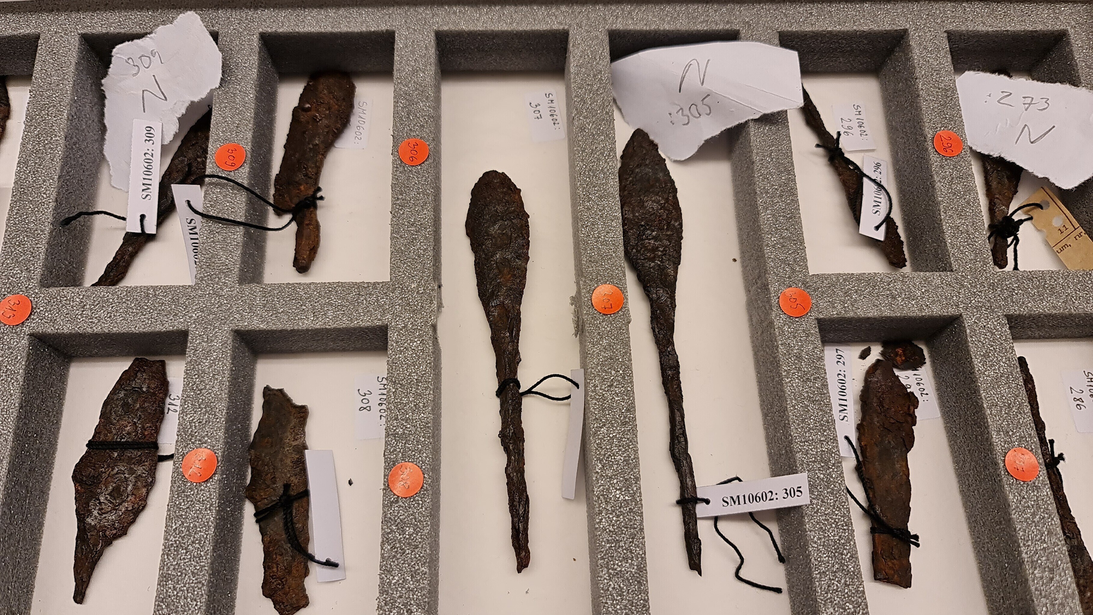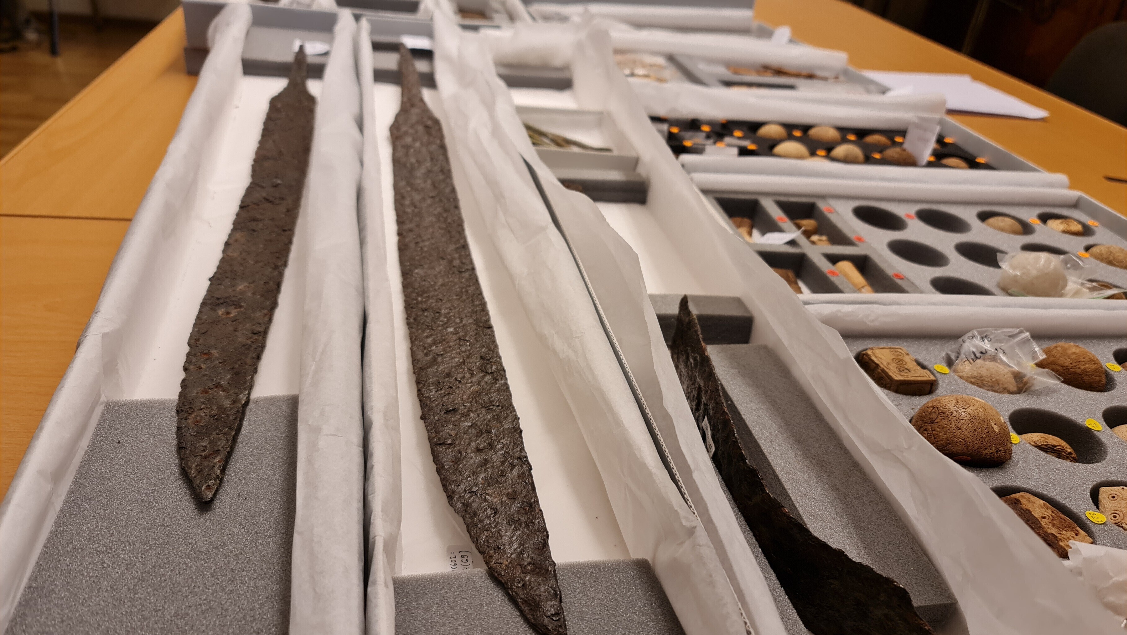 "Siin on kilbikuplad, mõõgad ja mitmesugused esemed, mida igapäevaelus võis vaja minna, näiteks kammid, luisud mõõkade teritamiseks ja veel palju palju muud. Siin on üks selline huvitav asi, mis näeb küll lihtne välja, aga tegemist on tõenäoliselt süütenoole otsaga, mida sai vibuga lasta ja millega võidi näiteks süüdata purje," kirjeldas ta.