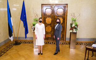 Välisminister Urmas Reinsalu kutsel Eestis visiidil viibiv Svjatlana Tsihhanovskaja sai ministrilt vapruse eest välisministeeriumi teeneteristi.