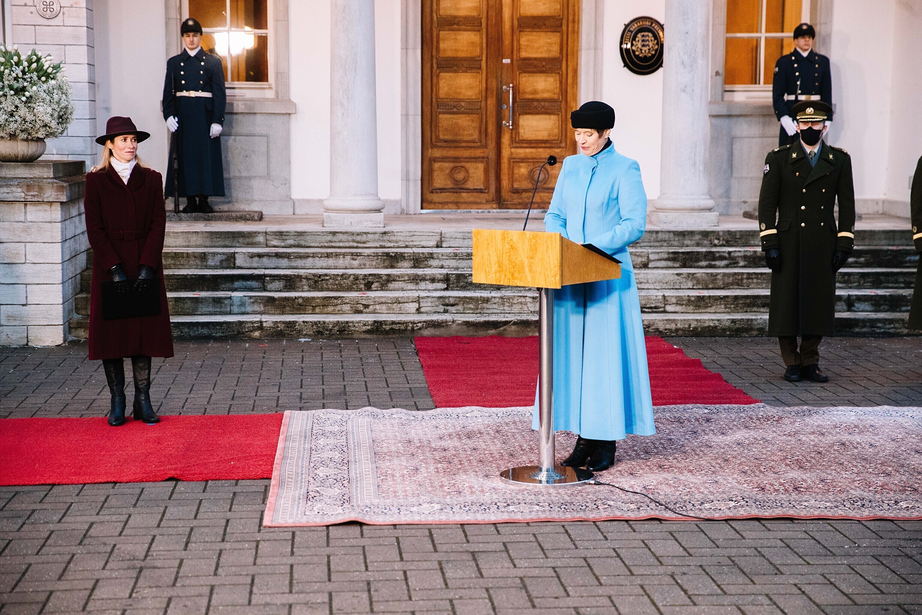 President Kersti Kaljulaid nimetas uue valitsuse eesotsas peaminister Kaja Kallasega ametisse teisipäeva hommikul kell 8.44, päikesetõusul. Hiljem andsid Reformierakonna ja Keskerakonna valitsuse ministrid riigikogus ametivande ning siirdusid seejärel töökohtadele.