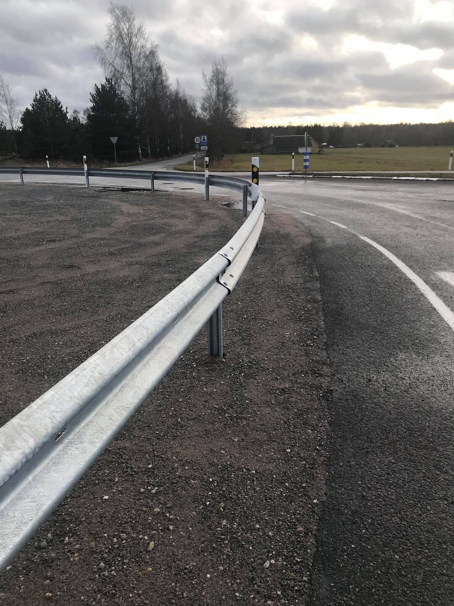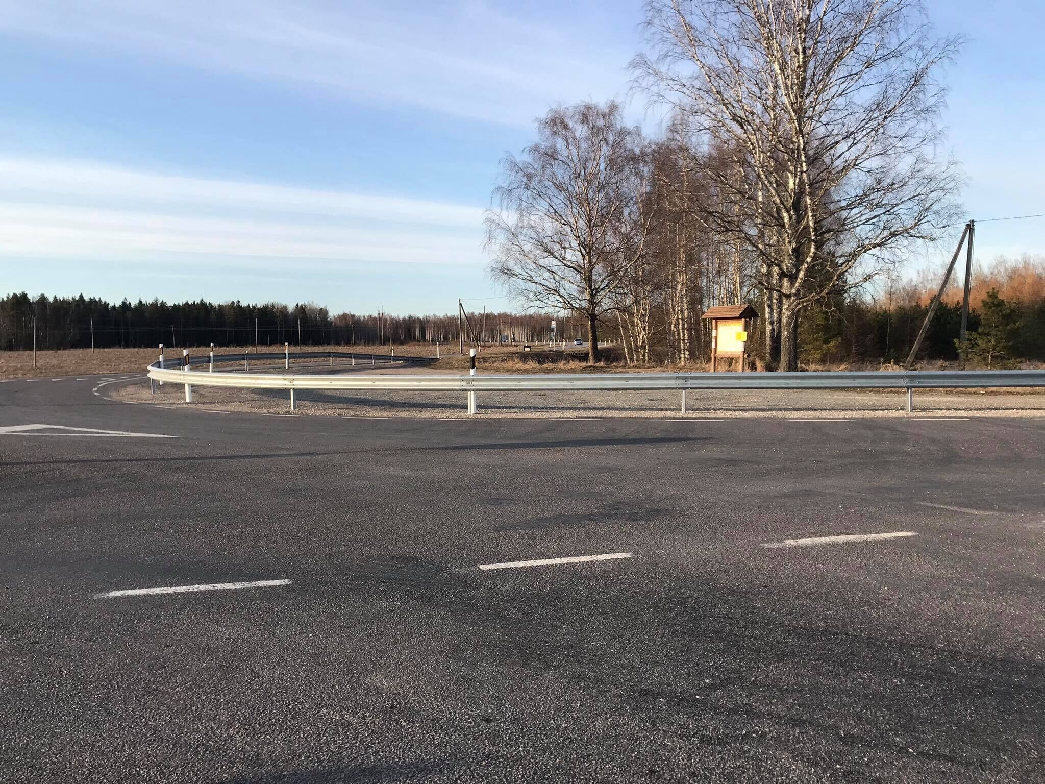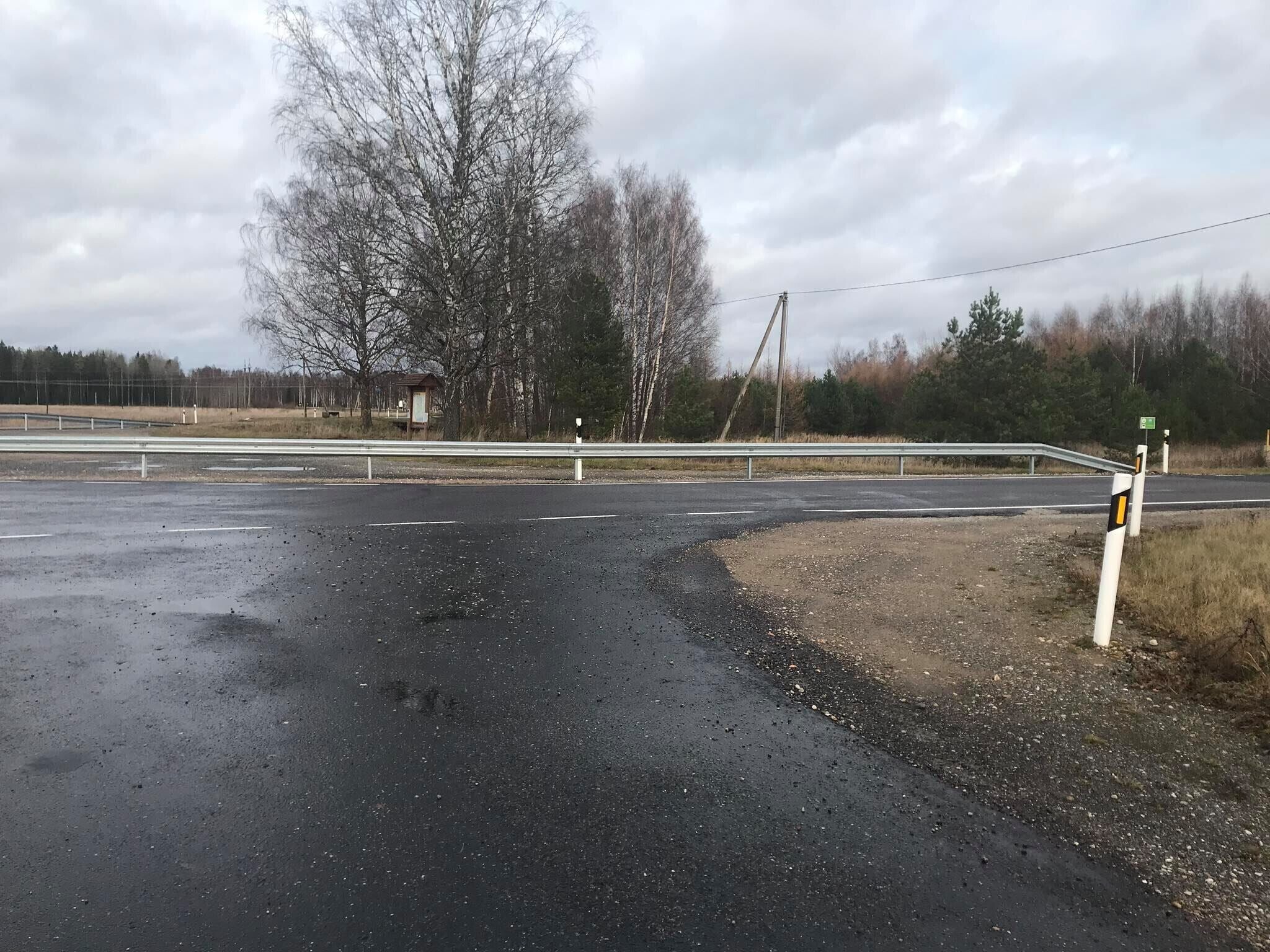Varem oli bussipeatus kohas, mille ette transpordiamet paigaldaski põrkepiirde. Kohaliku külaseltsi arupärimisele vastates põhjendas transpordiamet tõkke paigaldamist sellega, et bussipeatuseäärset kohta kasutas ebaseaduslikult oma müügitegevuseks kalakiosk. Kioskis käinud ostjad tegid maanteele ohtlikke väljasõite. Ohtude minimeerimiseks viidi bussipeatus teise kohta ja paigaldati ristimikule metallpiire.