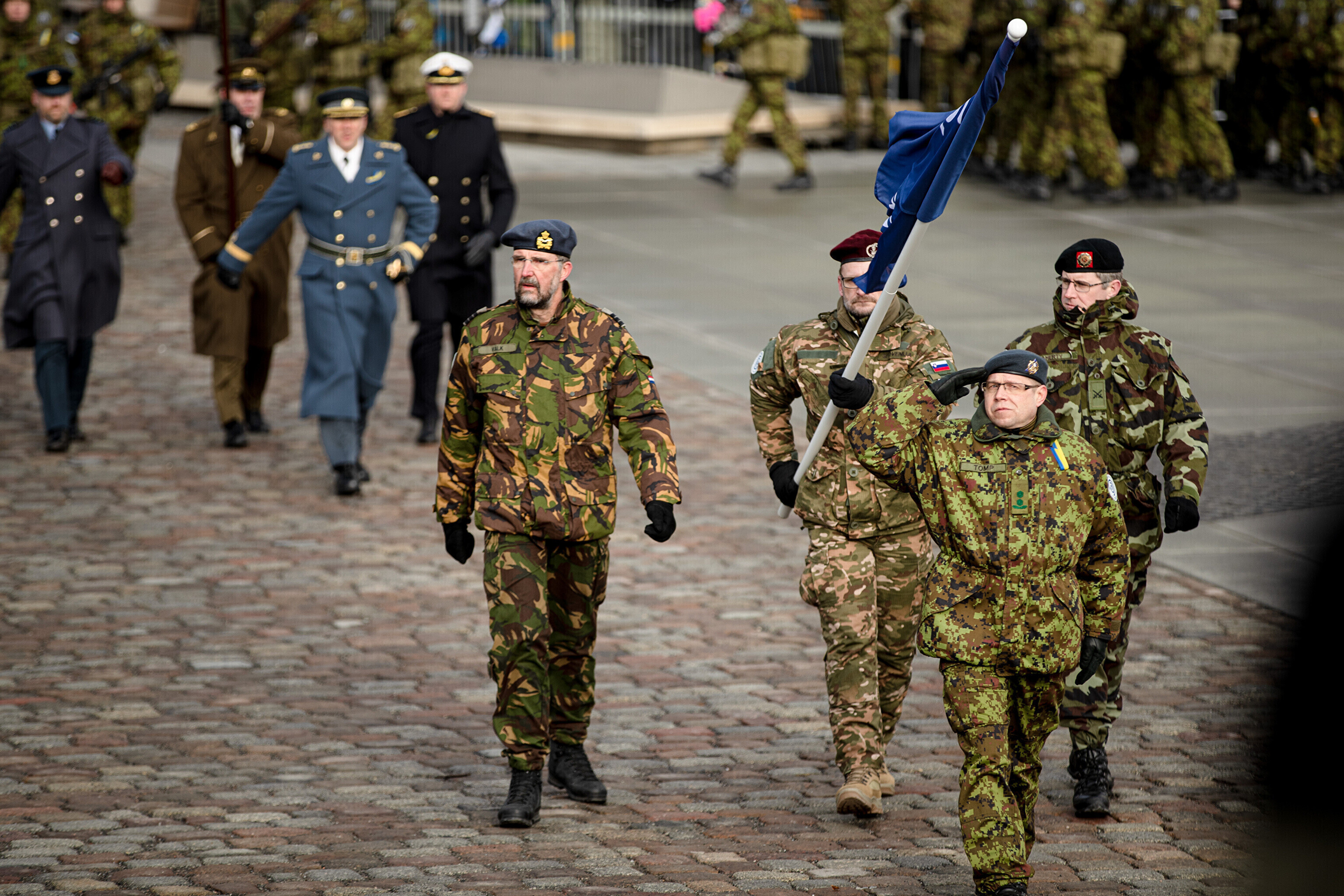 Liitlastest olid paraadil esindatud Belgia Kuningriigi, Suurbritannia ja Põhja-Iiri Ühendkuningriigi liputoimkonnad. Samuti osalevad paraadil NATO Eesti lahingugruppi kuuluvad Suurbritannia ja Põhja-Iiri Ühendkuningriigi ja Prantsusmaa üksused lahingutehnikal. Kooskõlastatult liitlasega nägi paraadil ka Suurbritannia tanki Challenger ja Prantsusmaa tanki Leclerc.