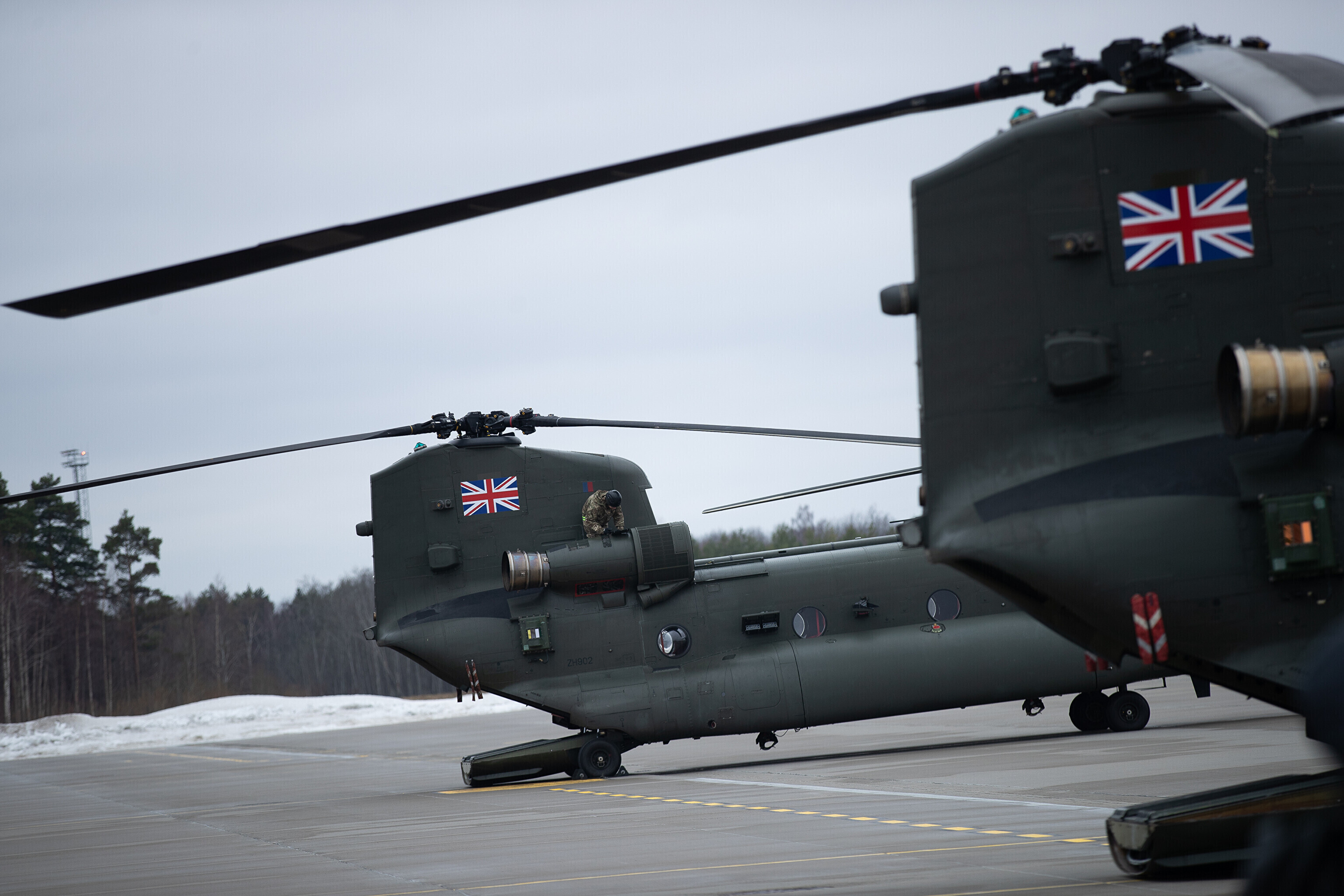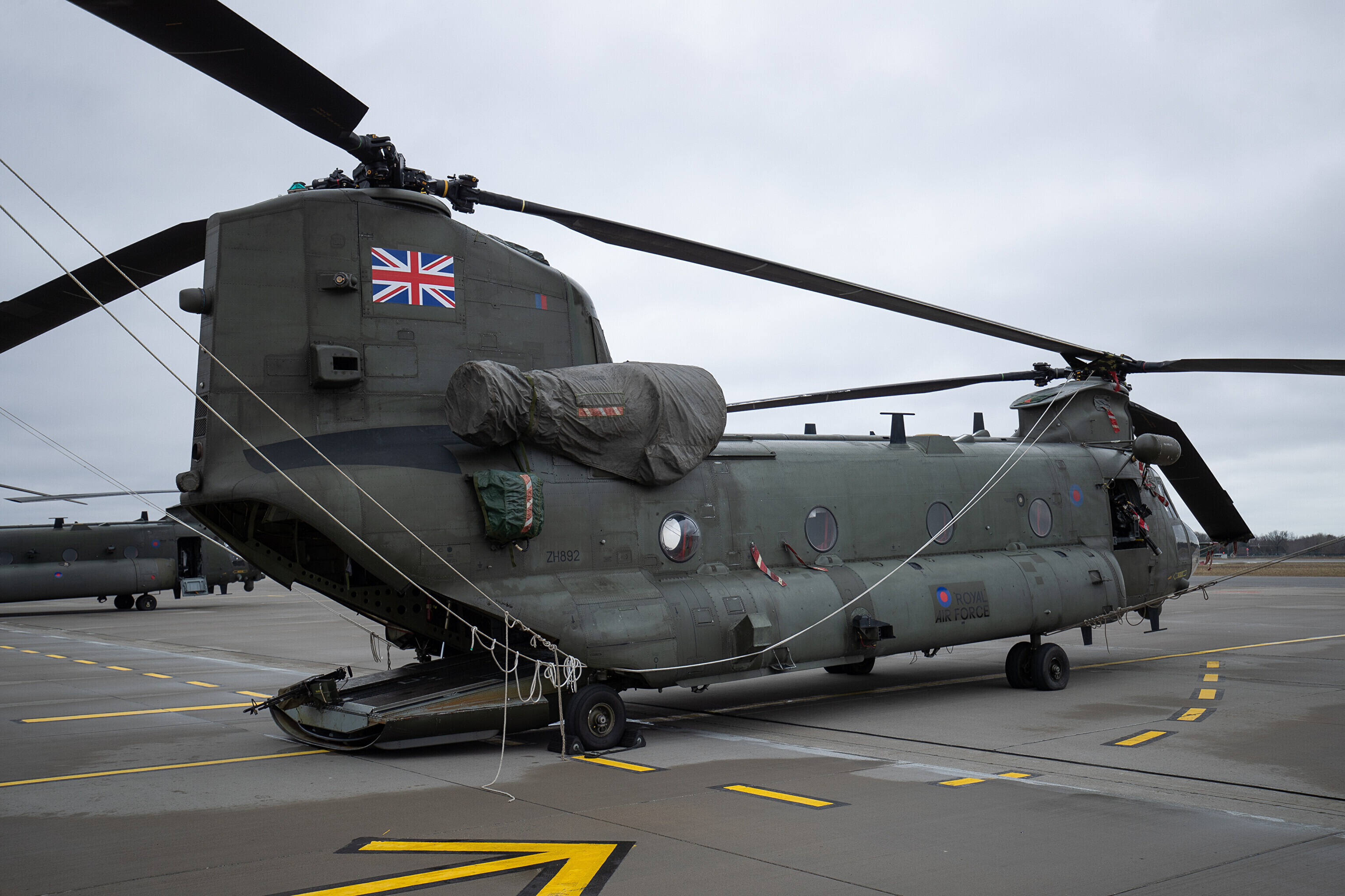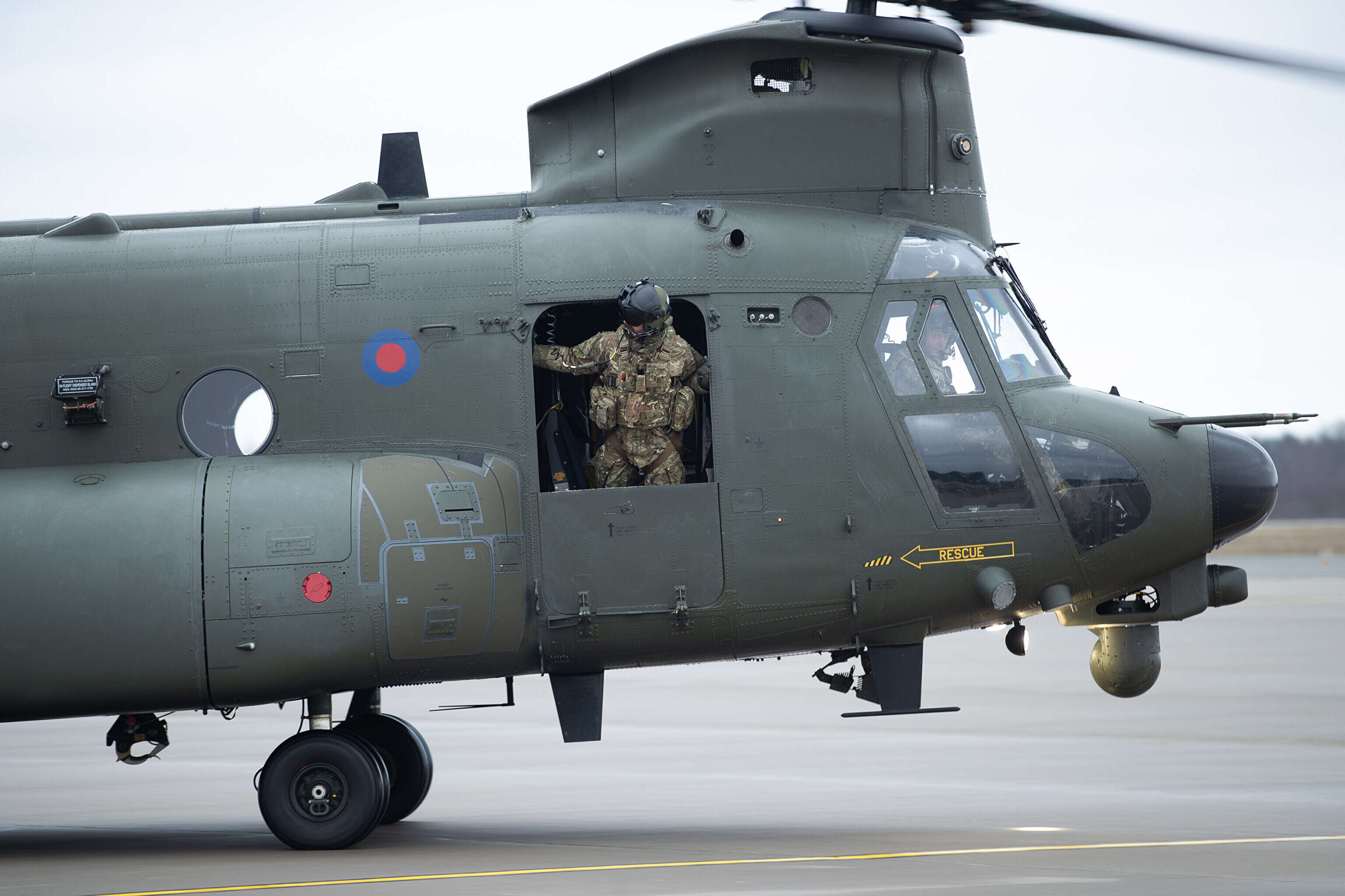 Ühendkuningriigi õhujõud tutvustasid teisipäeval Ämari lennubaasis nädalavahetusel Eestisse saabunud Briti kuningliku õhuväe helikoptereid Chinook.