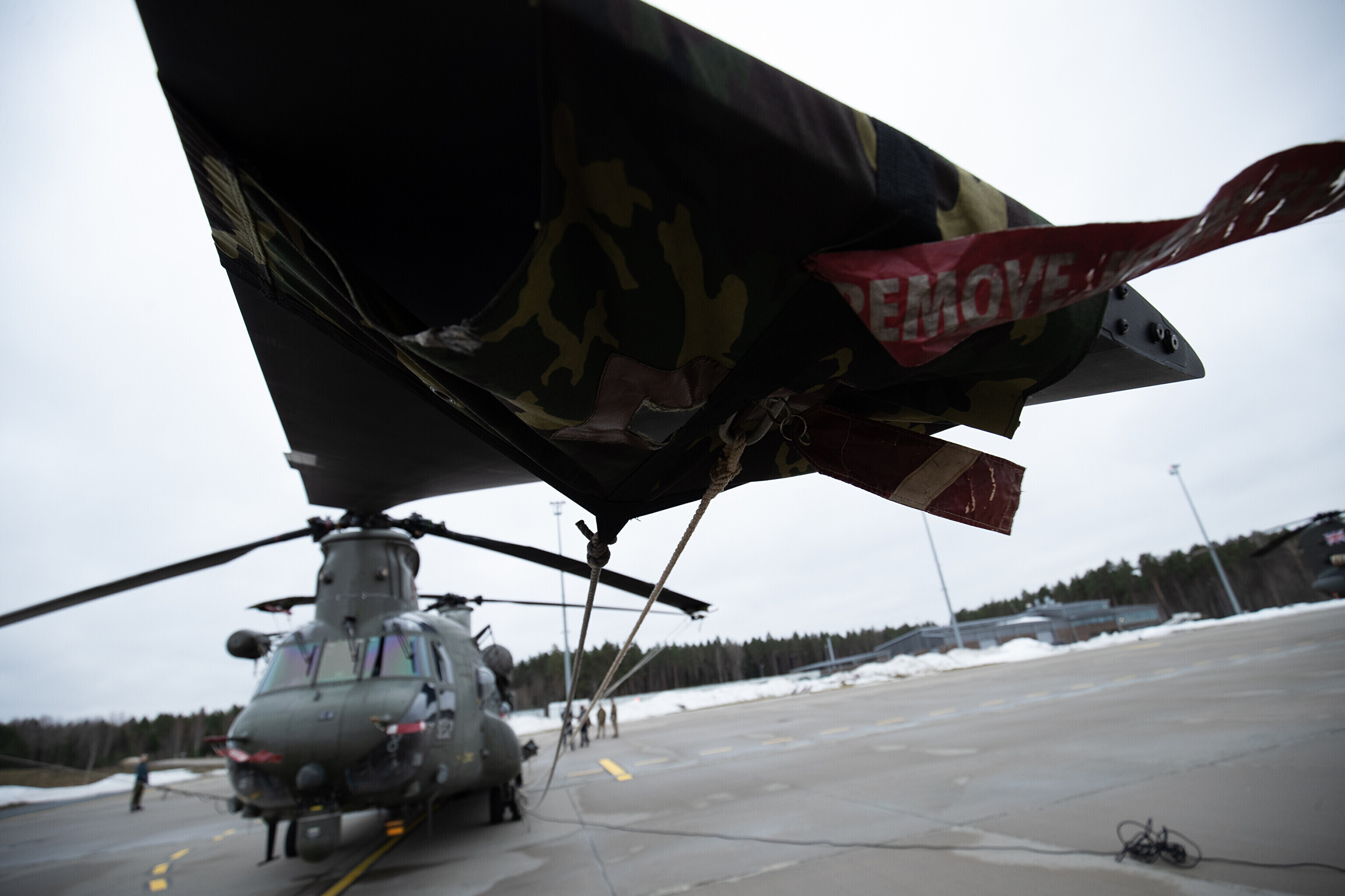 "Oleme siin selleks, et tegutseda koos Eesti kaitseväe ja Euroopa liitlastega. Chinook on väga mitmekülgne lennuvahend, mis pakub tohutut paindlikkust ja võimaldab meil lahinguruumis teisaldada suuri inimhulki ja varustust," ütles Briti 18. eskadrilli komandör Tom Carter.