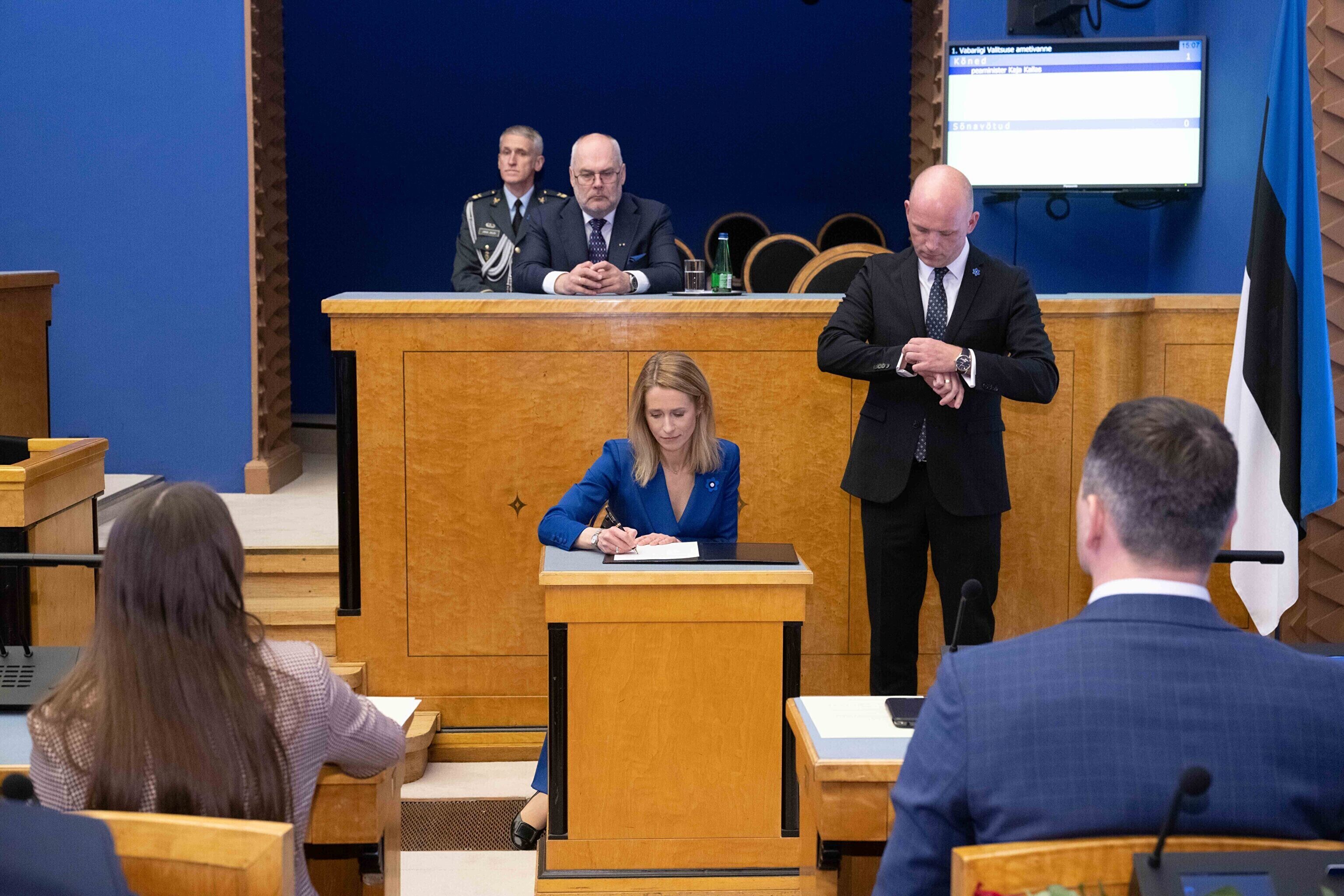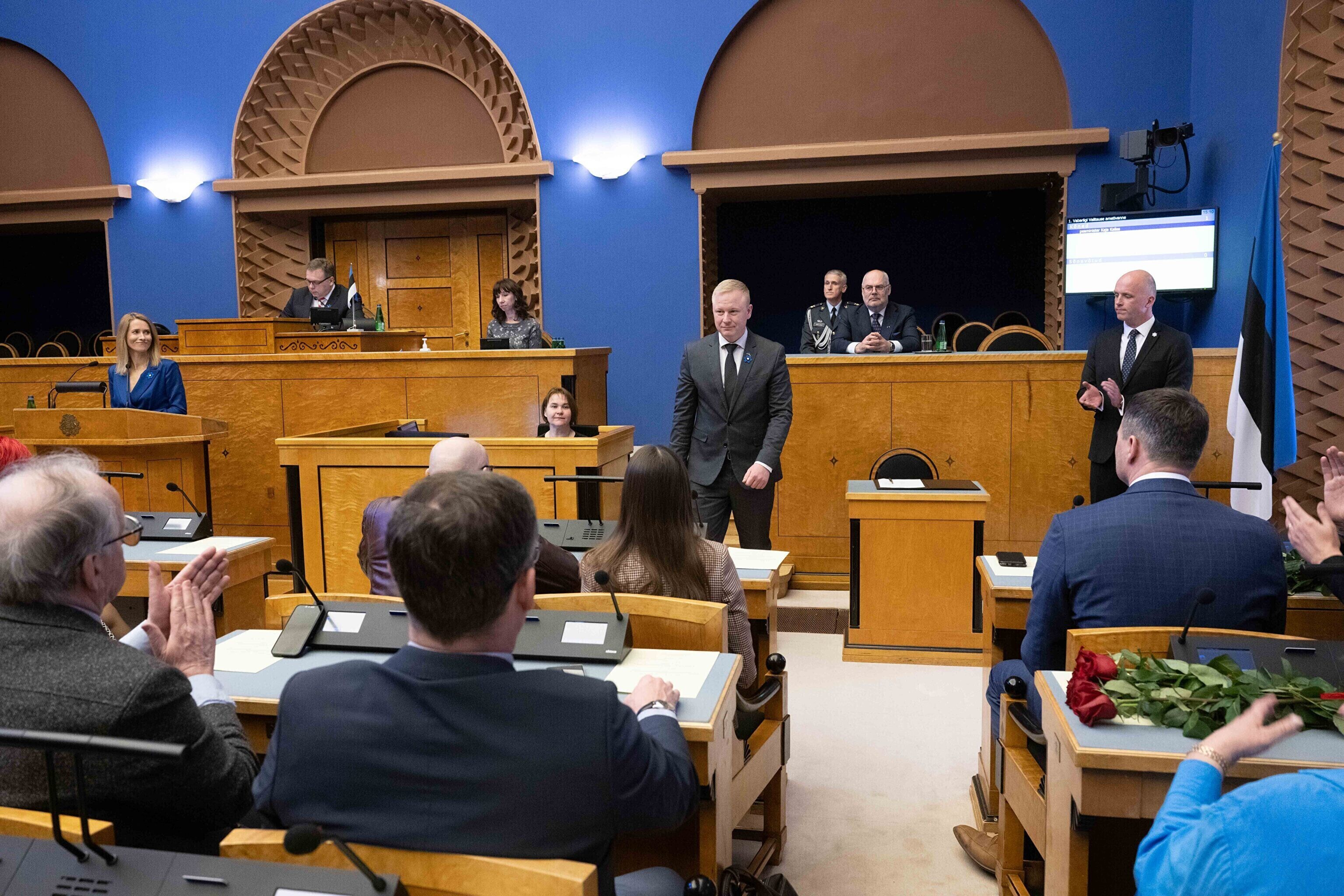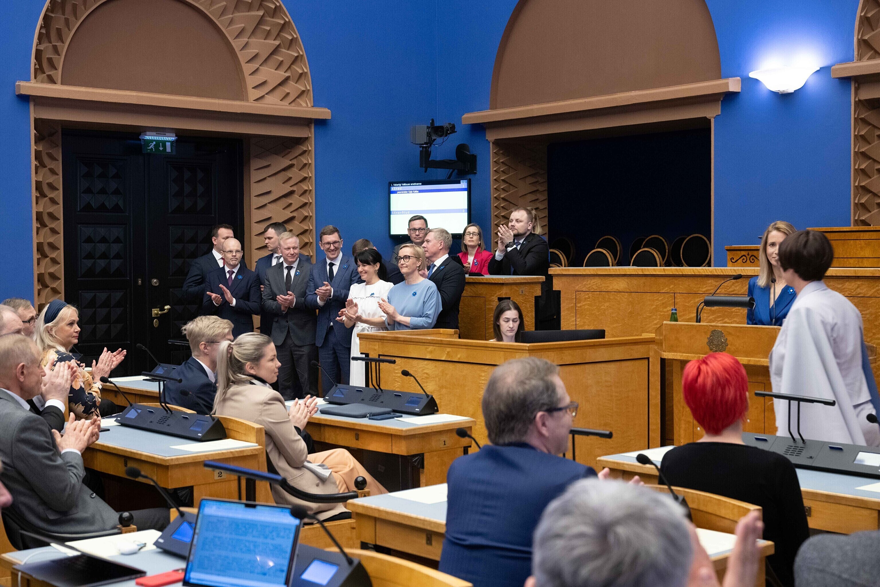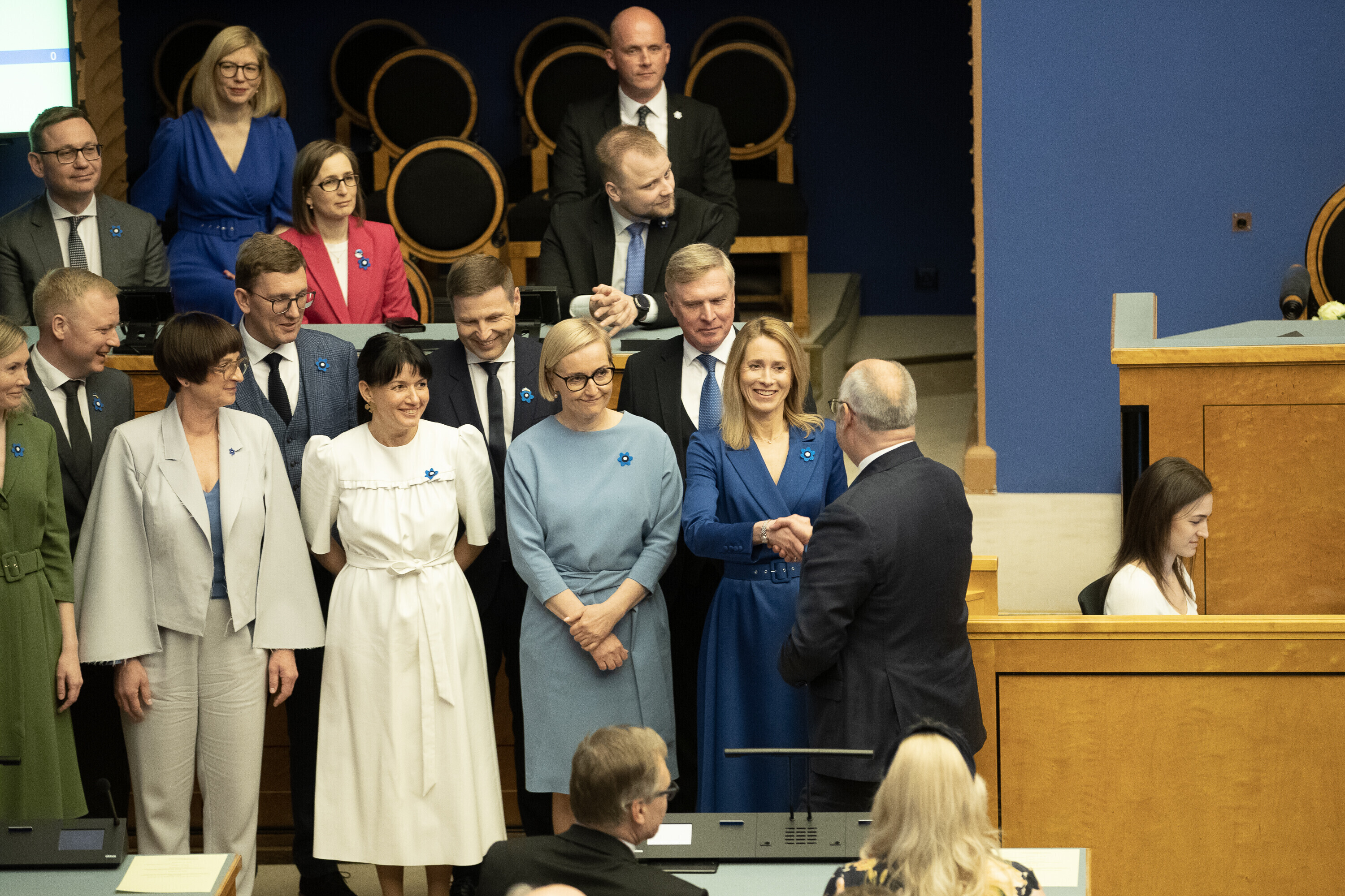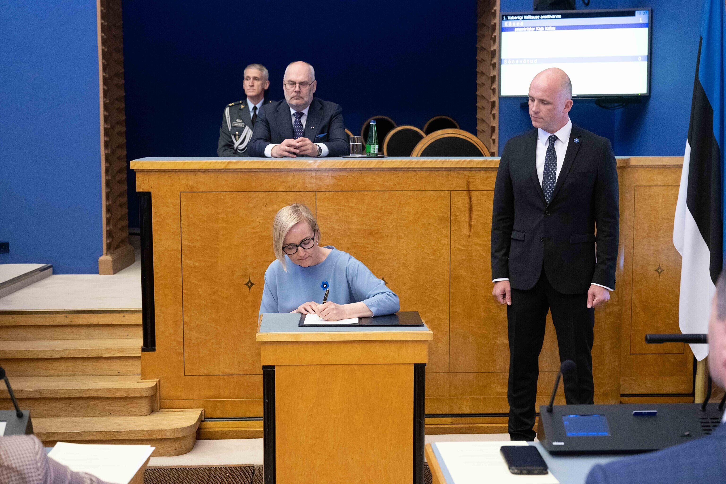 President Alar Karis nimetas esmaspäeval Kadriorus ametisse Reformierakonna, Eesti 200 ja Sotsiaaldemokraatliku Erakonna valitsuse, misjärel andsid peaminister ja ministrid riigikogu ees ametivande.