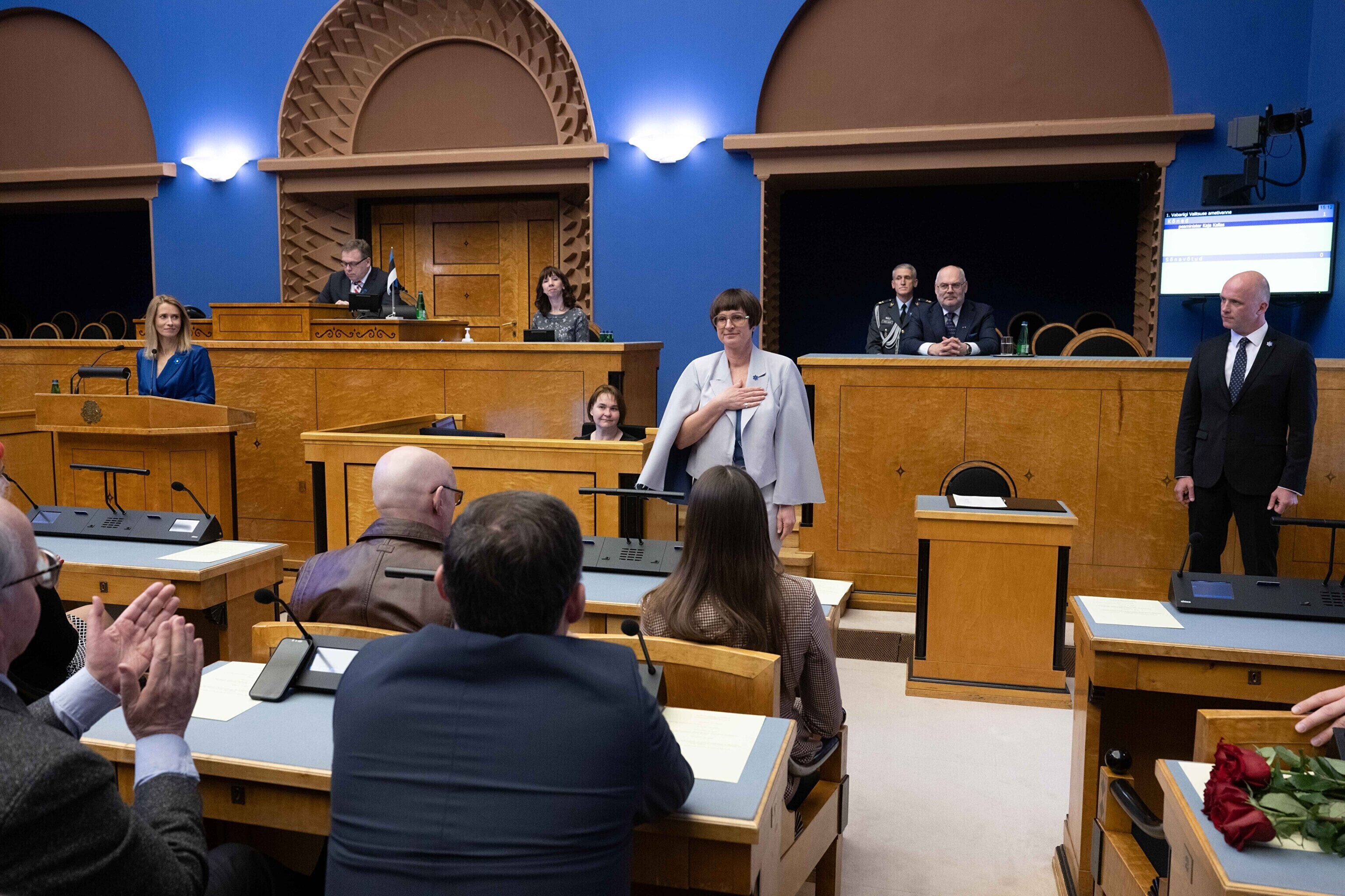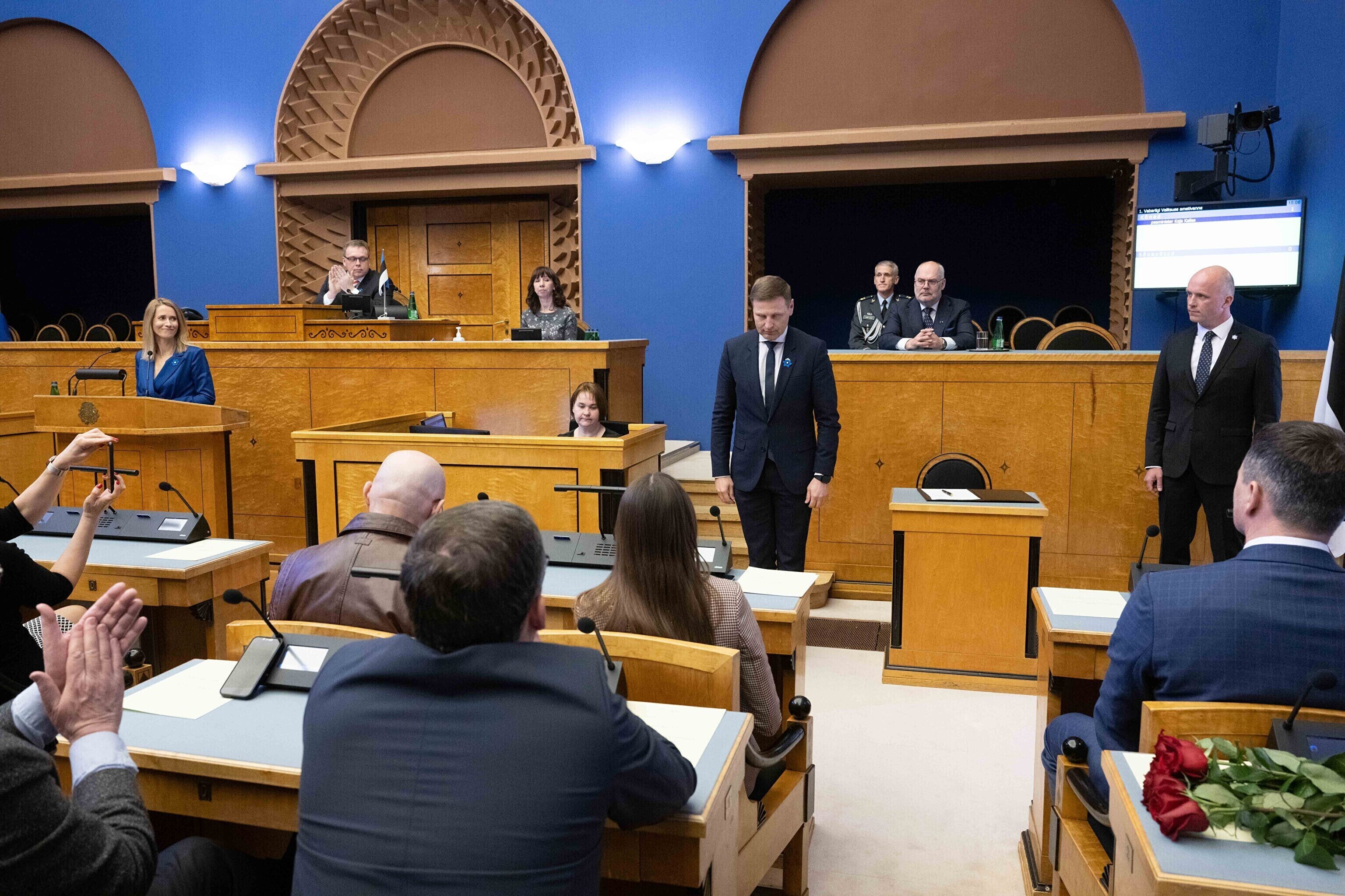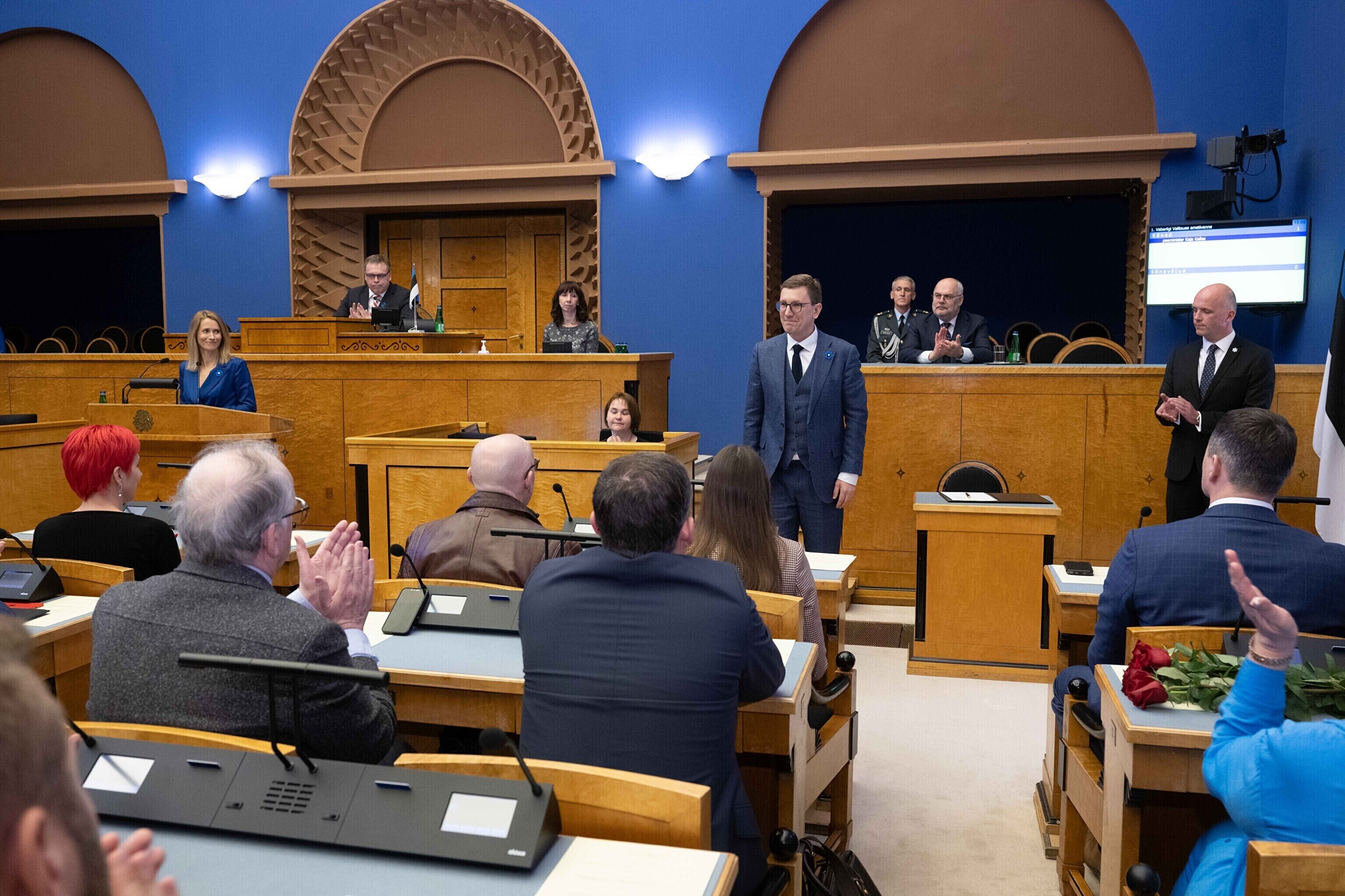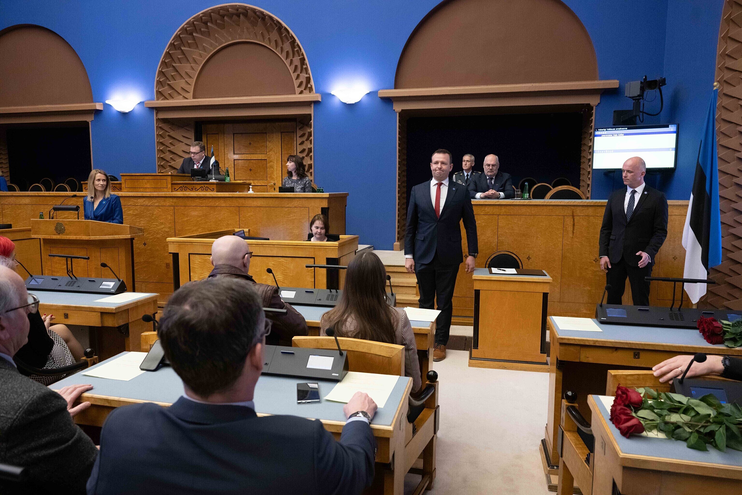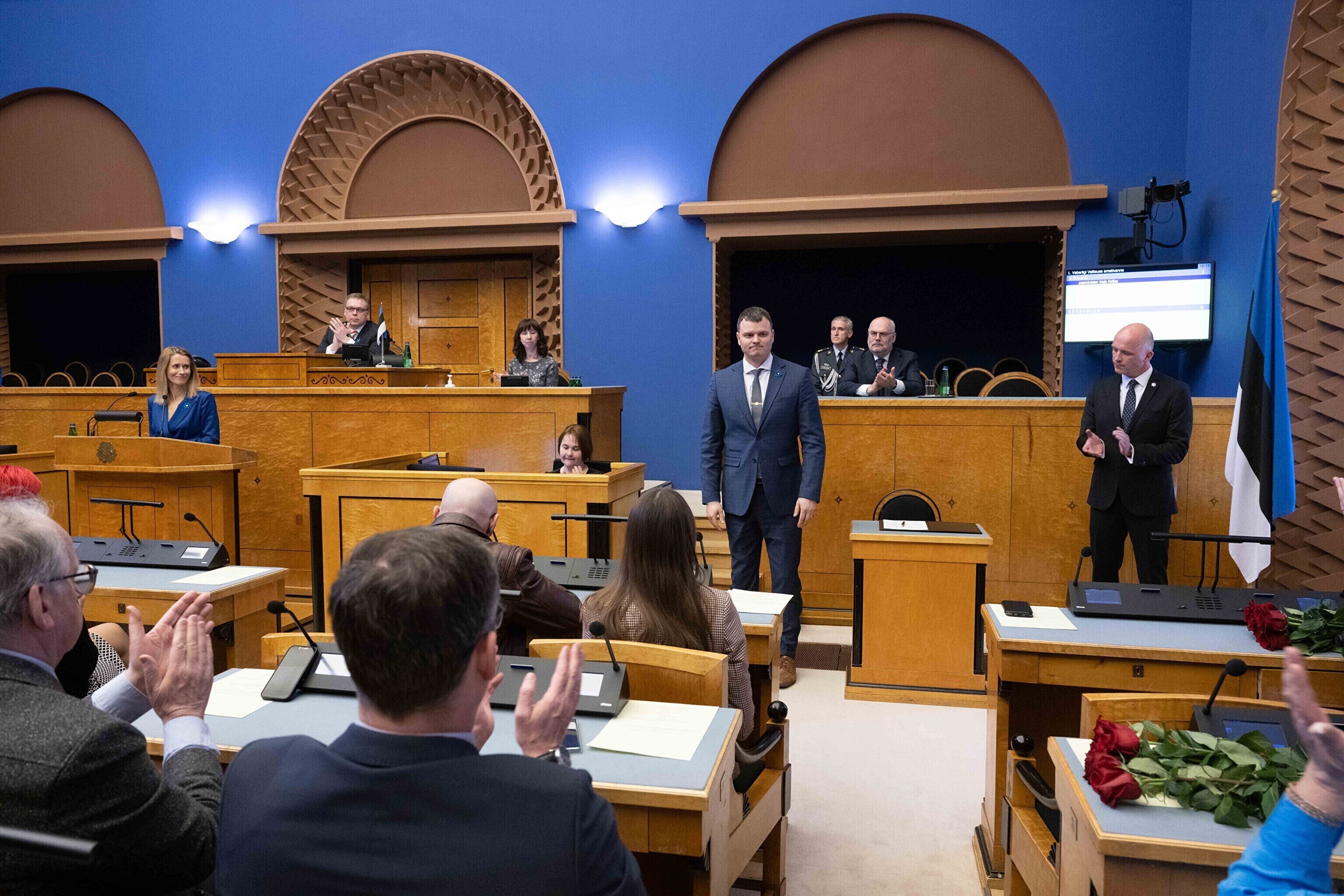 President Alar Karis nimetas esmaspäeval Kadriorus ametisse Reformierakonna, Eesti 200 ja Sotsiaaldemokraatliku Erakonna valitsuse, misjärel andsid peaminister ja ministrid riigikogu ees ametivande.