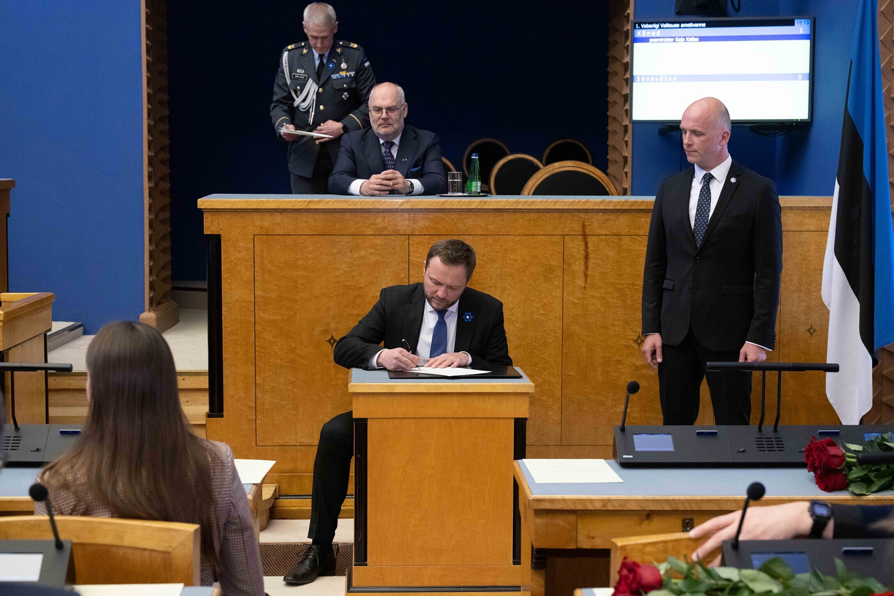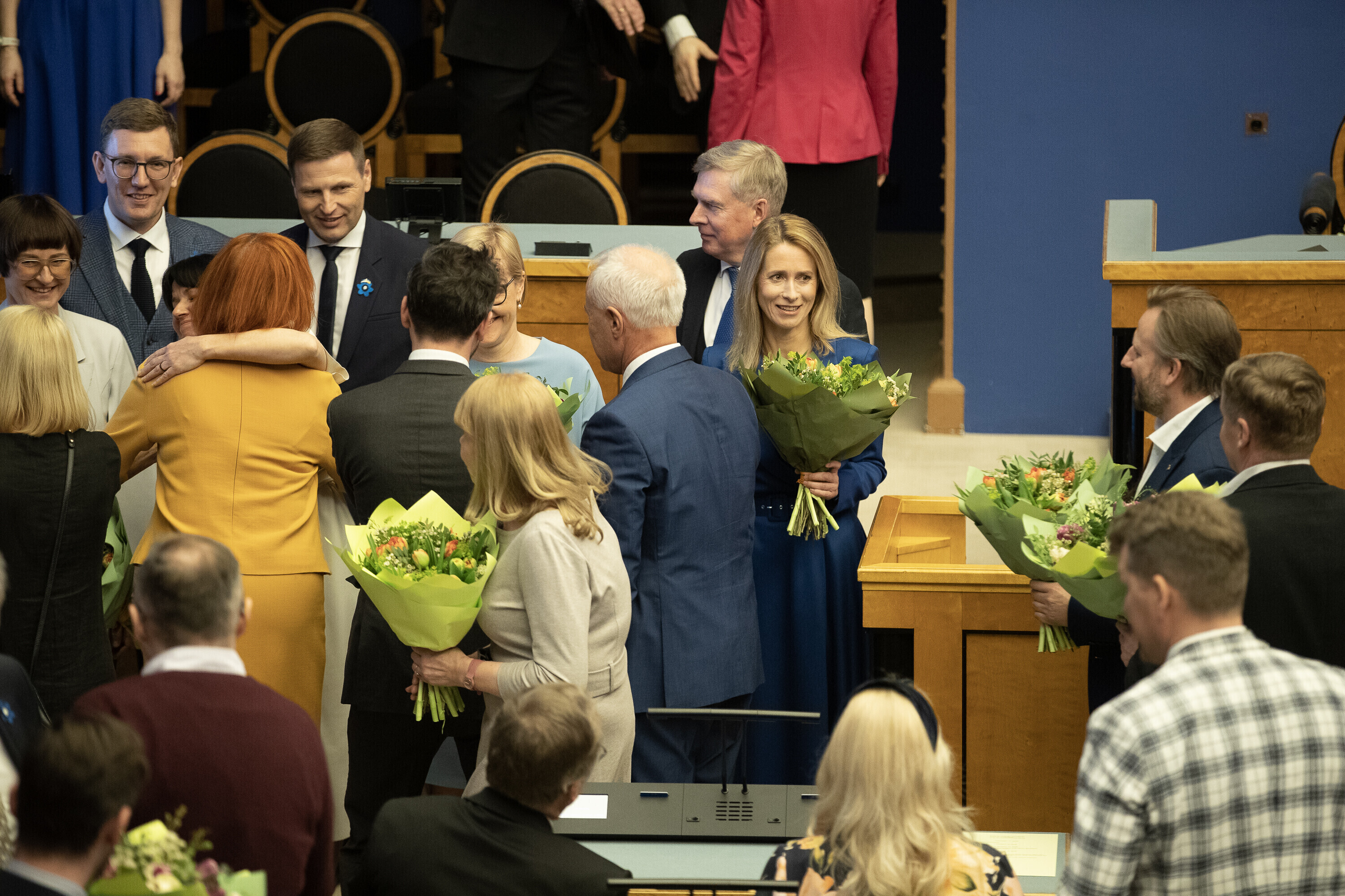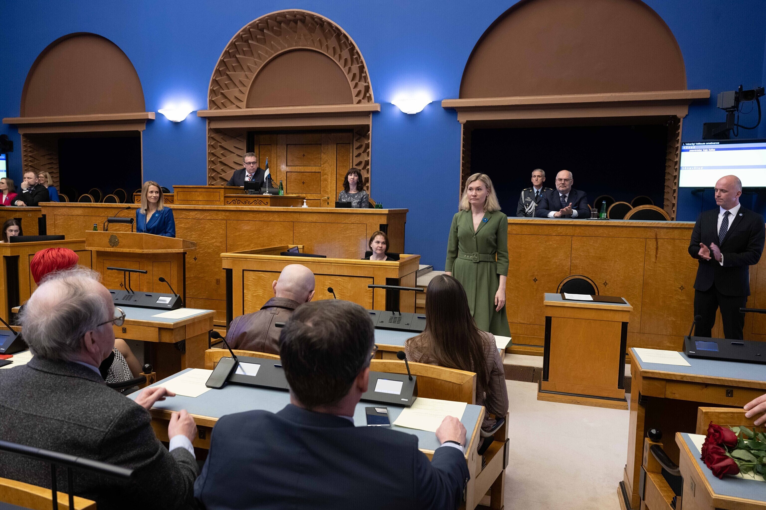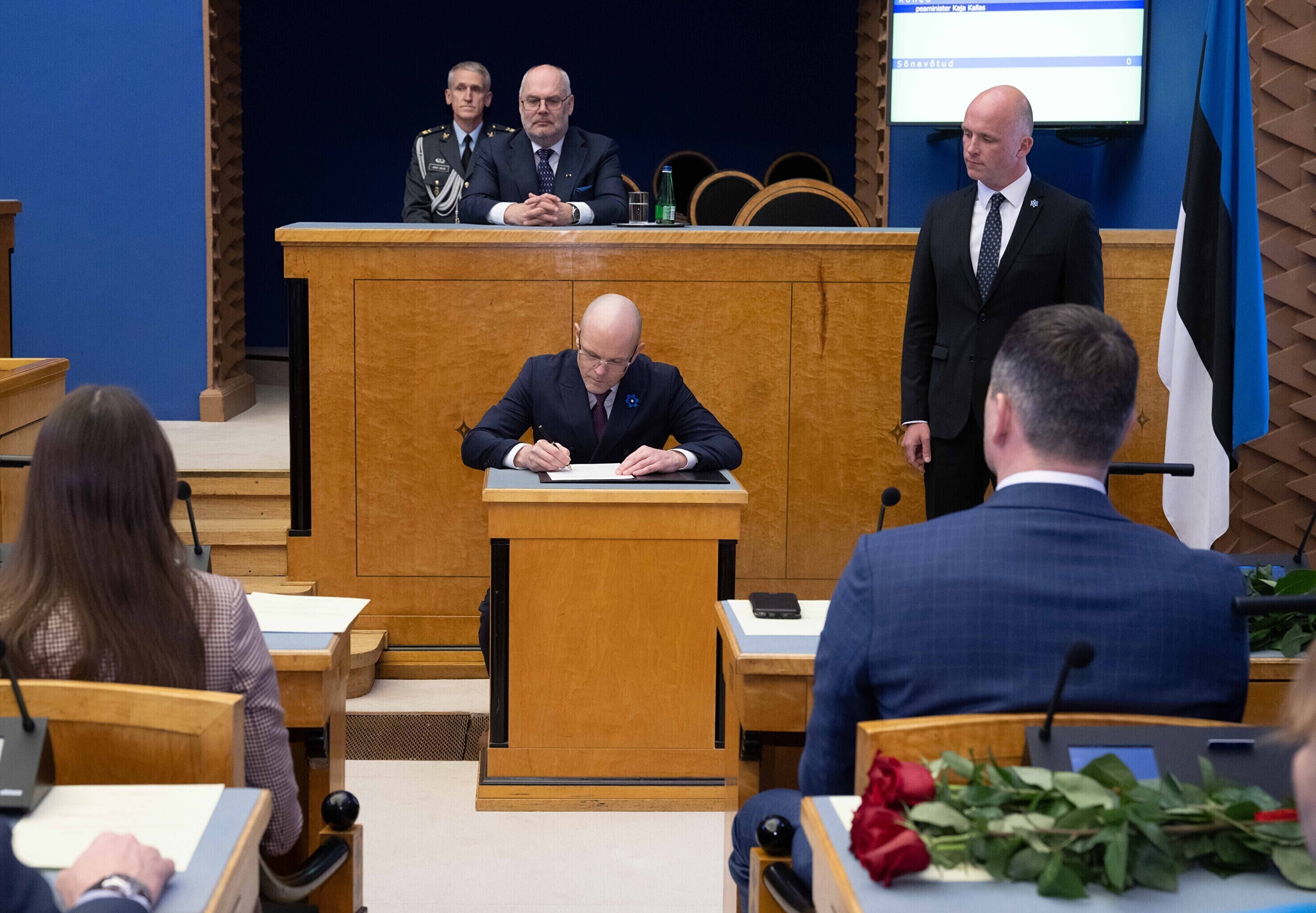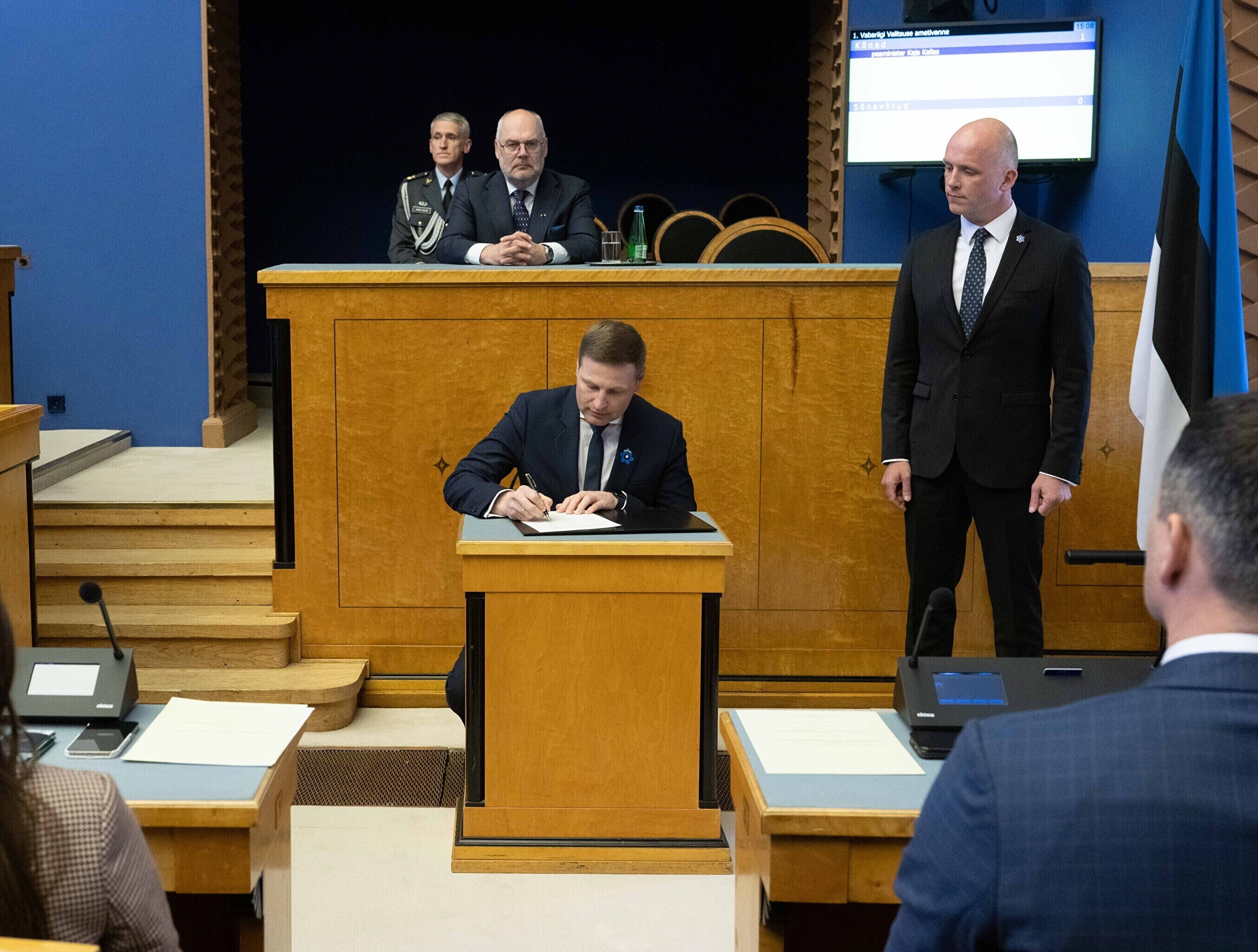 President Alar Karis nimetas esmaspäeval Kadriorus ametisse Reformierakonna, Eesti 200 ja Sotsiaaldemokraatliku Erakonna valitsuse, misjärel andsid peaminister ja ministrid riigikogu ees ametivande.