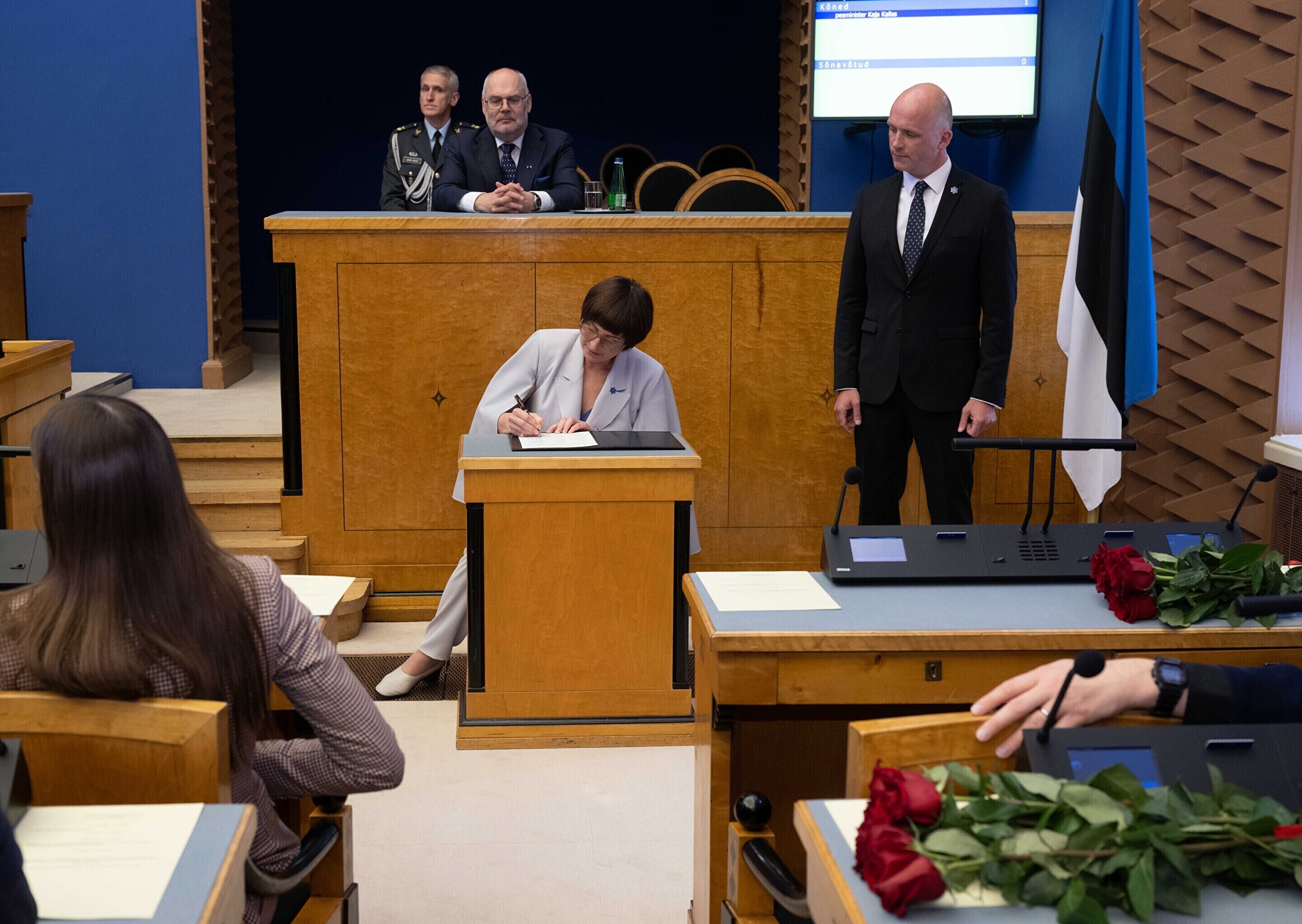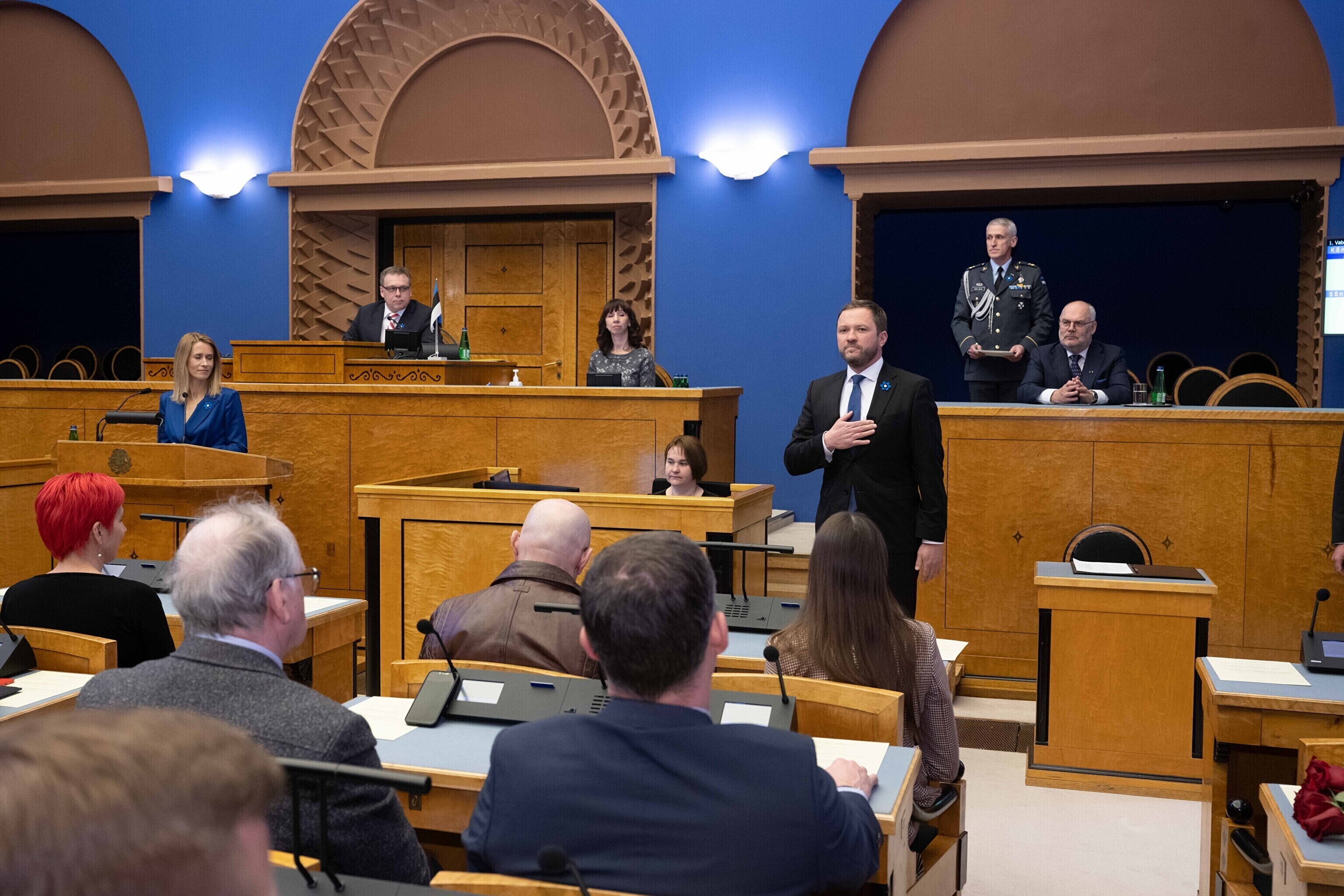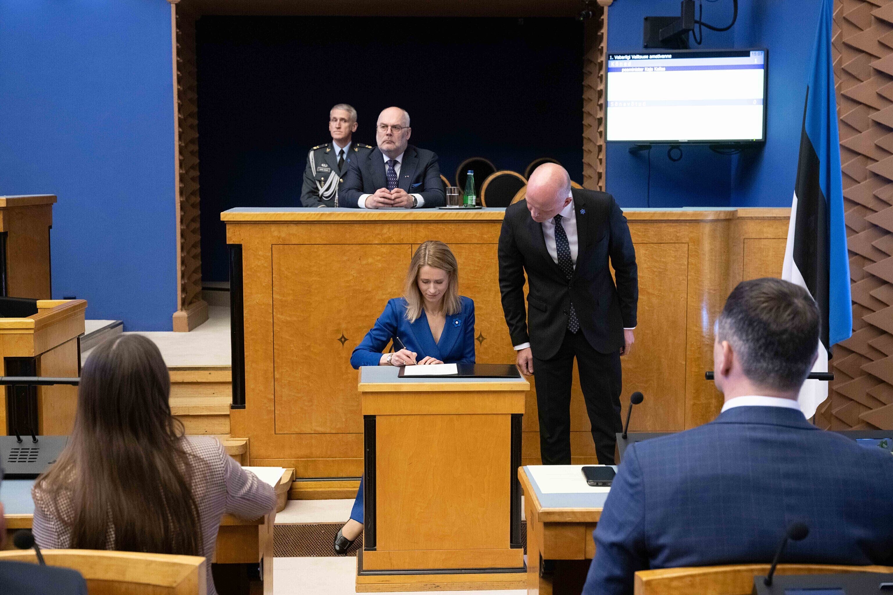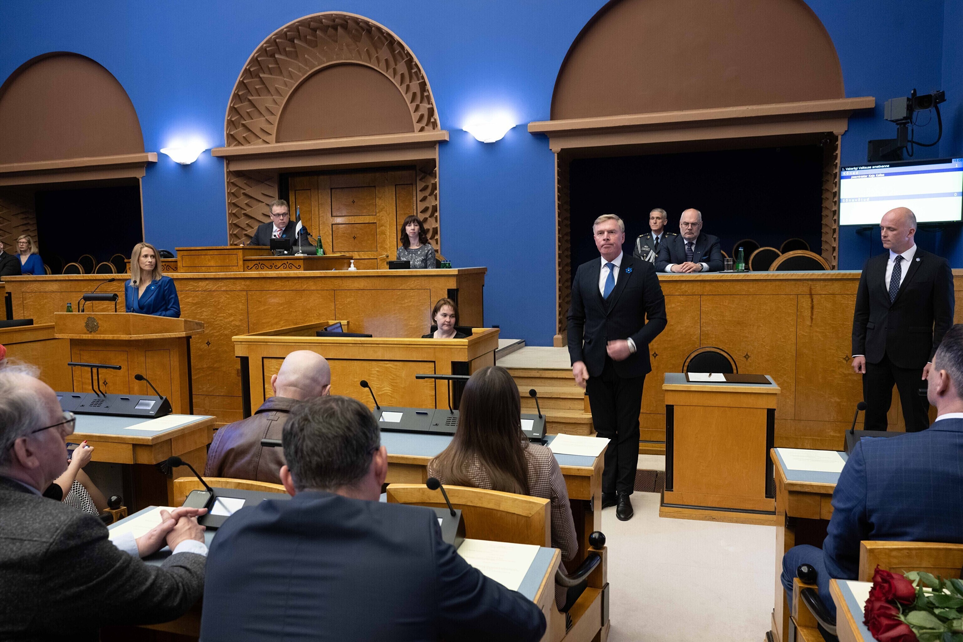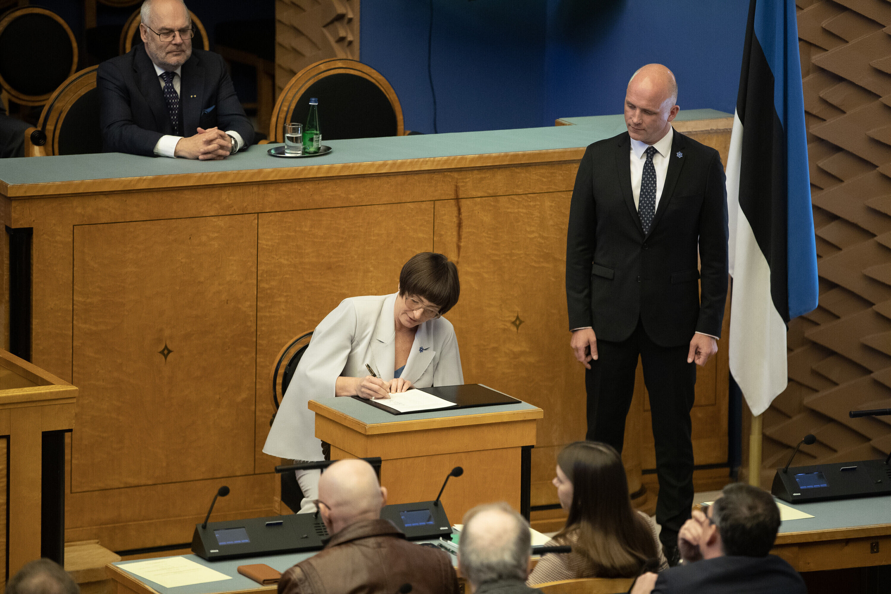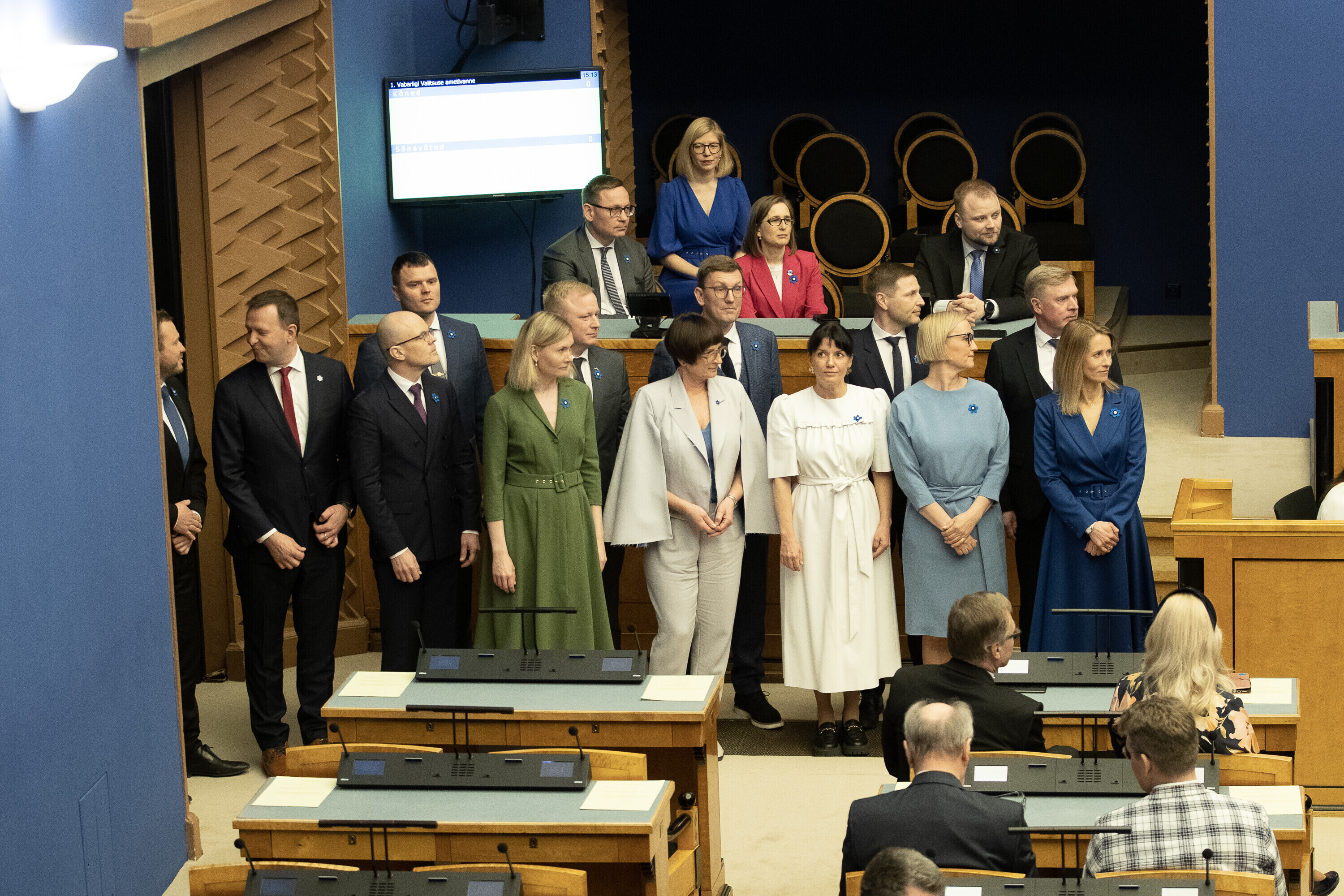 President Alar Karis nimetas esmaspäeval Kadriorus ametisse Reformierakonna, Eesti 200 ja Sotsiaaldemokraatliku Erakonna valitsuse, misjärel andsid peaminister ja ministrid riigikogu ees ametivande.
