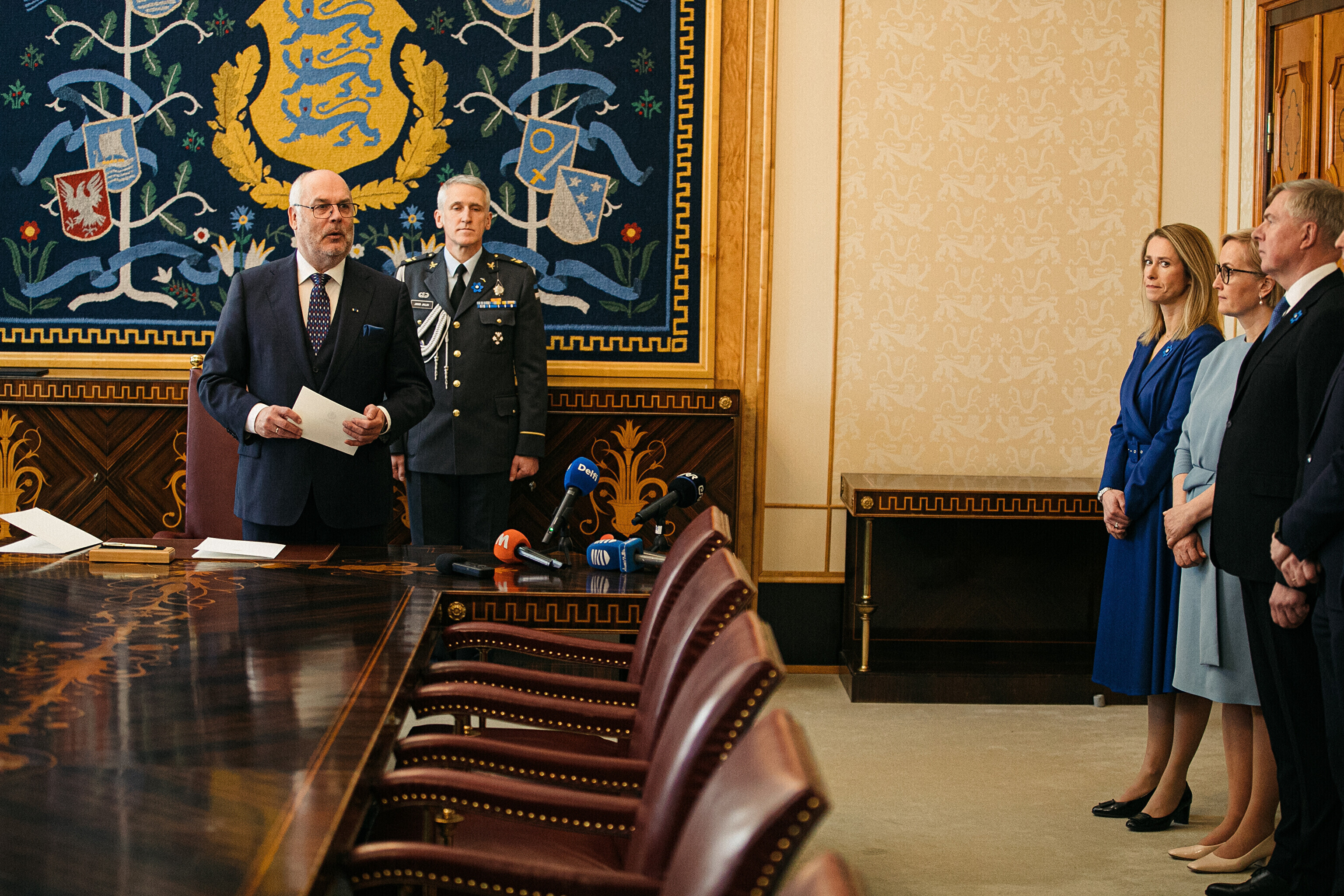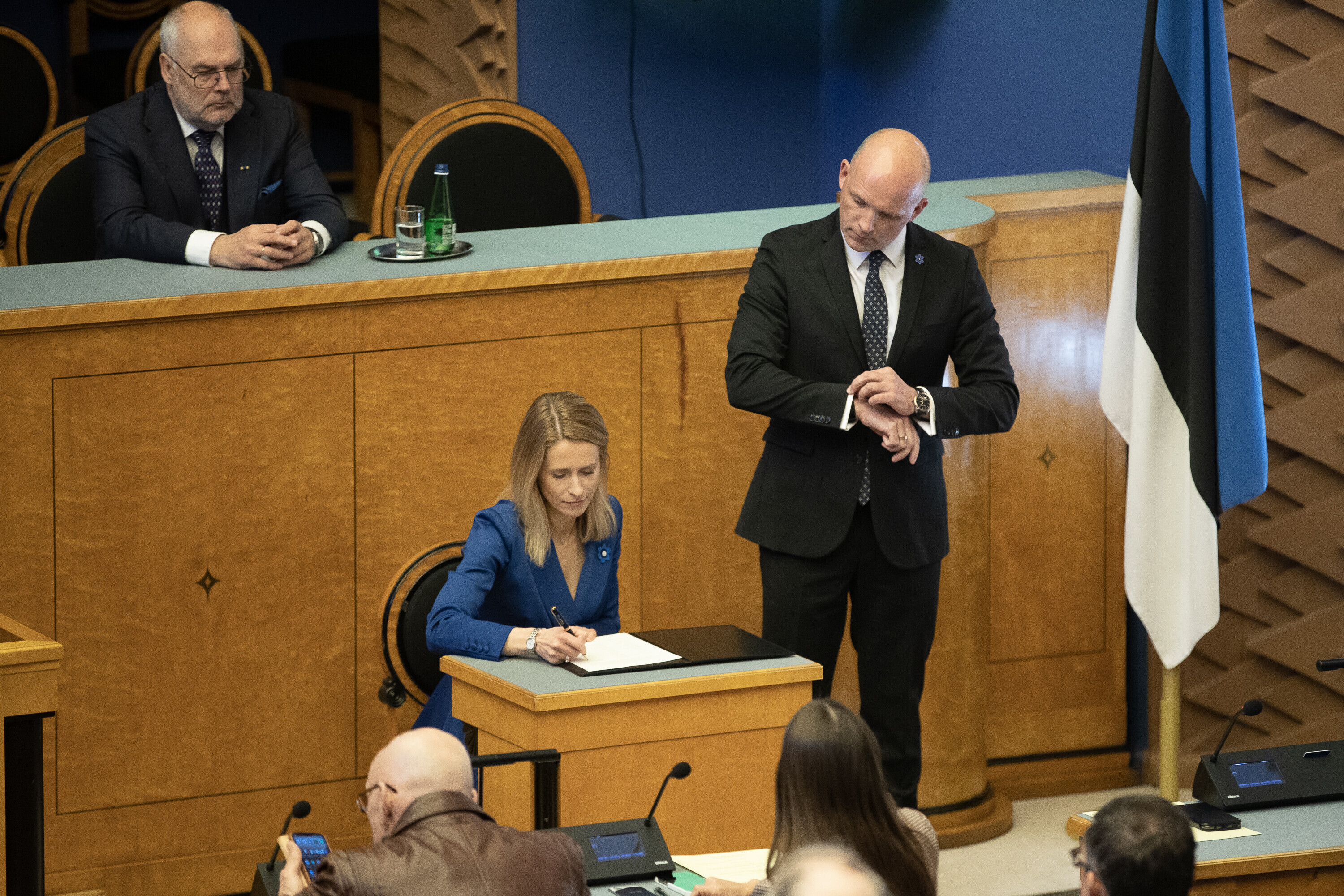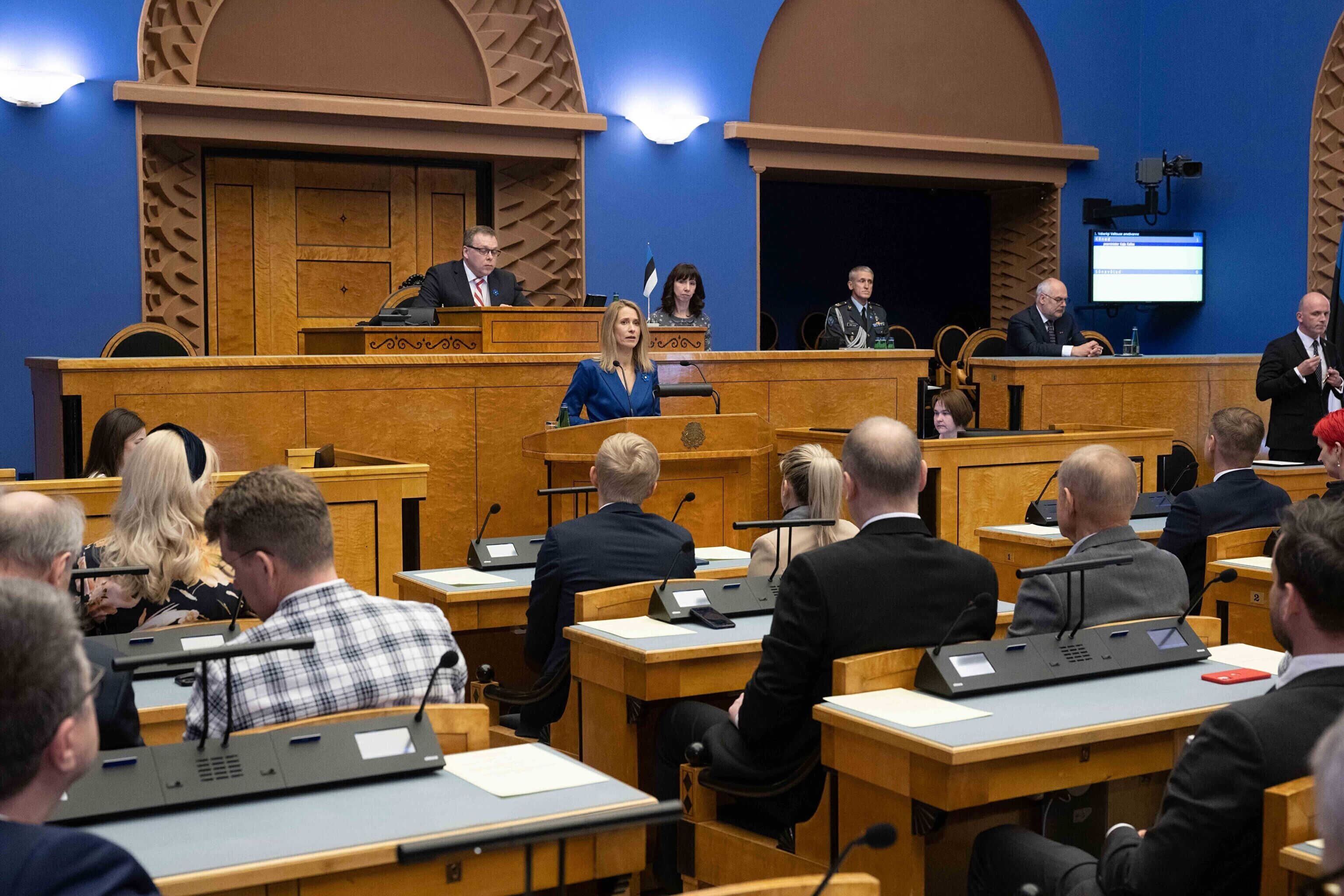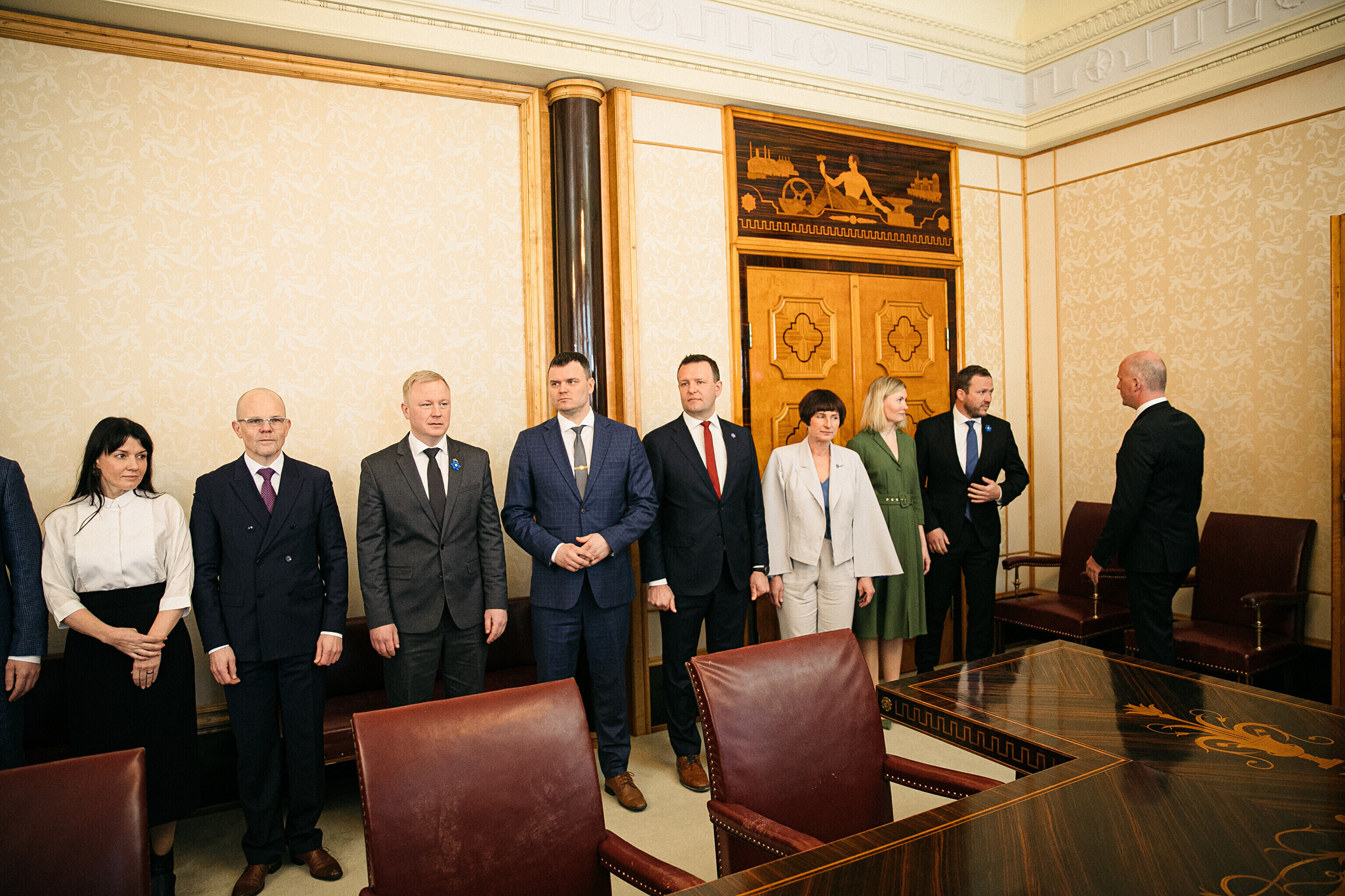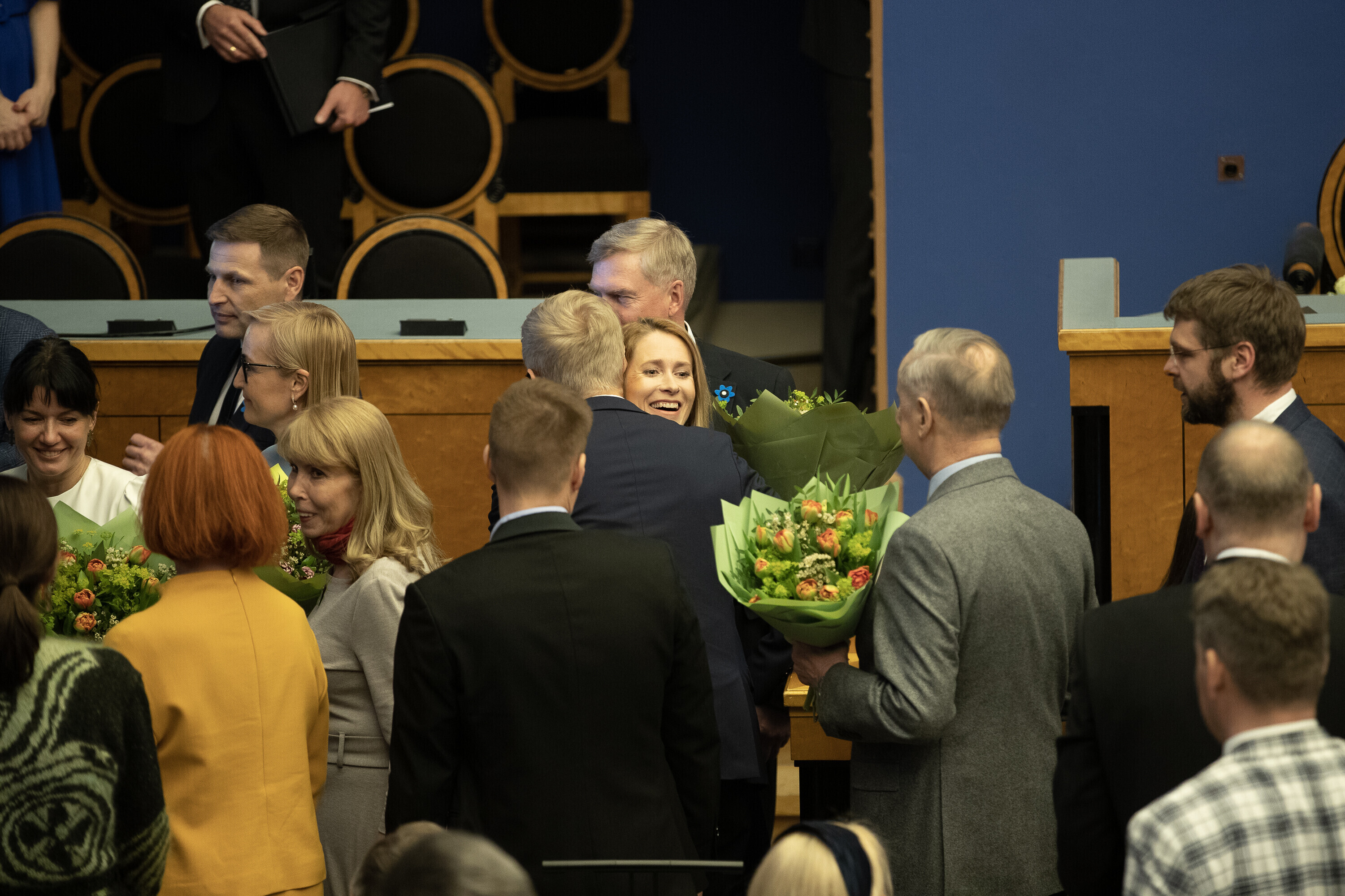 President Alar Karis nimetas esmaspäeval Kadriorus ametisse Reformierakonna, Eesti 200 ja Sotsiaaldemokraatliku Erakonna valitsuse, misjärel andsid peaminister ja ministrid riigikogu ees ametivande.