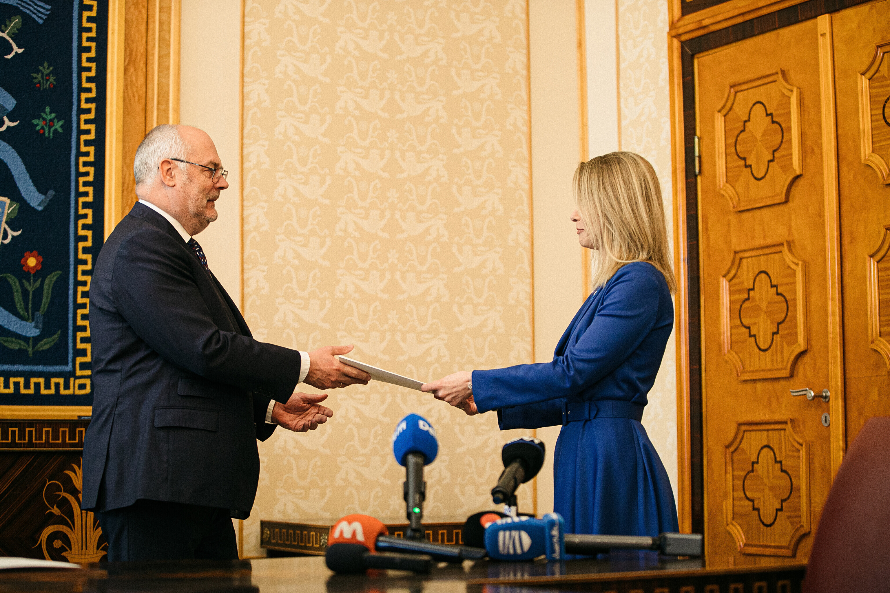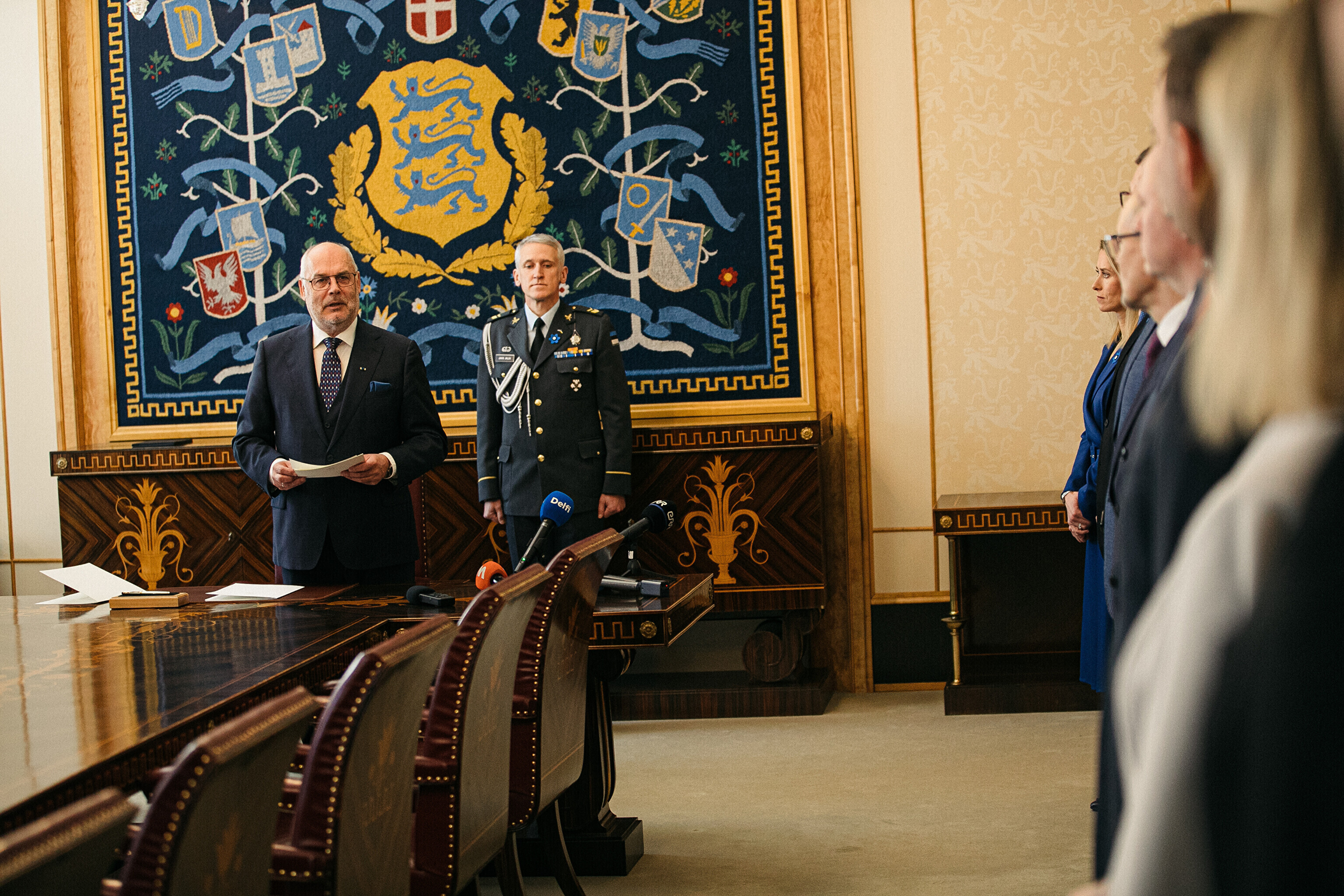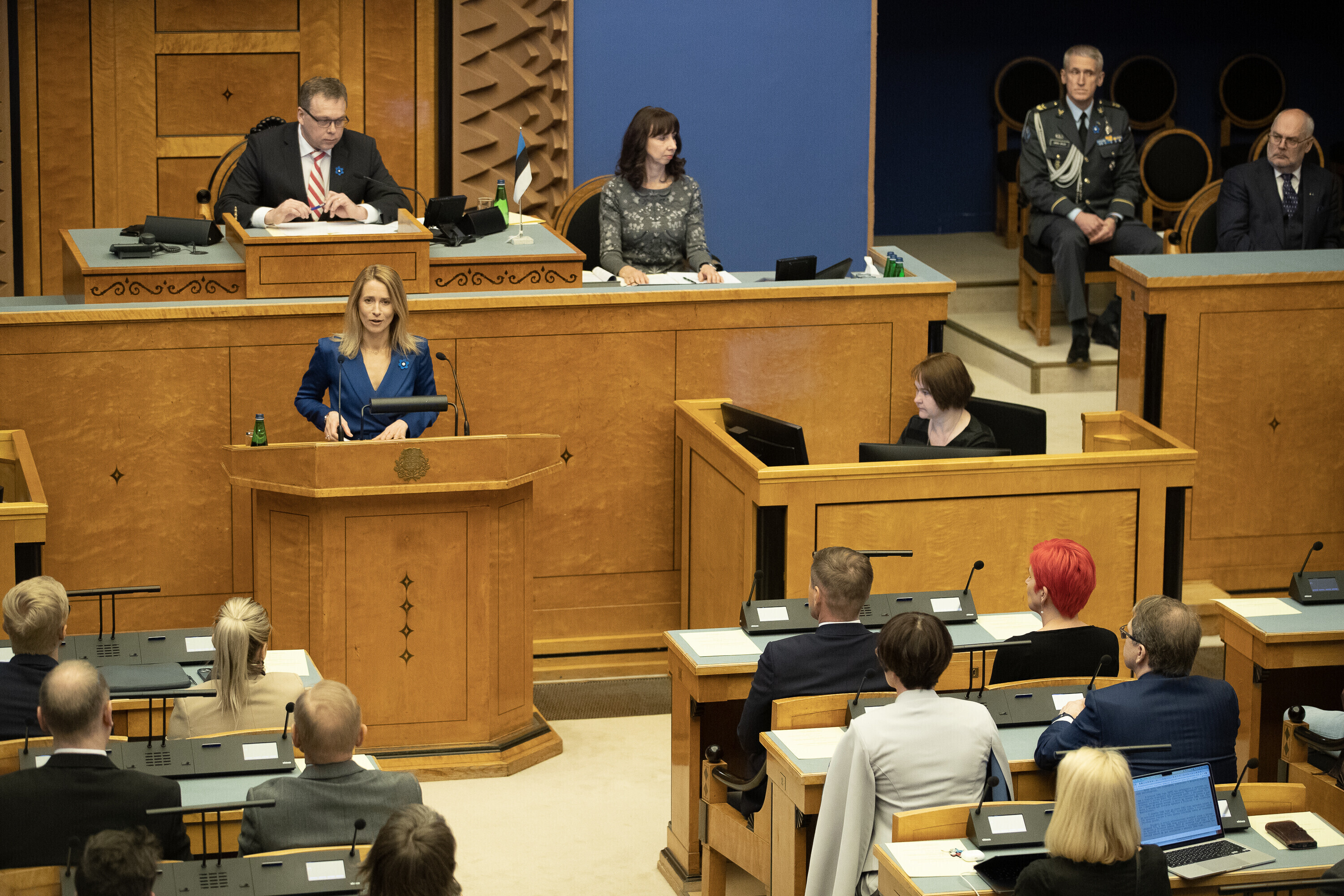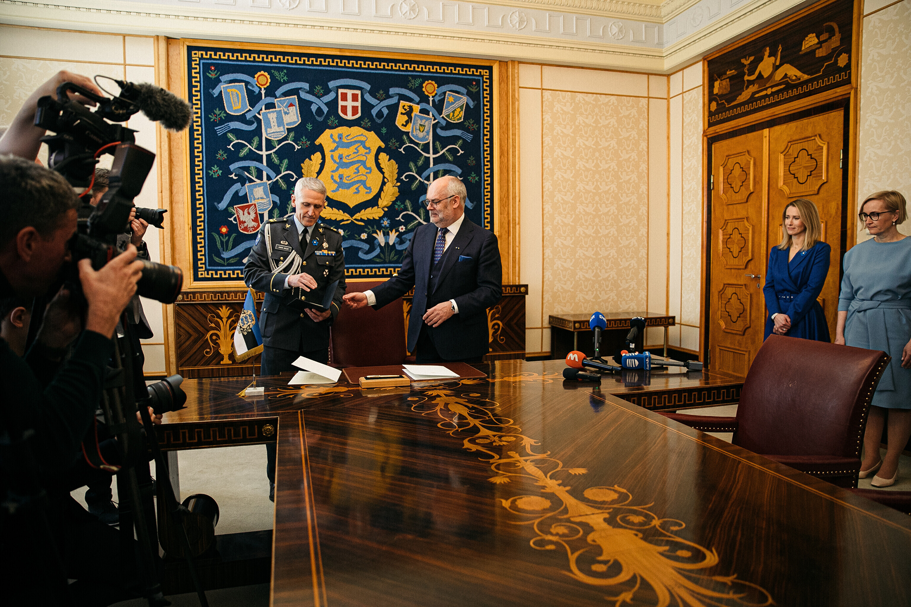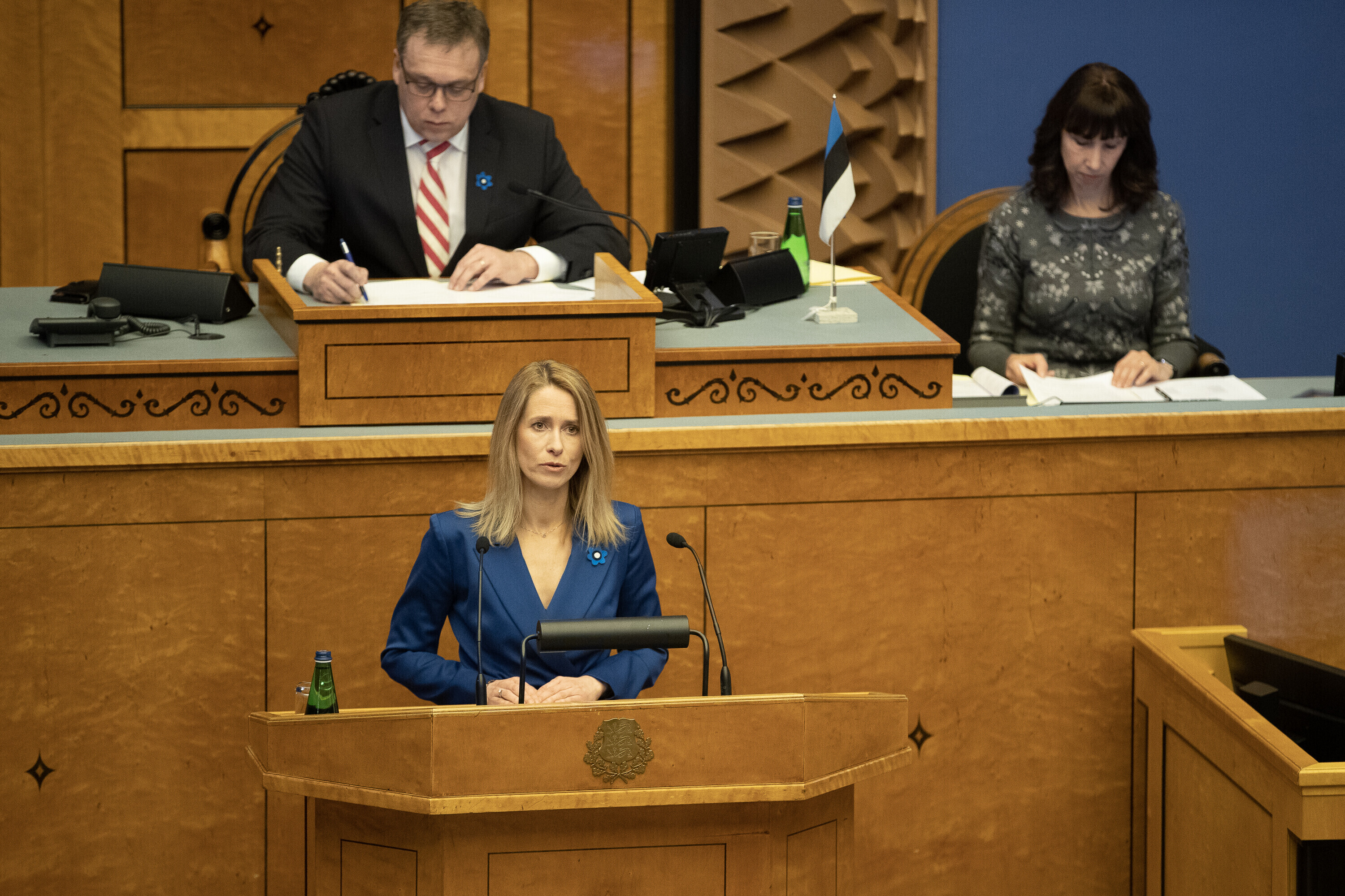 President Alar Karis nimetas esmaspäeval Kadriorus ametisse Reformierakonna, Eesti 200 ja Sotsiaaldemokraatliku Erakonna valitsuse, misjärel andsid peaminister ja ministrid riigikogu ees ametivande.