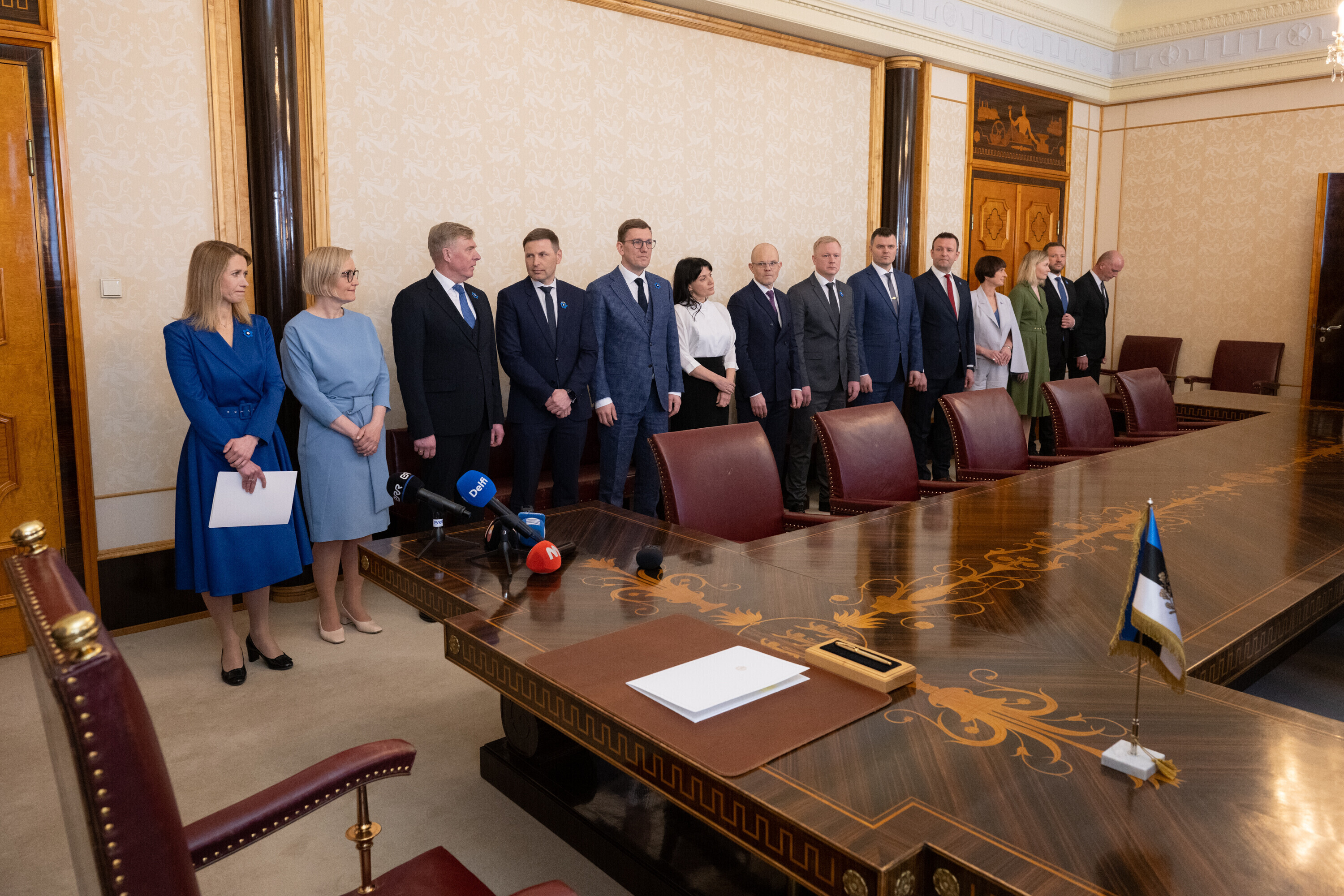 Uue valitsuse liikmed: peaminister Kaja Kallas, sotsiaalkaitseminister Signe Riisalo, justiitsminister Kalle Laanet, rahandusminister Mart Võrklaev, kaitseminister Hanno Pevkur, kultuuriminister Heidy Purga, kliimaminister Kristen Michal, välisminister Margus Tsahkna, IT- ja majandusminister Tiit Riisalo, haridusminister Kristina Kallas, siseminister Lauri Läänemets, terviseminister Riina Sikkut ja regionaalminister Madis Kallas.