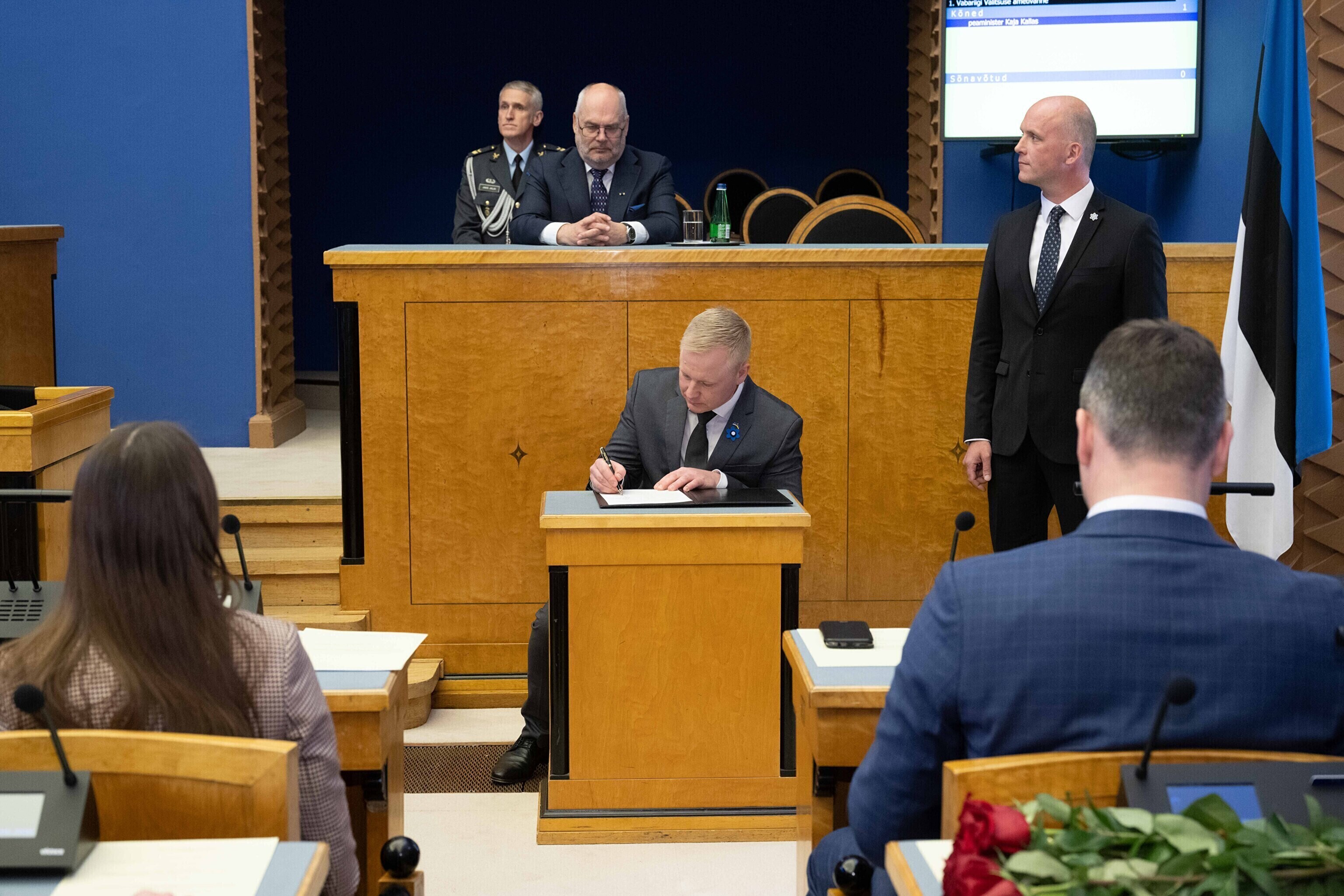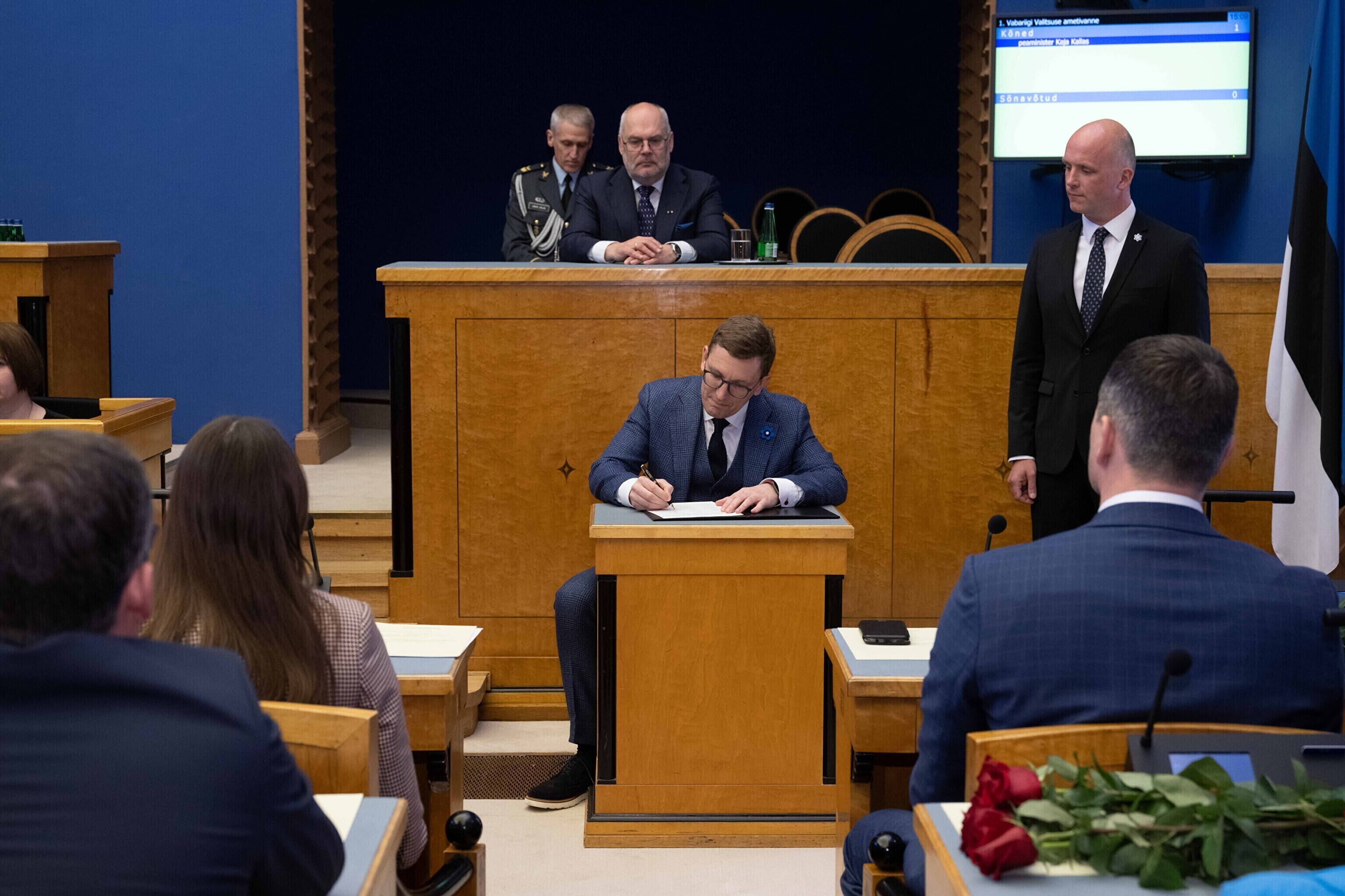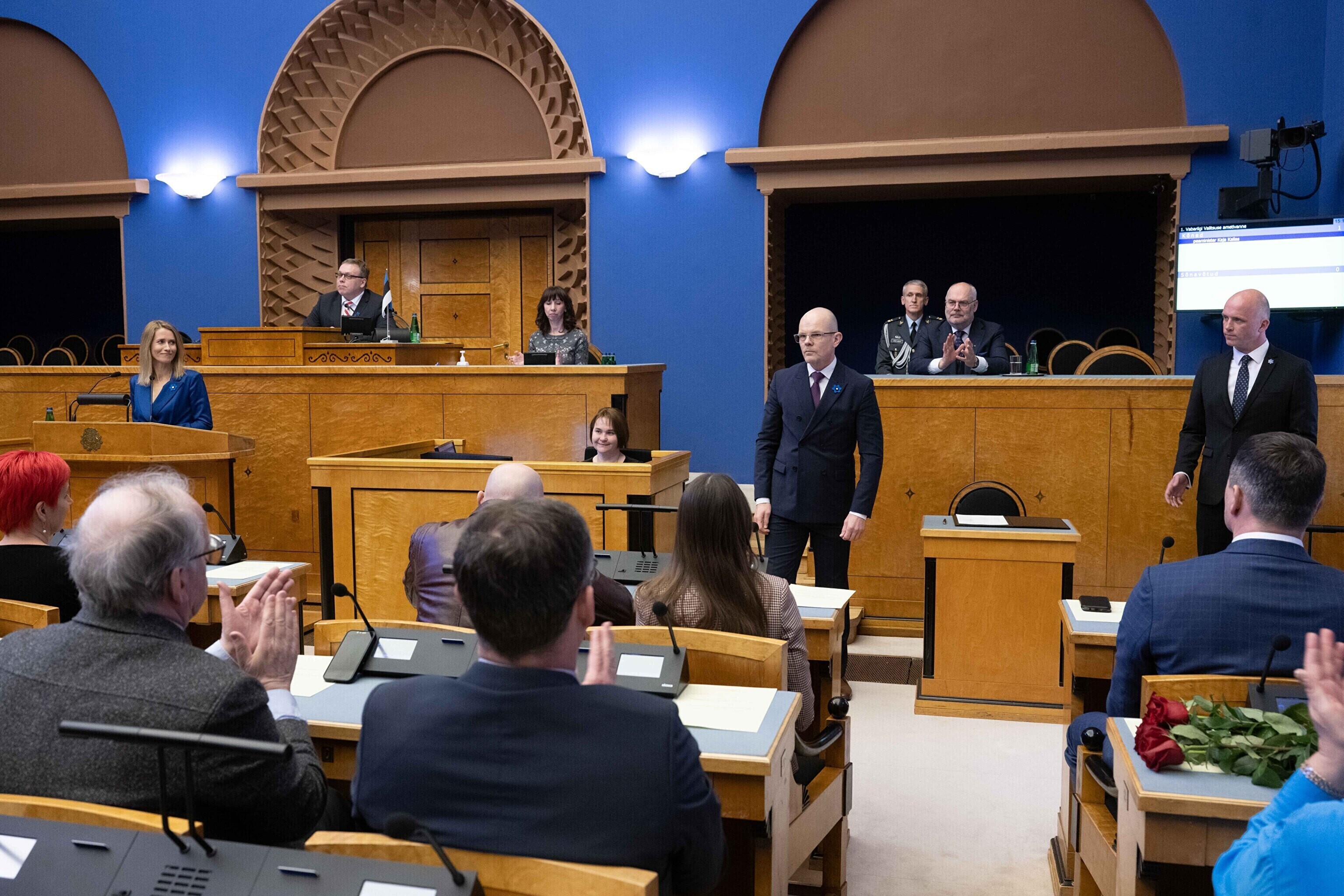 Seejärel suundusid uue valitsuse ministrid riigikokku ametivannet andma.