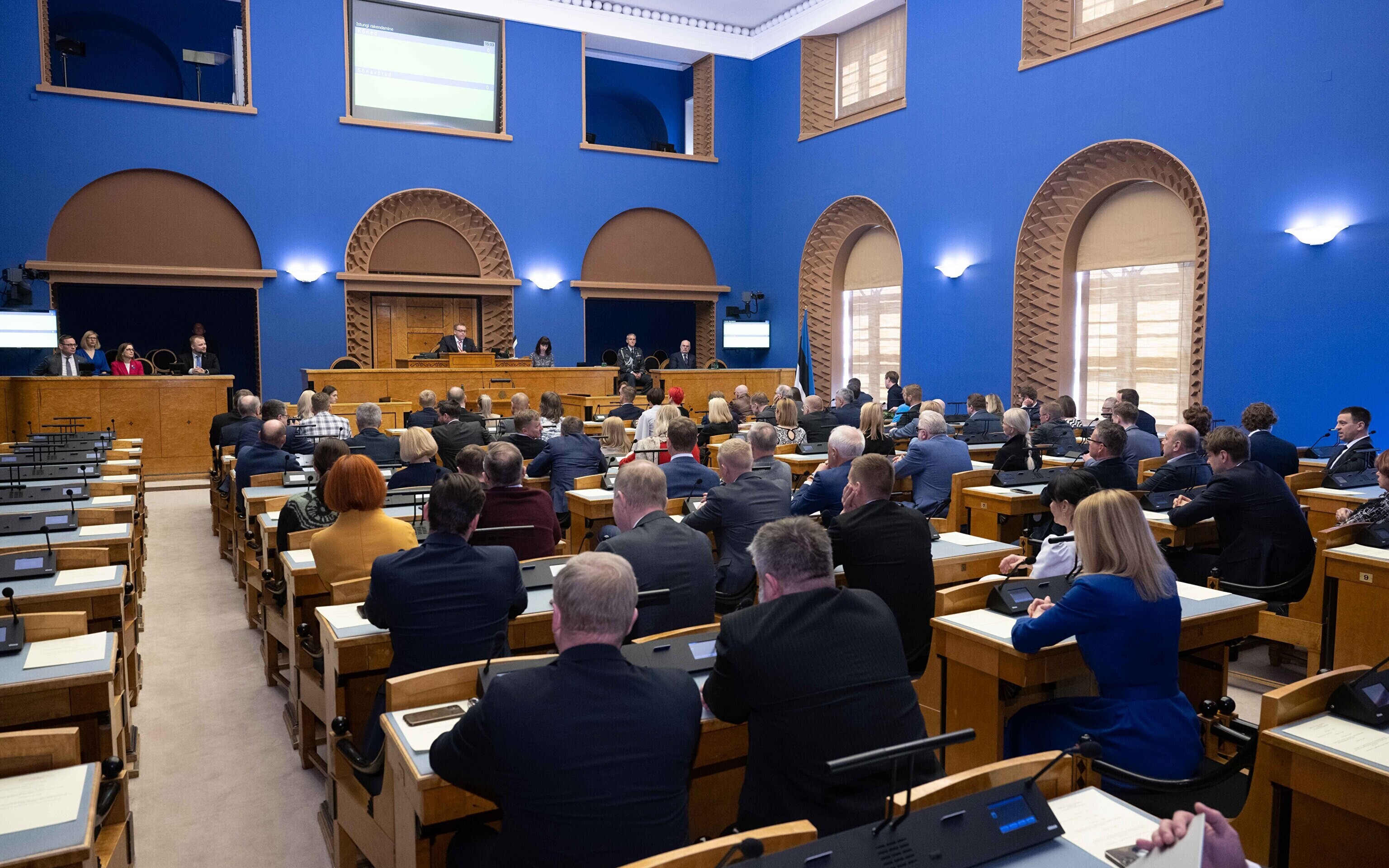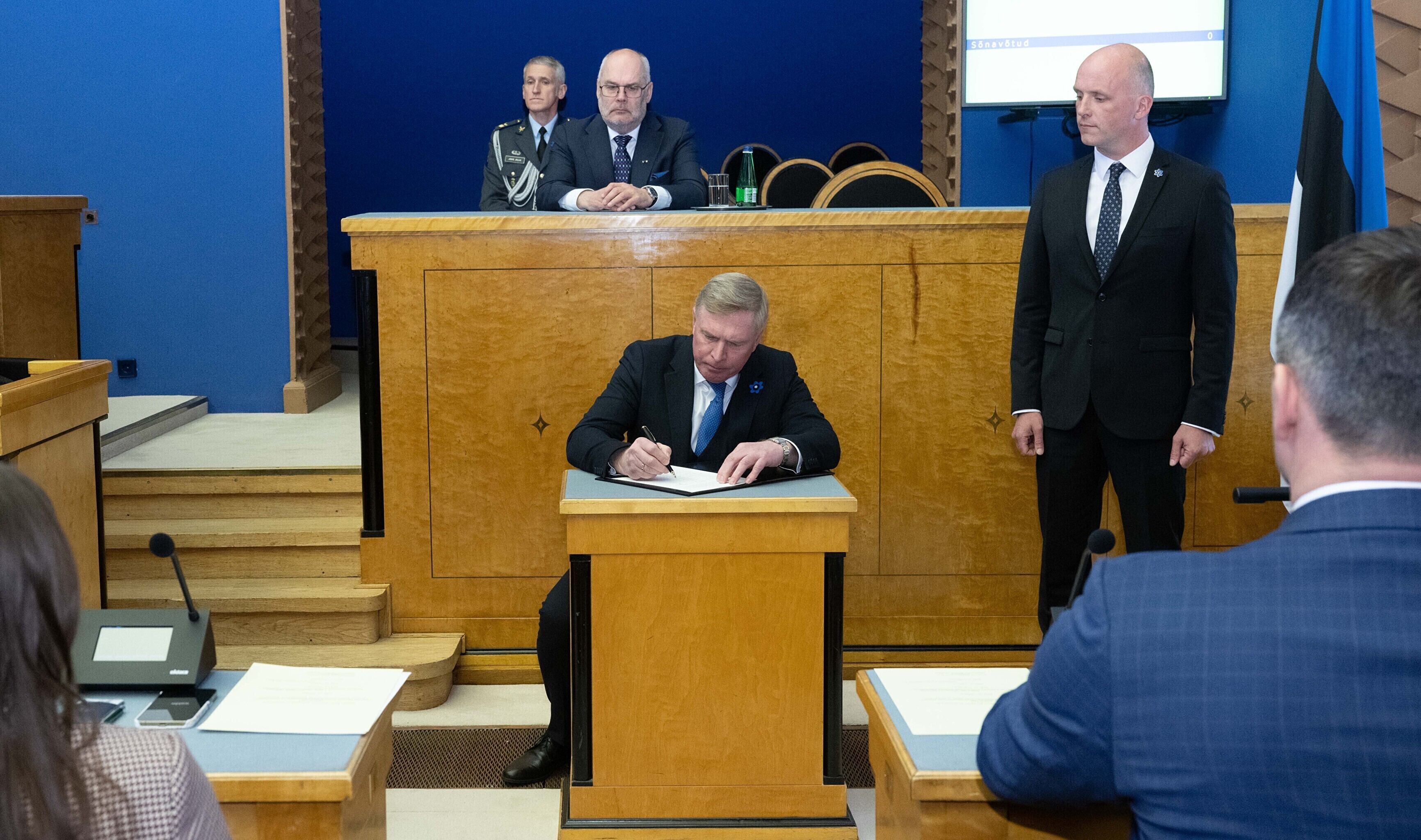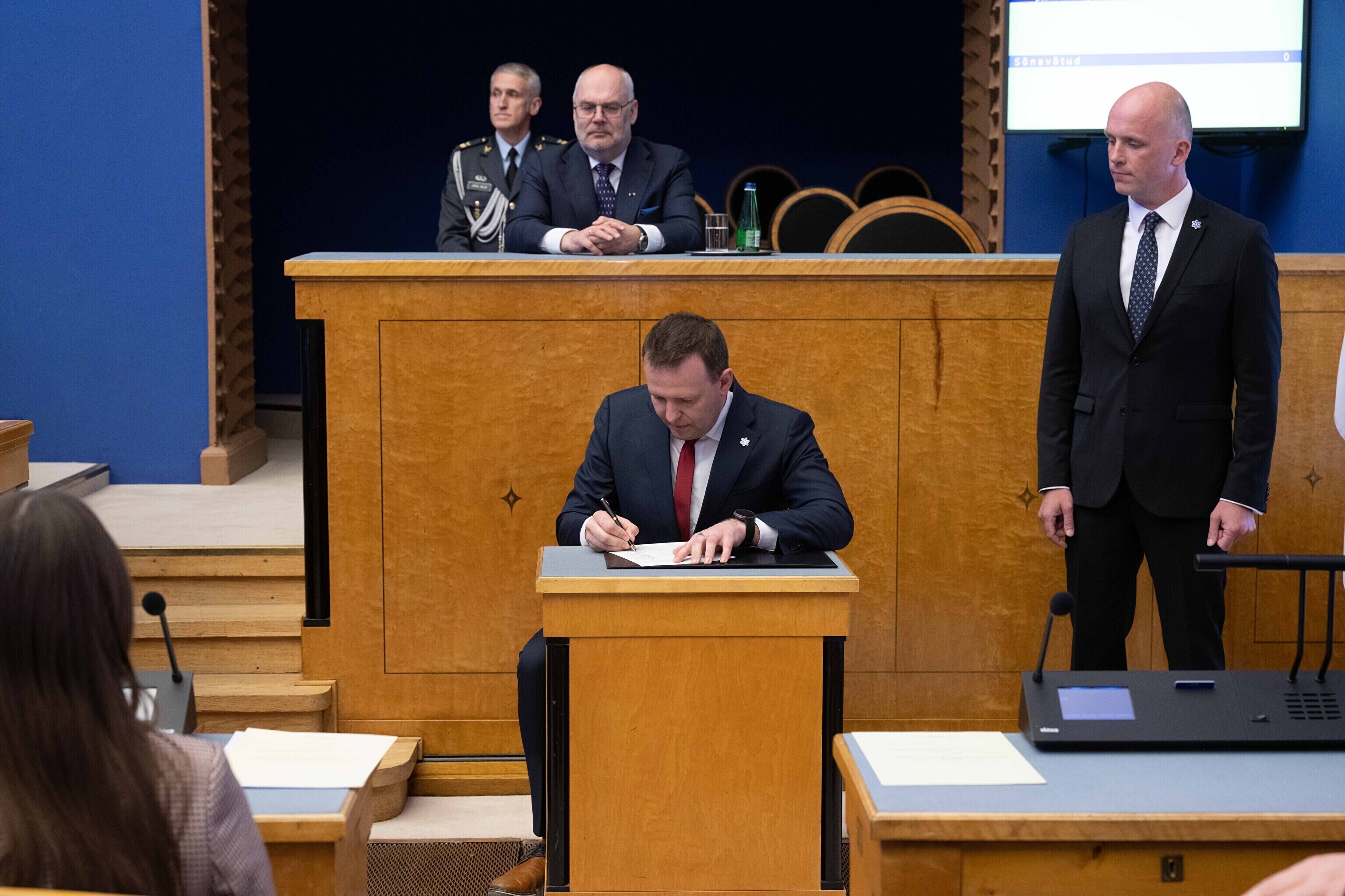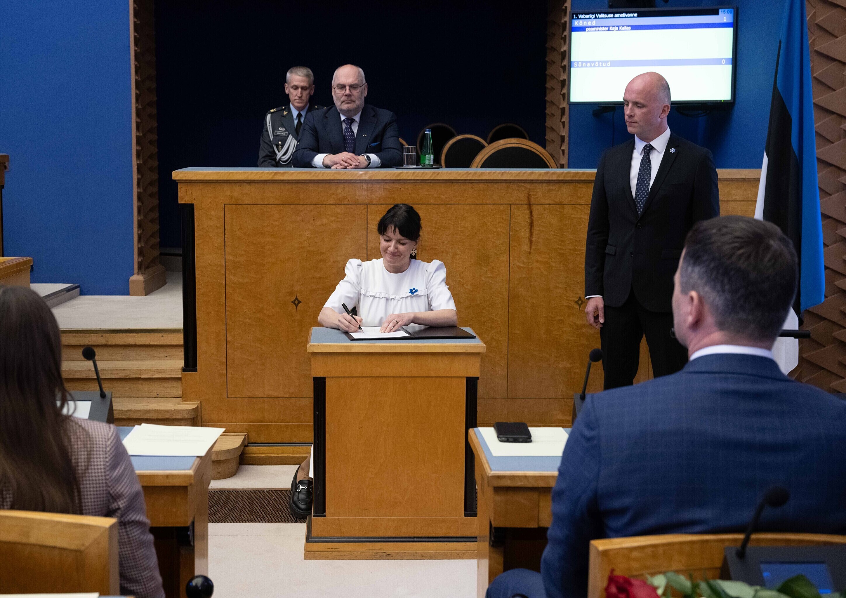 Seejärel suundusid uue valitsuse ministrid riigikokku ametivannet andma.