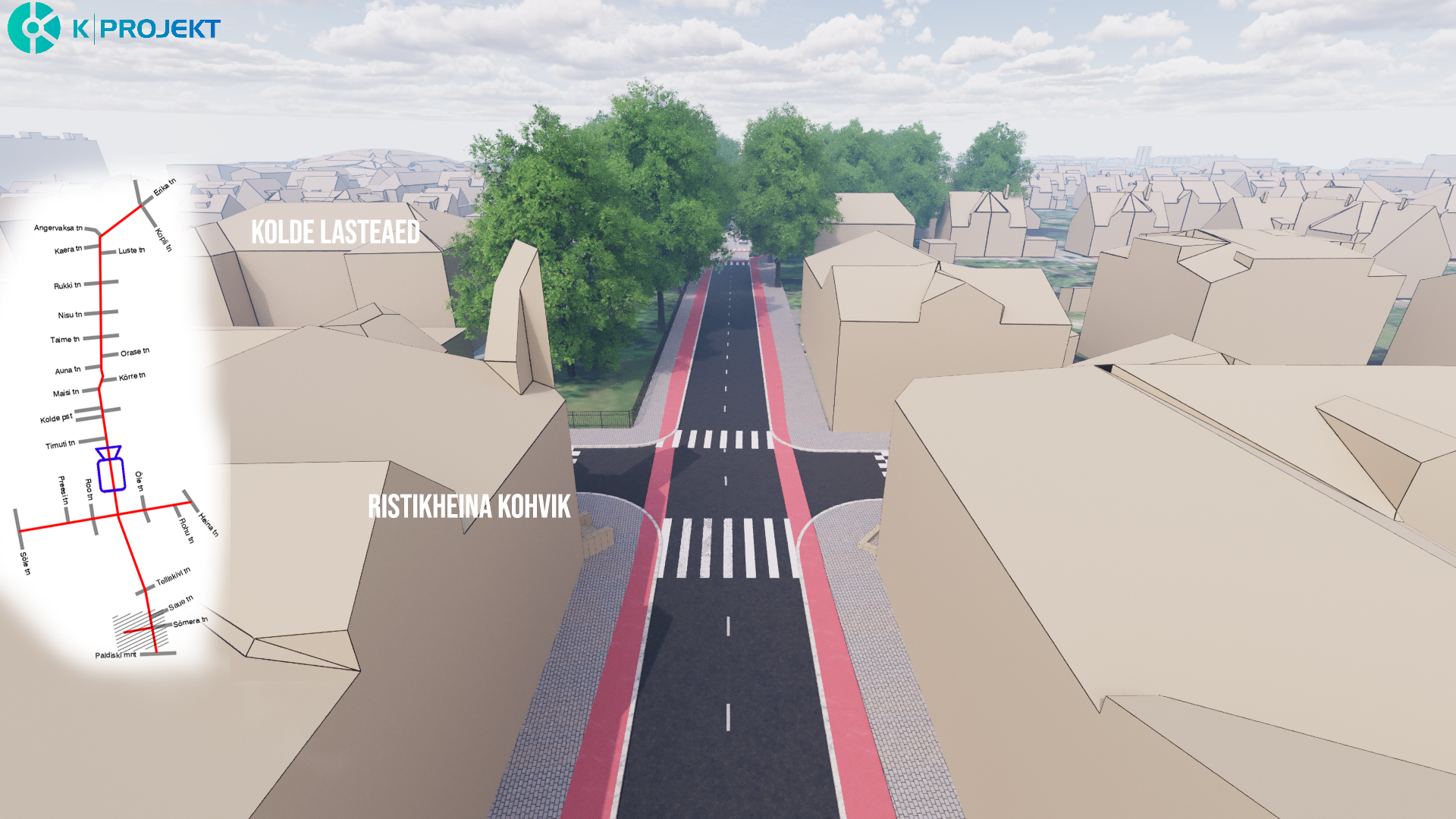 Ristiku tänaval on projekteeritud sõidutee laiuseks 6,5 meetrit. Parkimiskorraldus on seal lahendatud sõiduteega paralleelsete parkimiskohtadega, mis on projekteeritud vett läbilaskva katendiga.