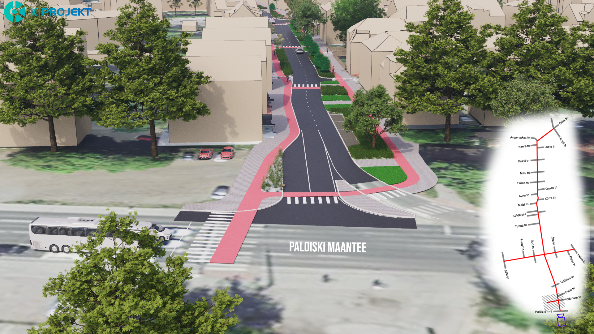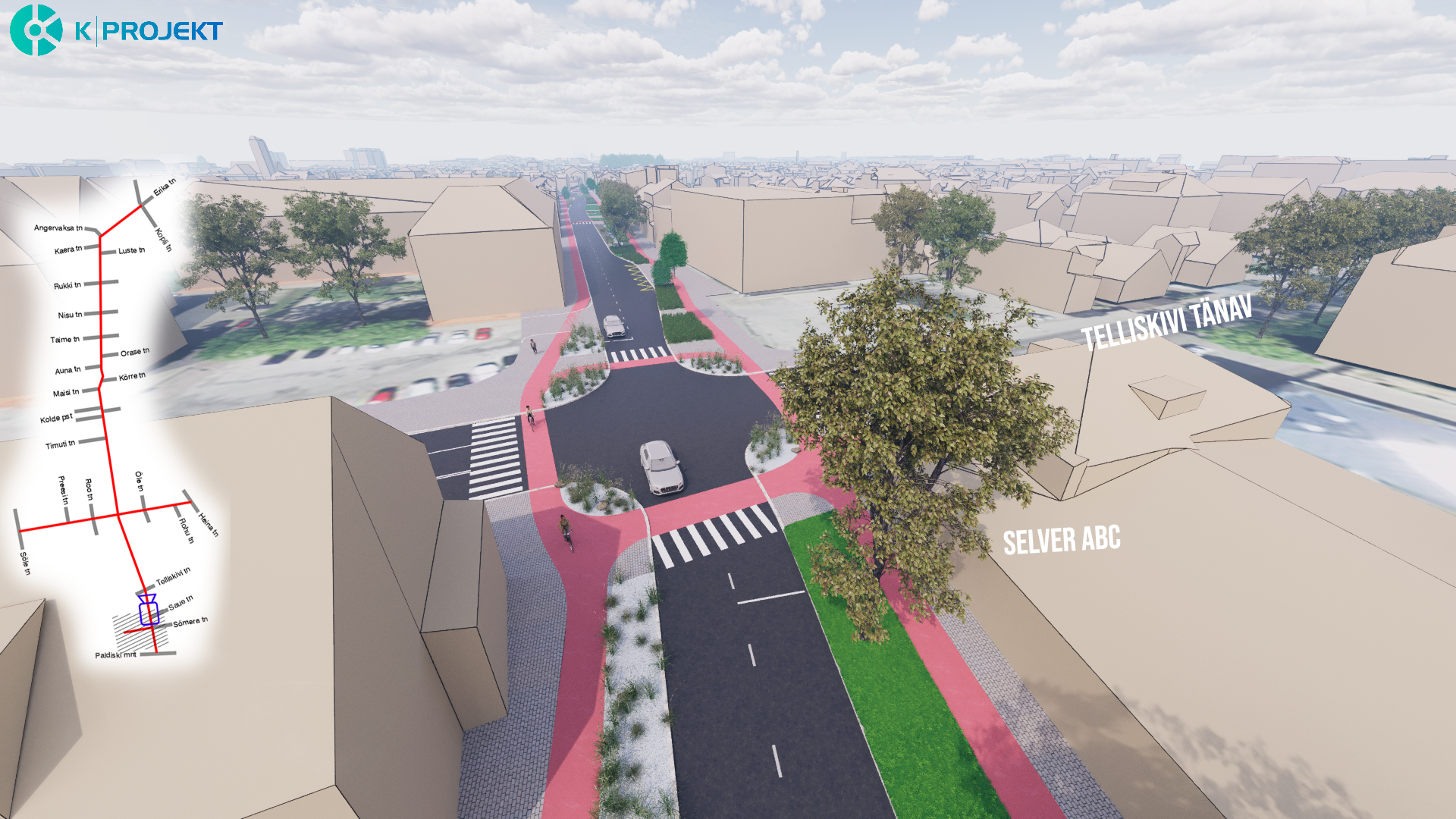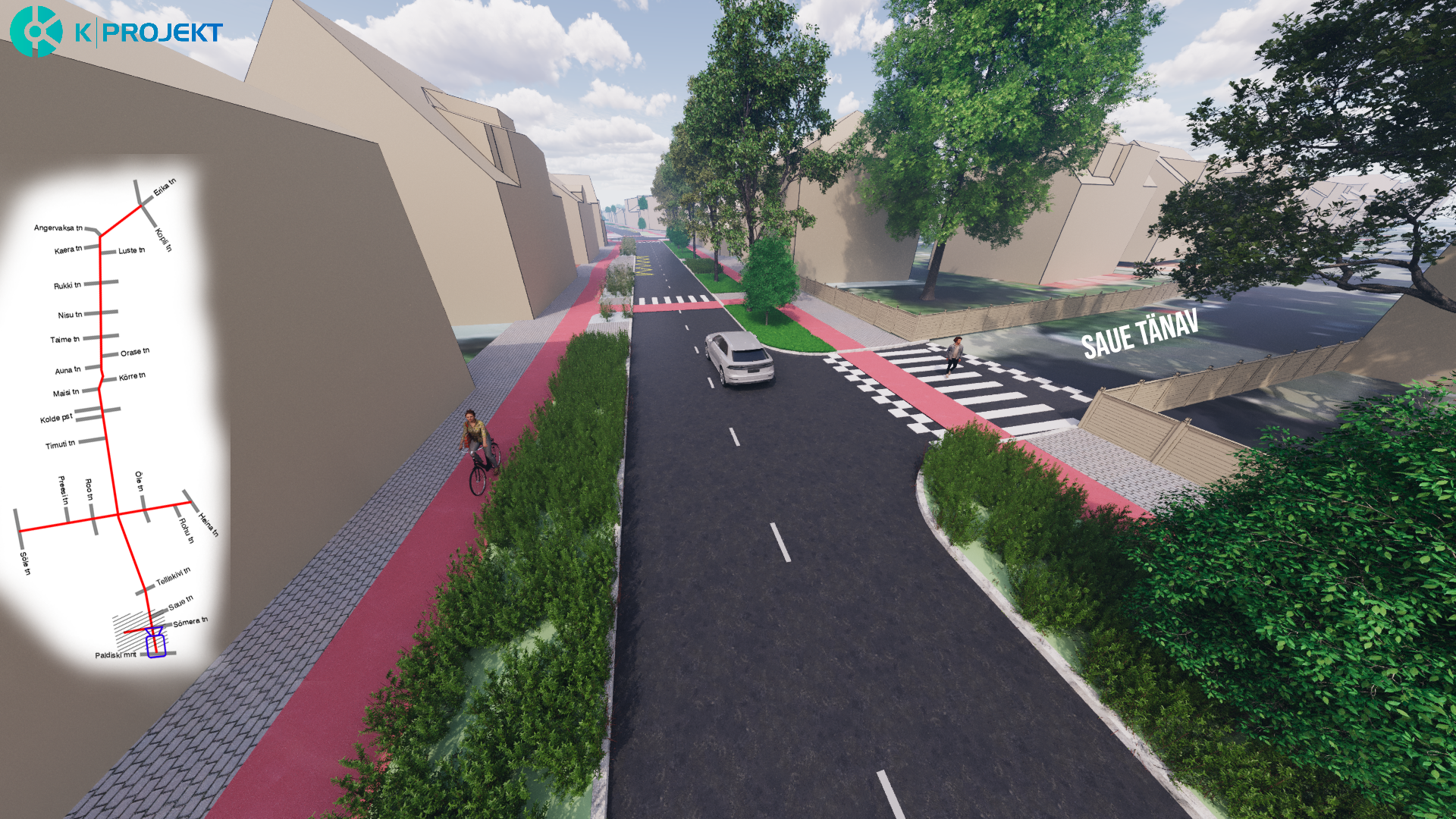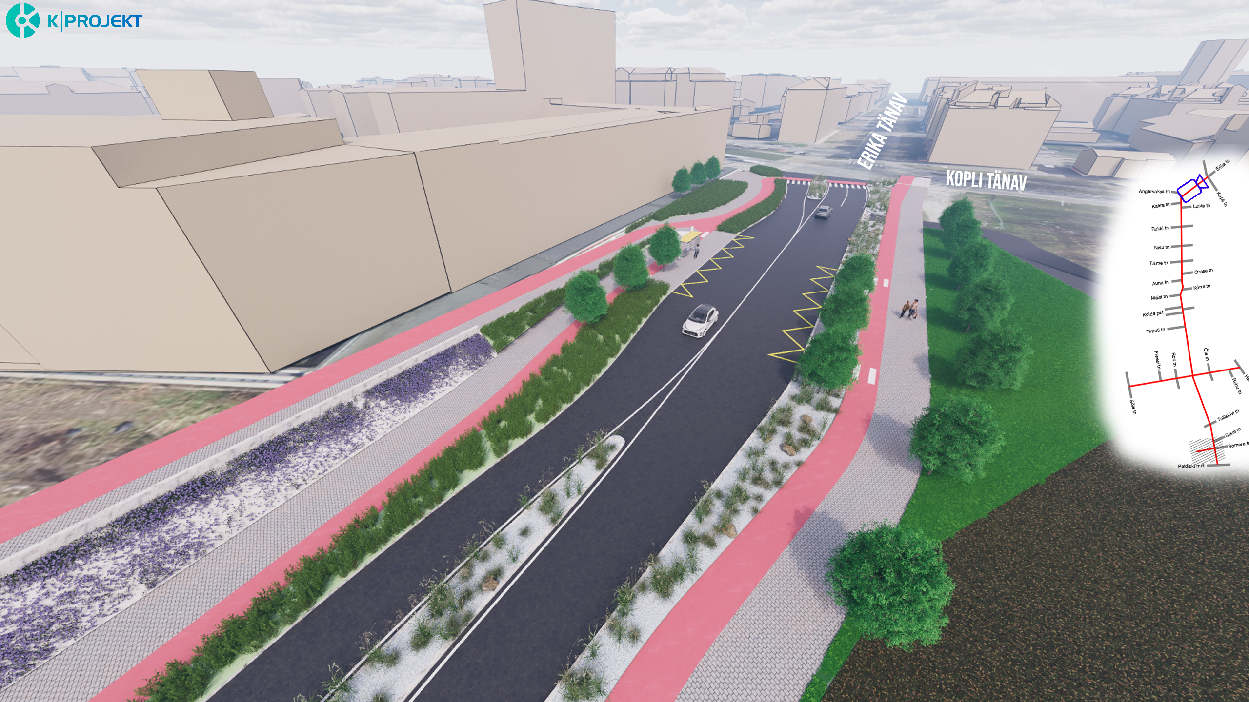 Rajatakse uued kõnniteed, rattateed ja sõiduteed, kavas on säilitada praegune kõrghaljastus ehk puud.