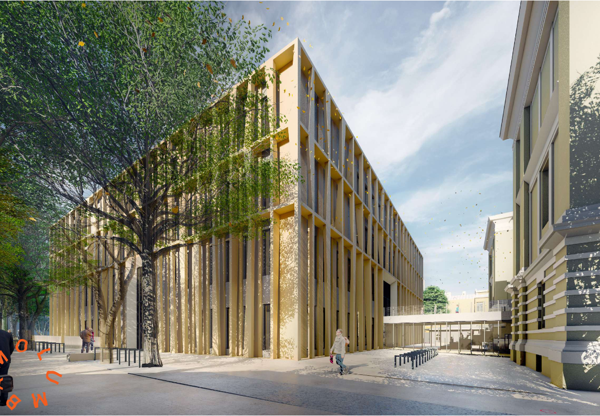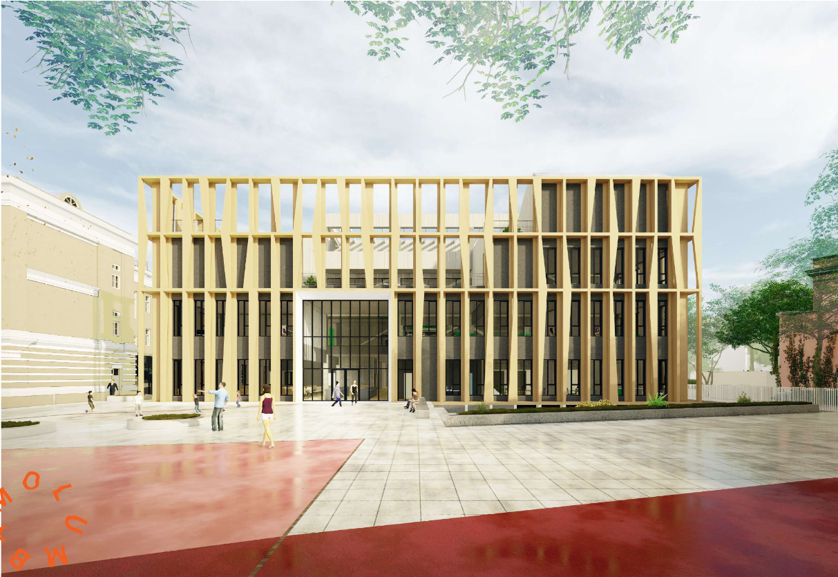 Juurdeehitus tuleb sama kõrge kui kõrvalasuv olemasolev hoone ehk nelja korrusega. Uues hoones hakkavad asuma õpperuumid , lisaks rajatakse sinna spordisaal. Kaht hoonet hakkab ühendama galerii.
