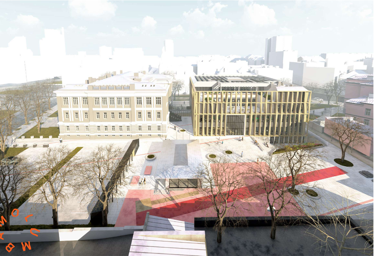 Vana hoone sissepääs koos Estonia puiestee äärse laia kõnniteega jääb paraadsissepääsuks. Kasutusele jäävad ka kõik teised vana hooned sisse- ja väljapääsud.