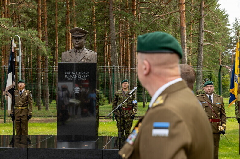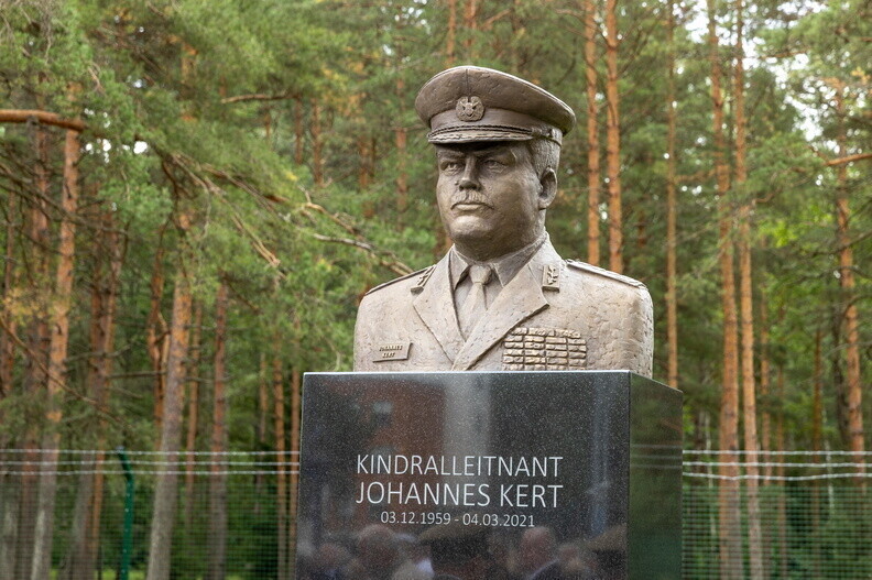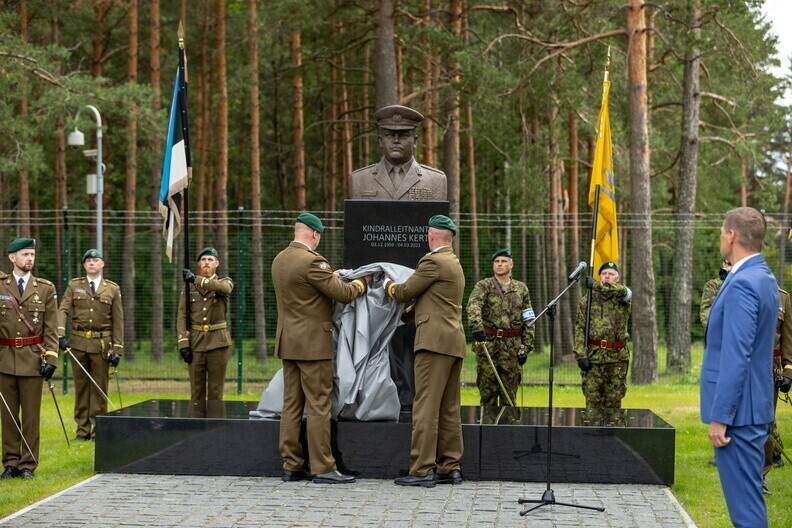 Kaitseväe juhataja kindral Martin Herem, kaitseminister Hanno Pevkur ning reservohvitseride kogu esindajad avasid teisipäeval Võrus, Taara linnaku esisel platsil kindralleitnant Johannes Kerdi büsti.