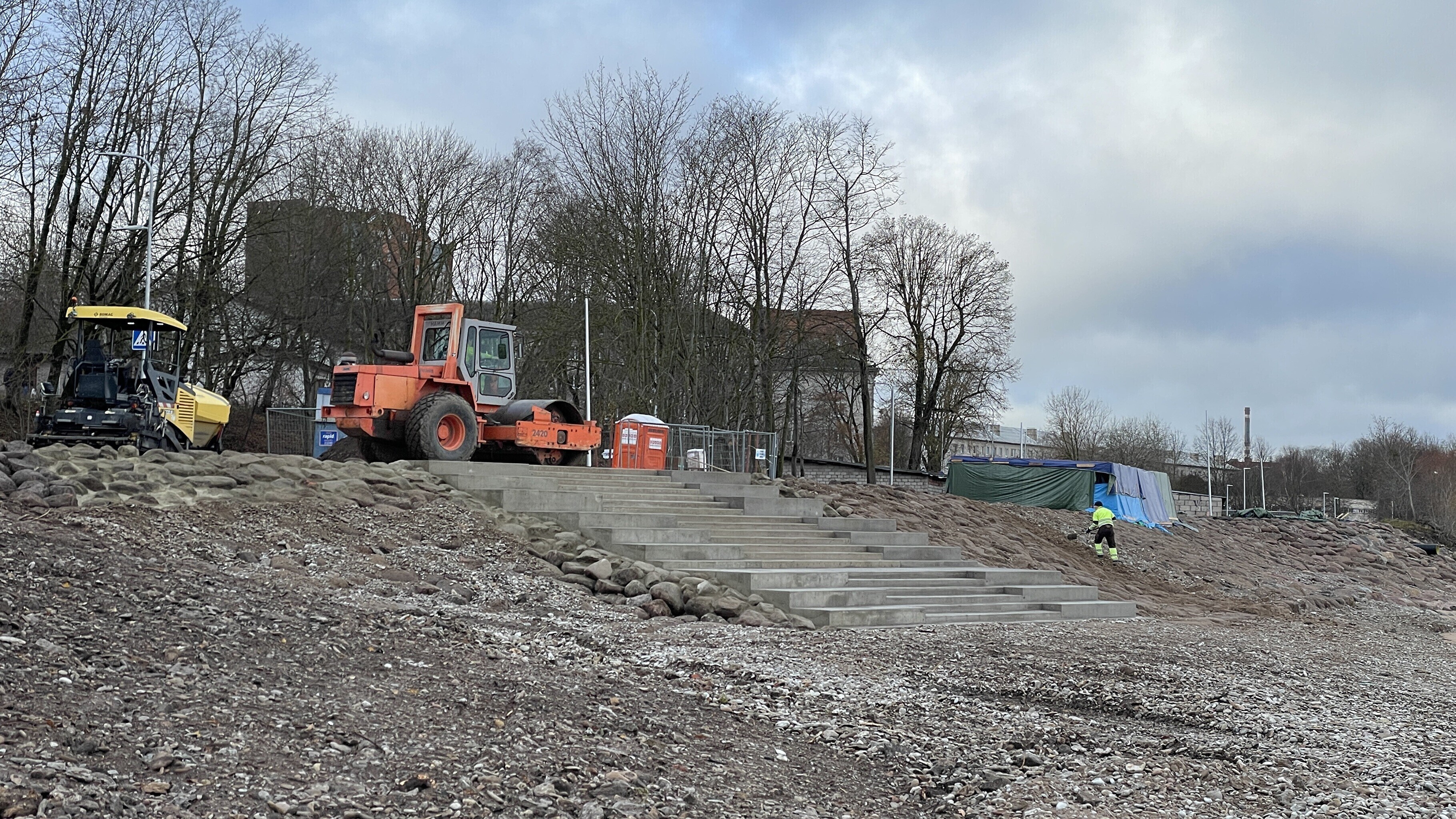 "Ehituse käigus puutusime kokku sellise asjaga, et võrreldes projekteeritud lahendusega on merekalda maapind langenud umbes 70 sentimeetrit. Sellega kaasneb ranna kindlustamise täiendav maht ja trepi pikendamise vajadus," selgitas aselinnapea.