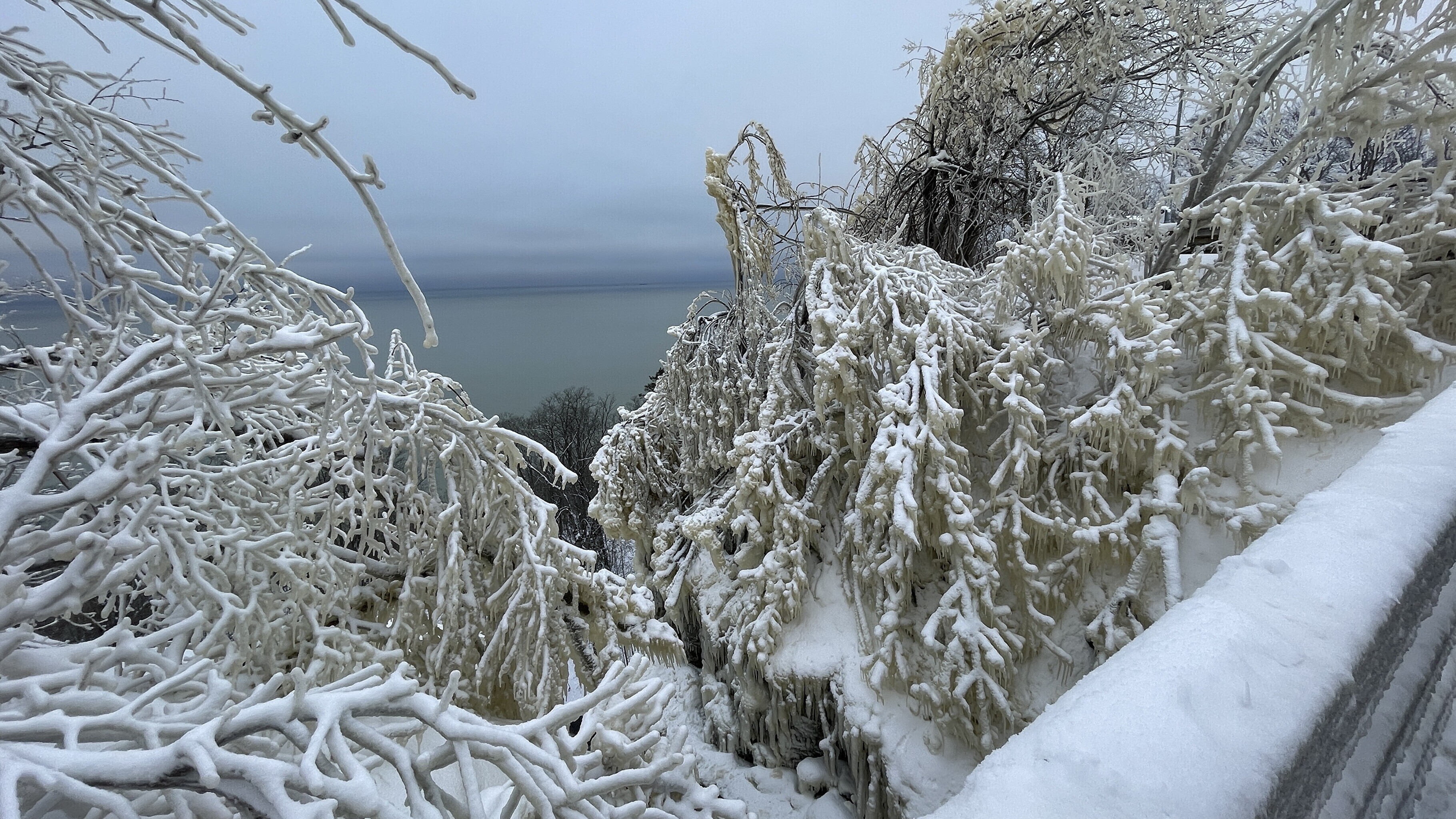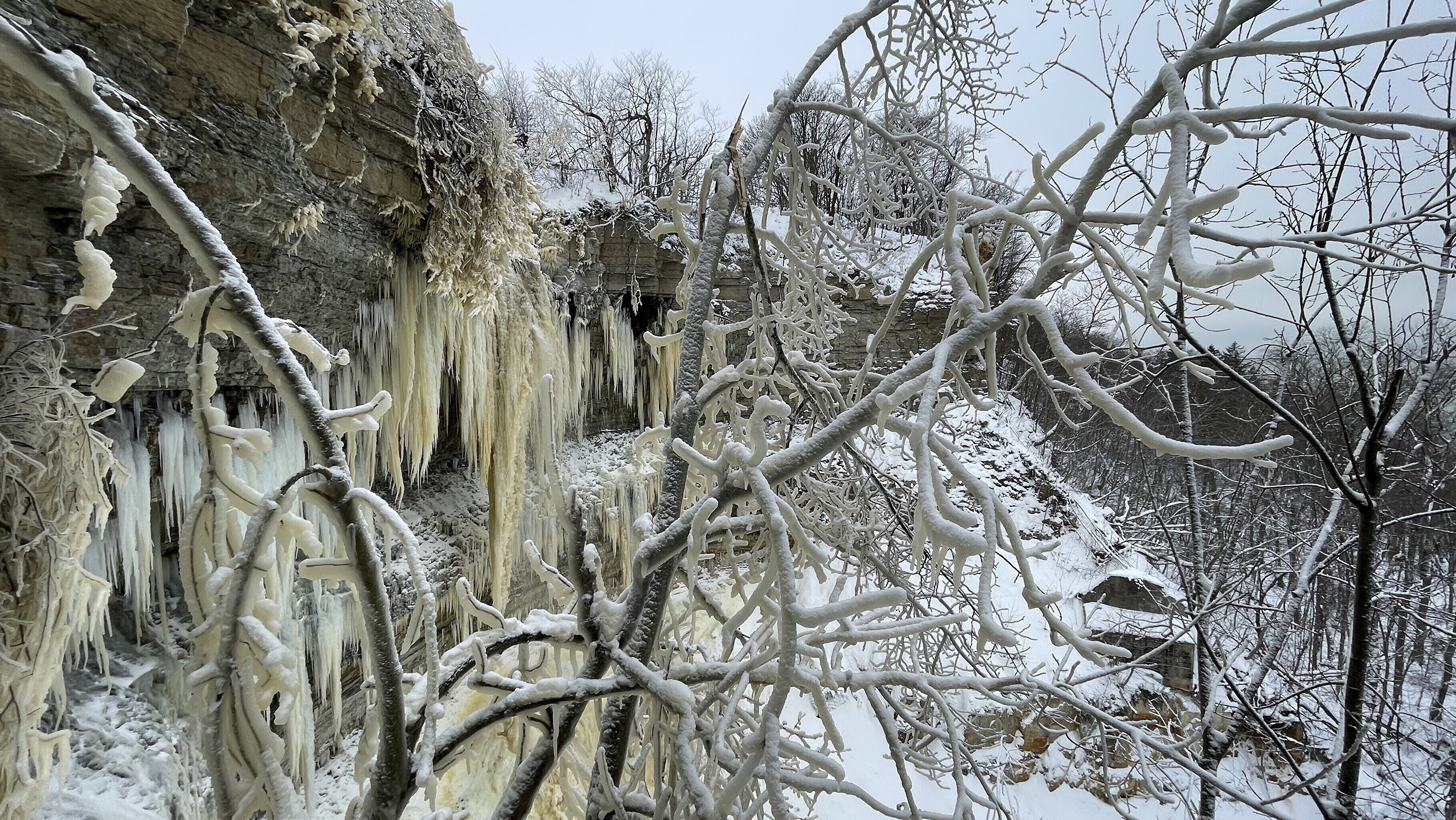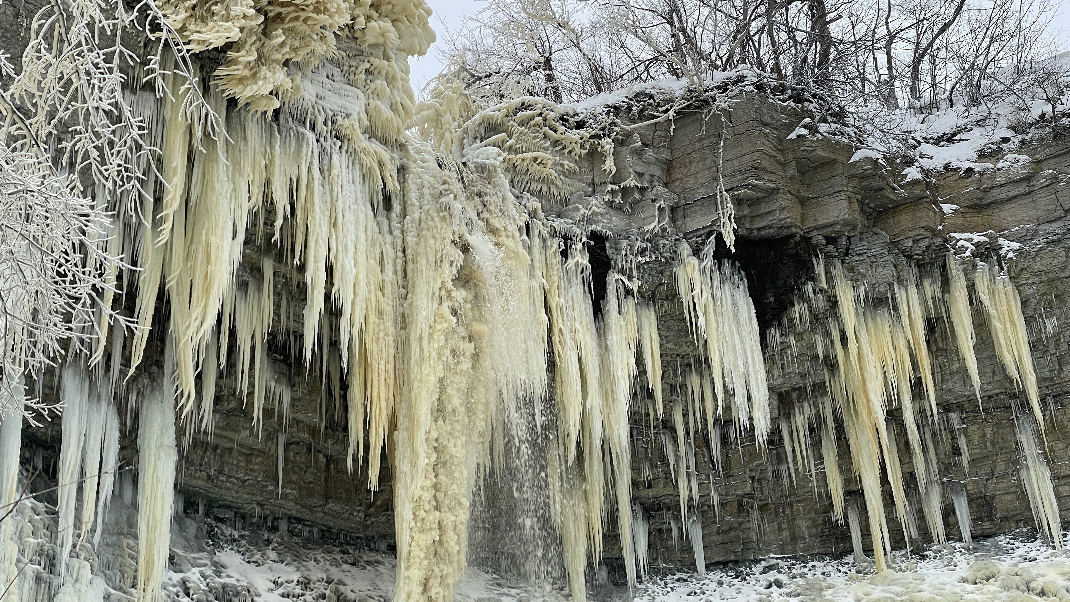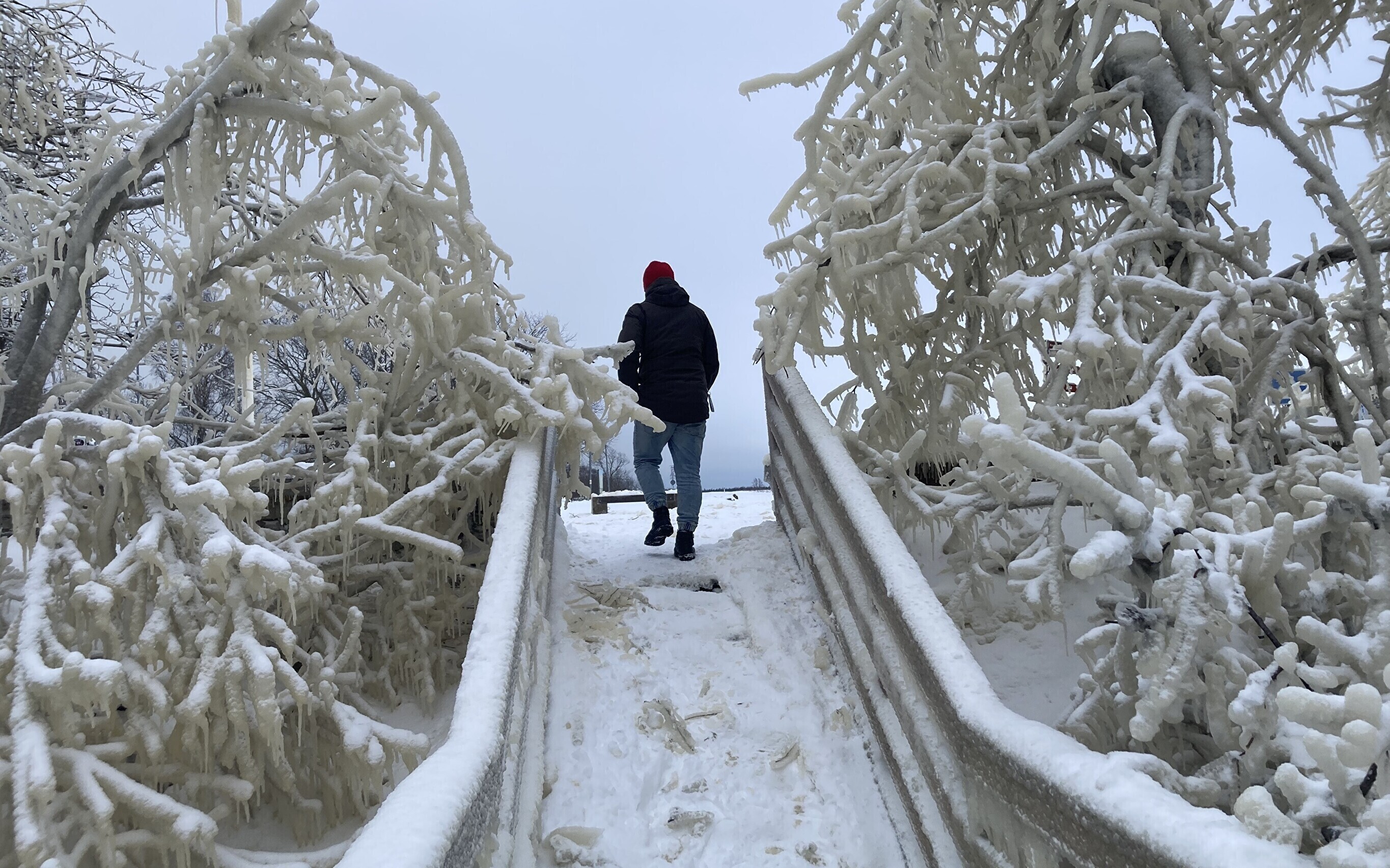 Praegu on joaveest tekkinud jäämaailm lisaks puudele ka pankranniku seintel.