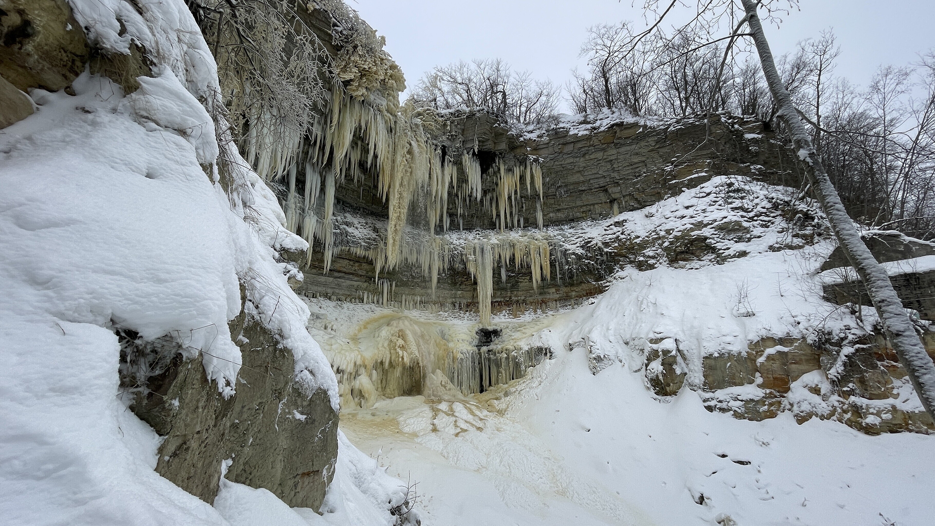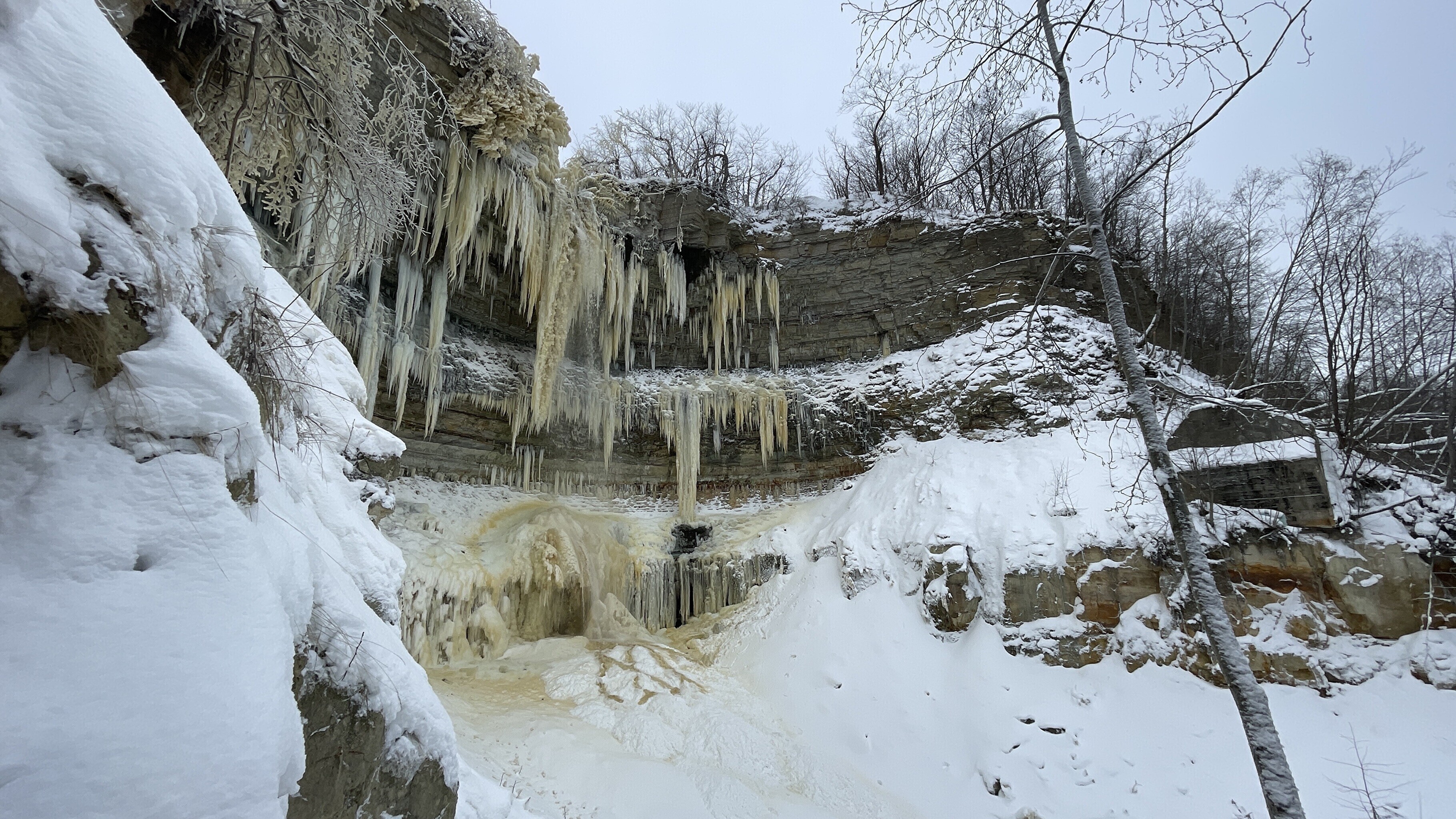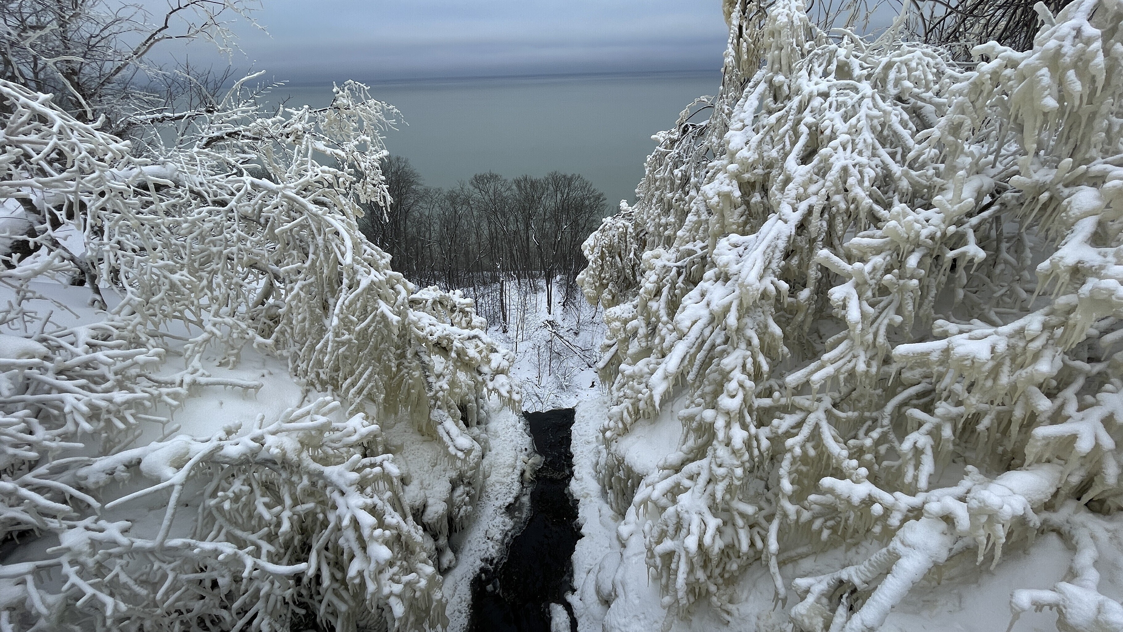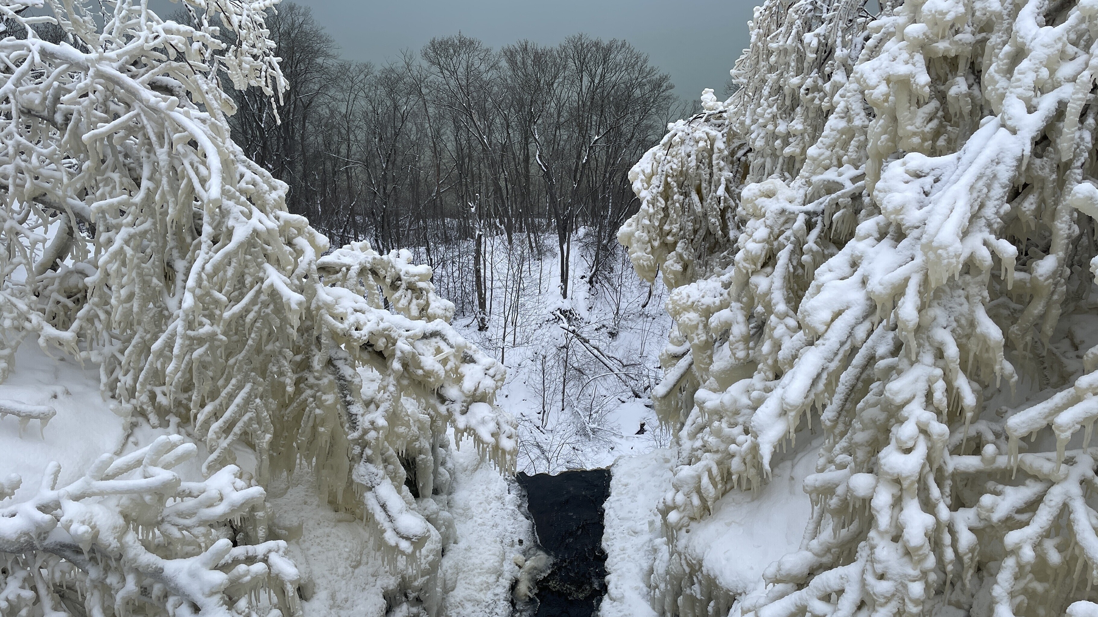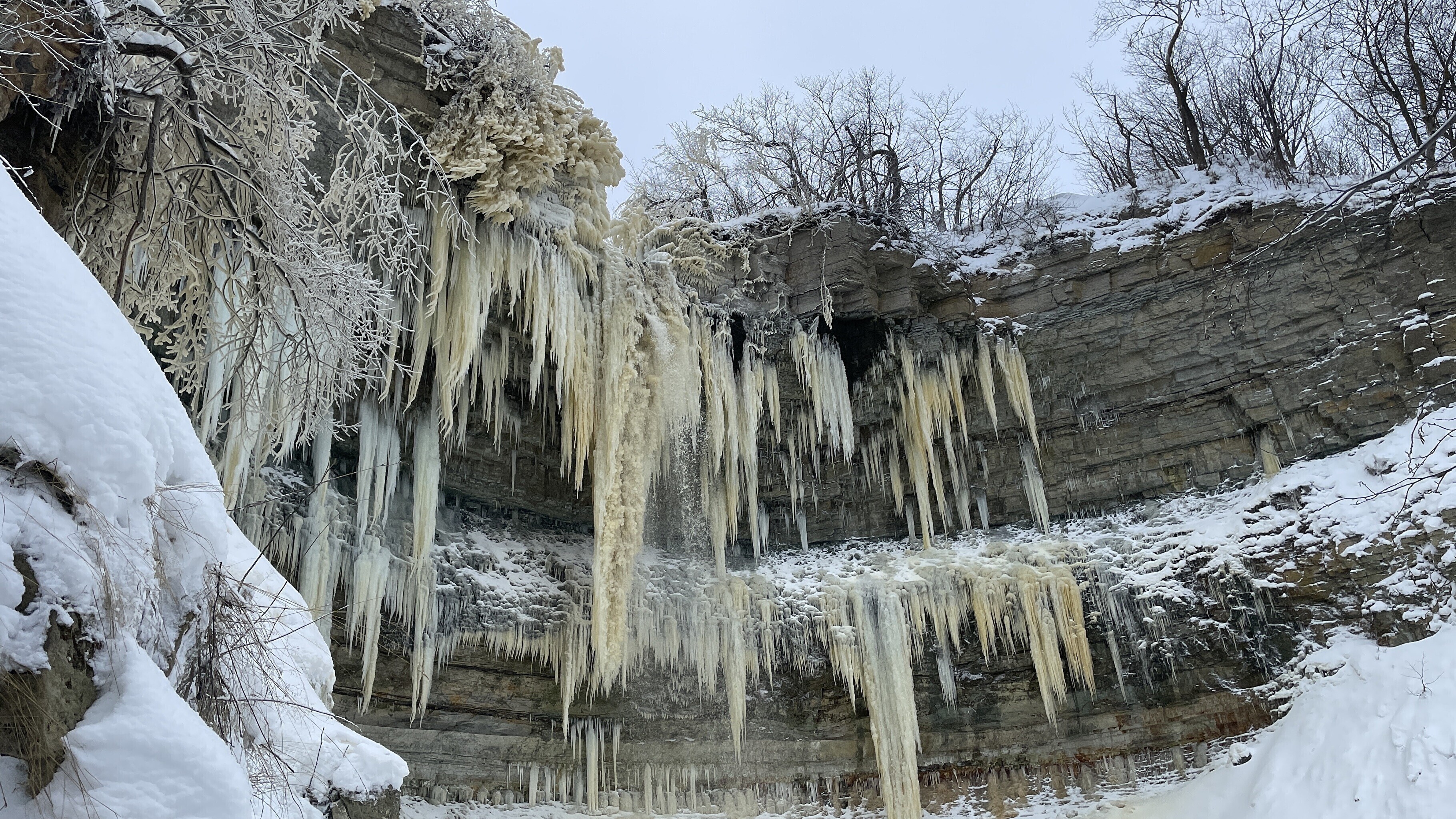 Praegu on joaveest tekkinud jäämaailm lisaks puudele ka pankranniku seintel.