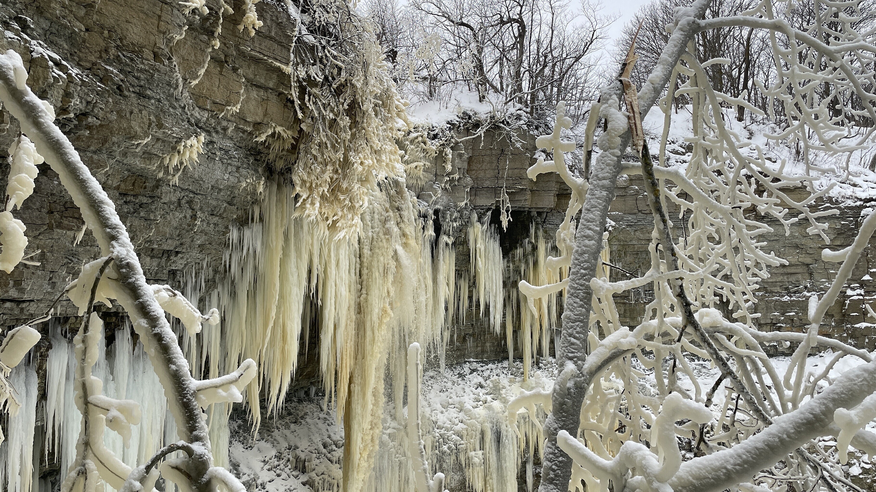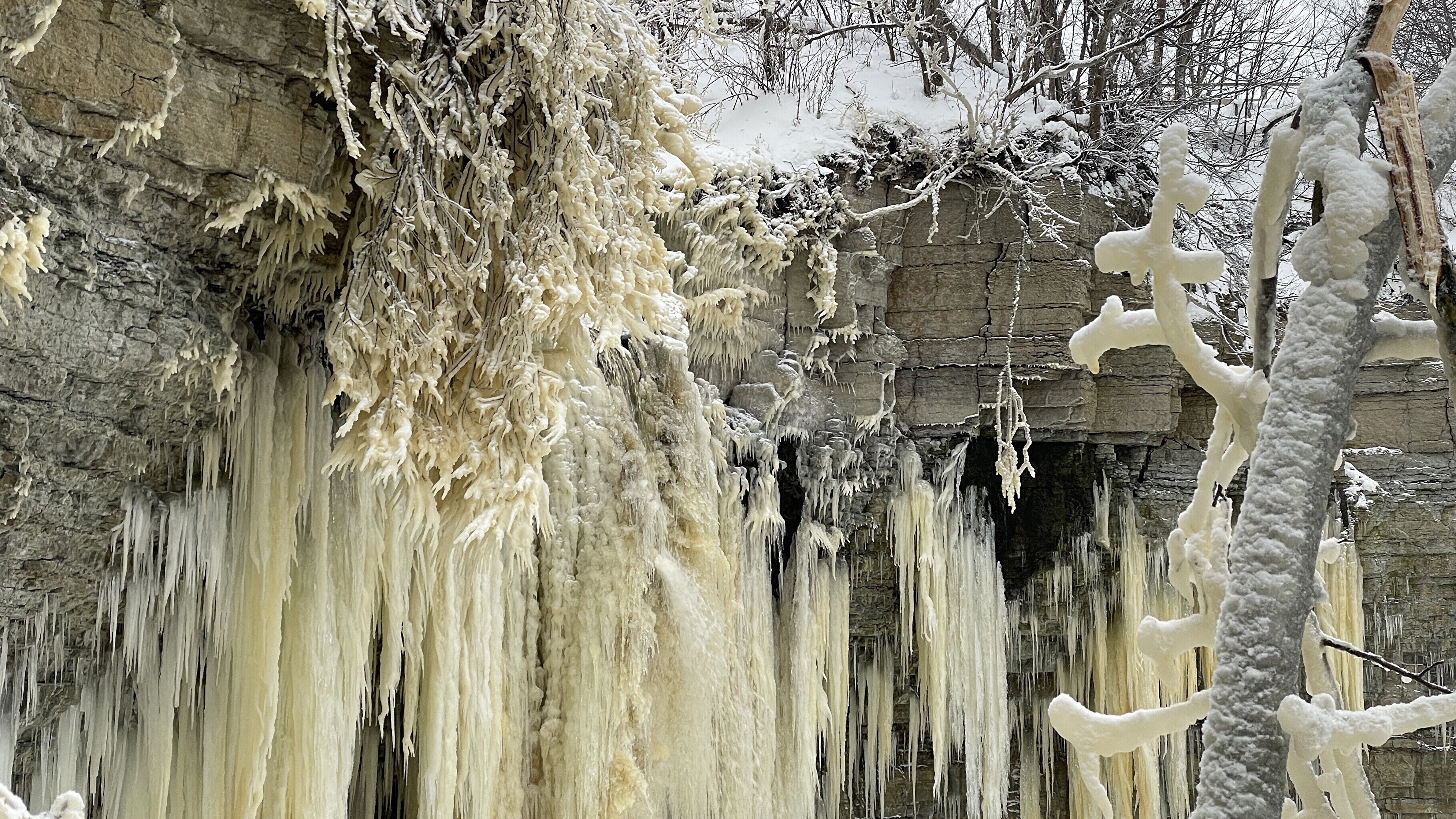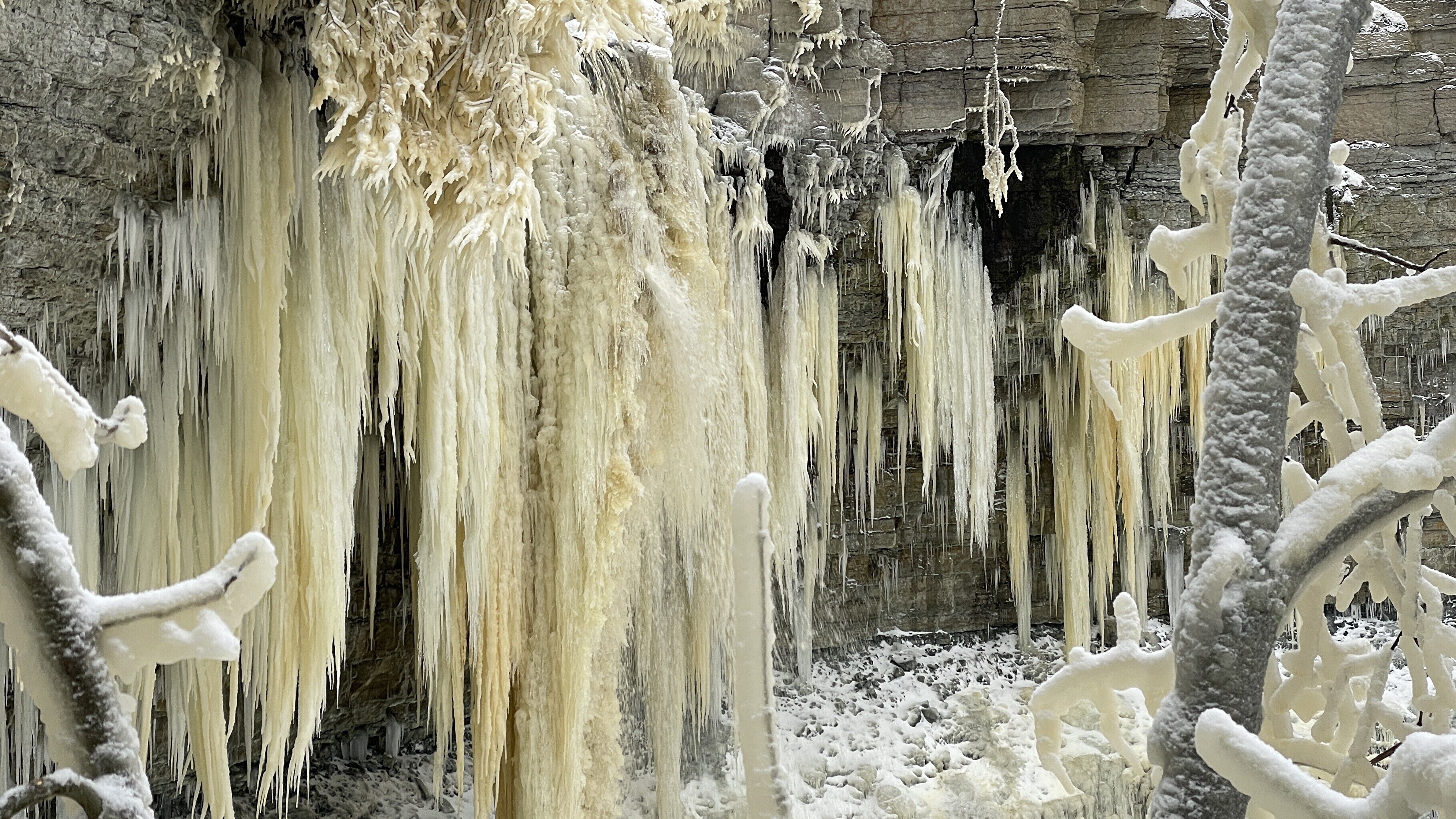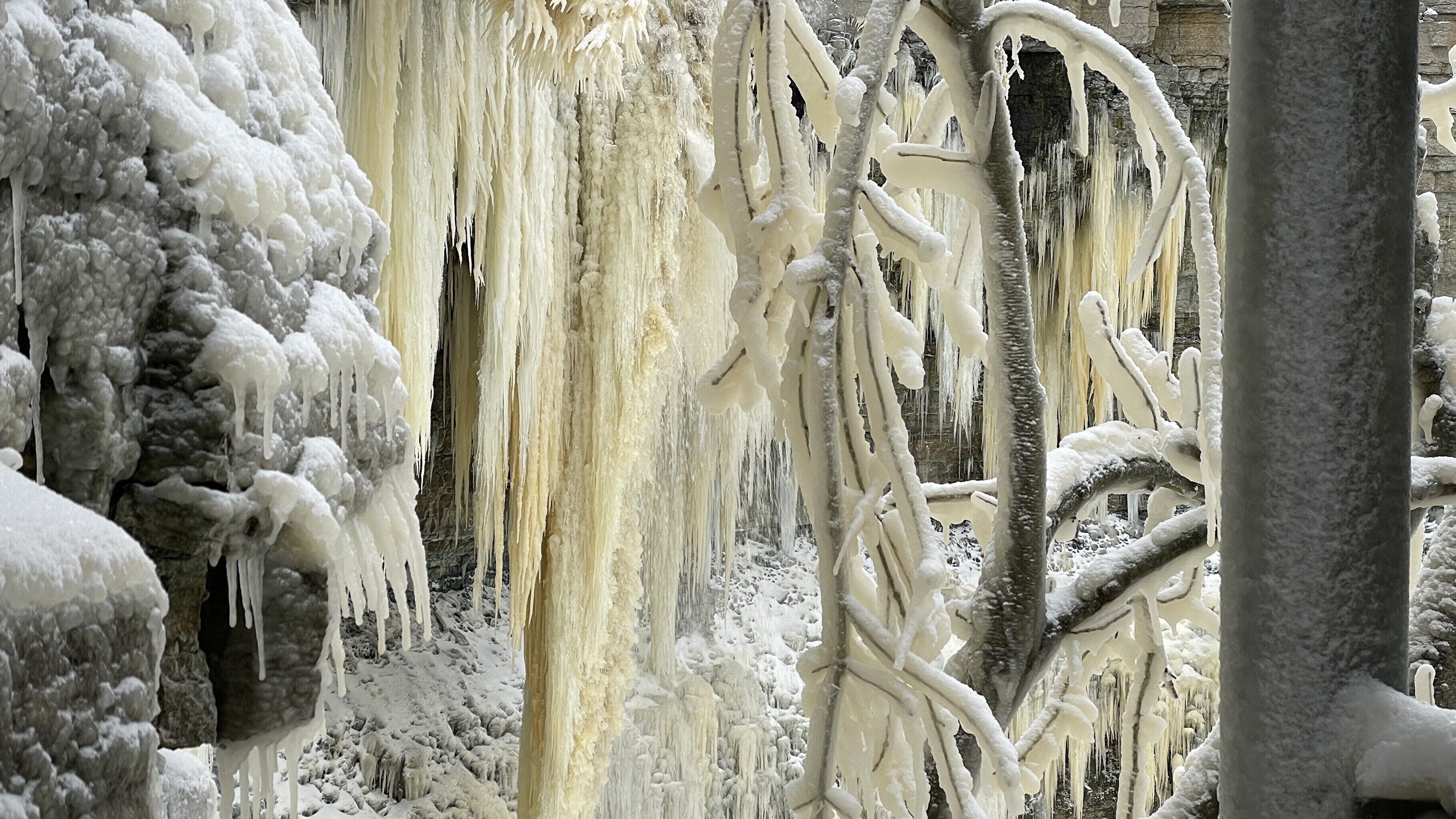 Ida-Virumaal Valastel tekib vaatemäng siis, kui meretuul toob Valaste joa veed kaldale ja vesi jäätub puuokstel, moodustades kohati käsivarrejämedusi jääpurikaid.