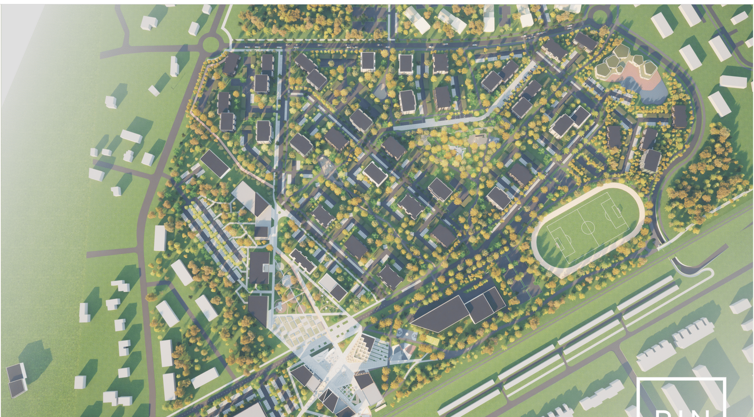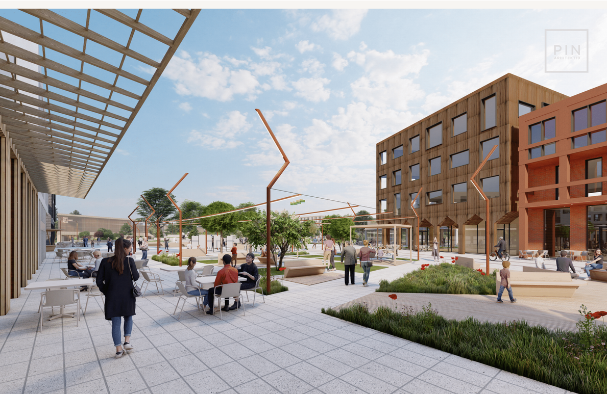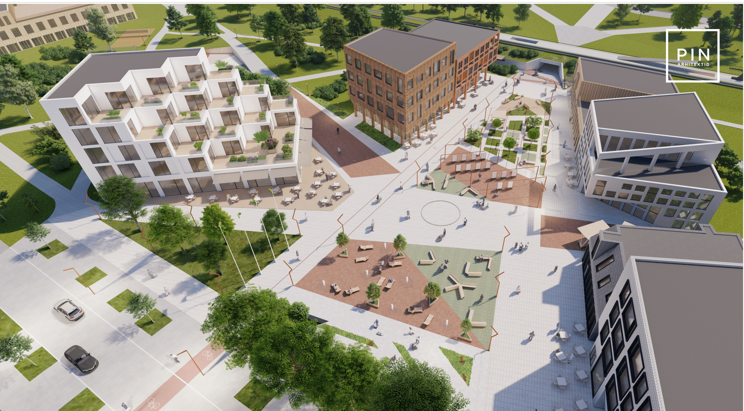 Samuti märkis žürii, et keskuse süda on PIN arhitektide töös selgelt kõige silmapaistvam ja neljast planeerimisvõistlusel osalenud tööst parima lahendusega. Suurt linnaväljakut ümbritsevad ärihooned, samuti on tagatud head ühendusteed raudteepeatuse ning ülejäänud alaga.